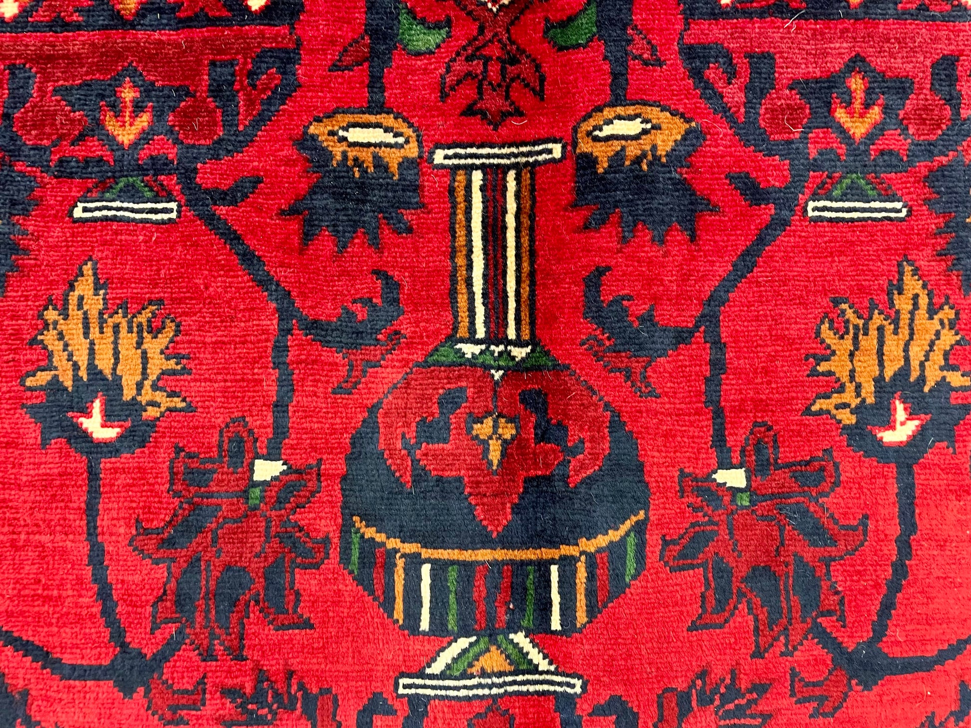 織り密度はペルシャ絨毯に比べやや低めですが、しっかりとした丈夫な作りで、荒々しさや力強さが魅力となっています。