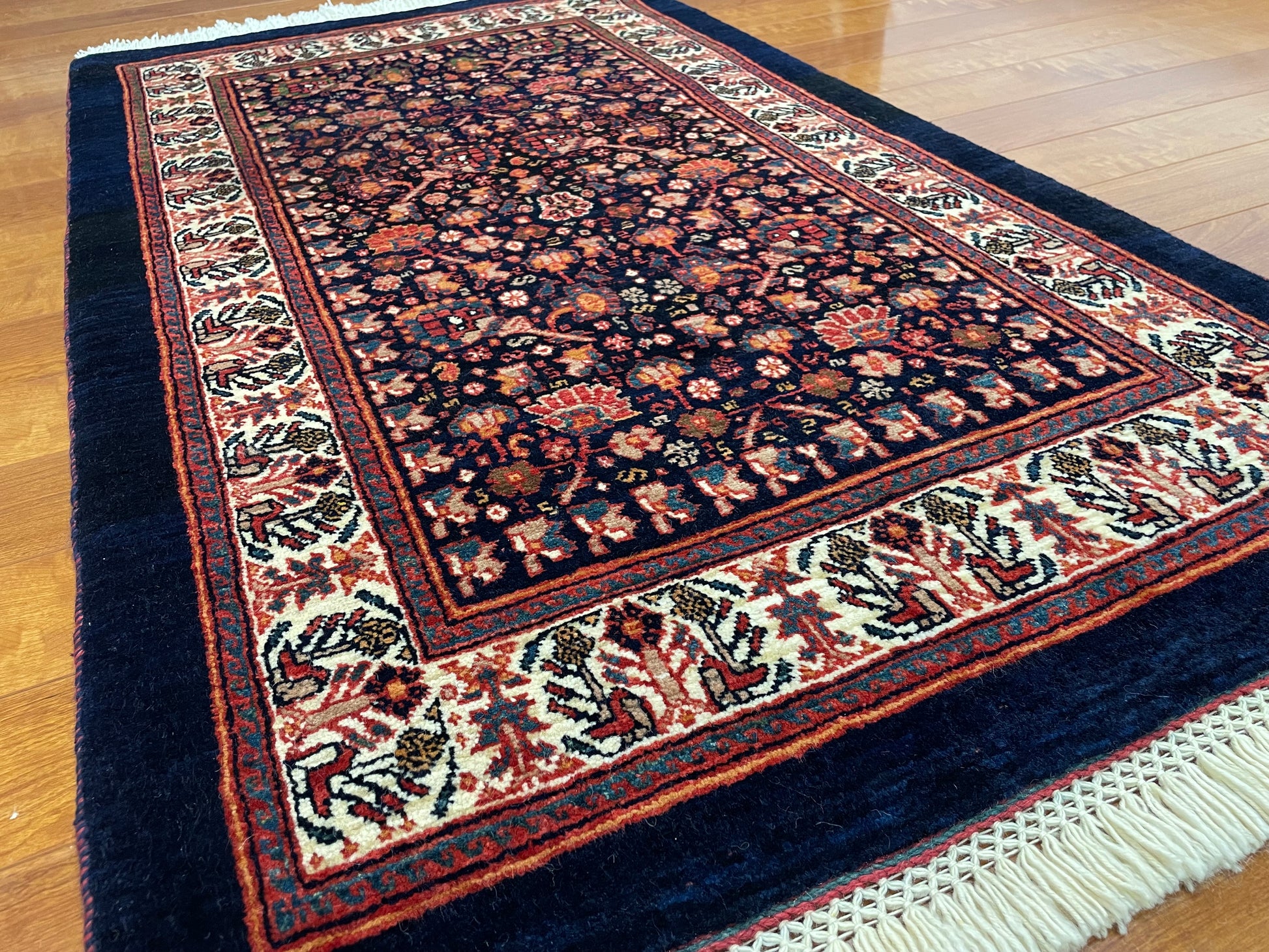 カシュガイ絨毯の魅力は伝統的で色使いがはっきりしていて力強く、素朴な温かみがあります。幾何学模様が中心で多彩な文様・動物・花などの多種多様なデザインが特徴的です。