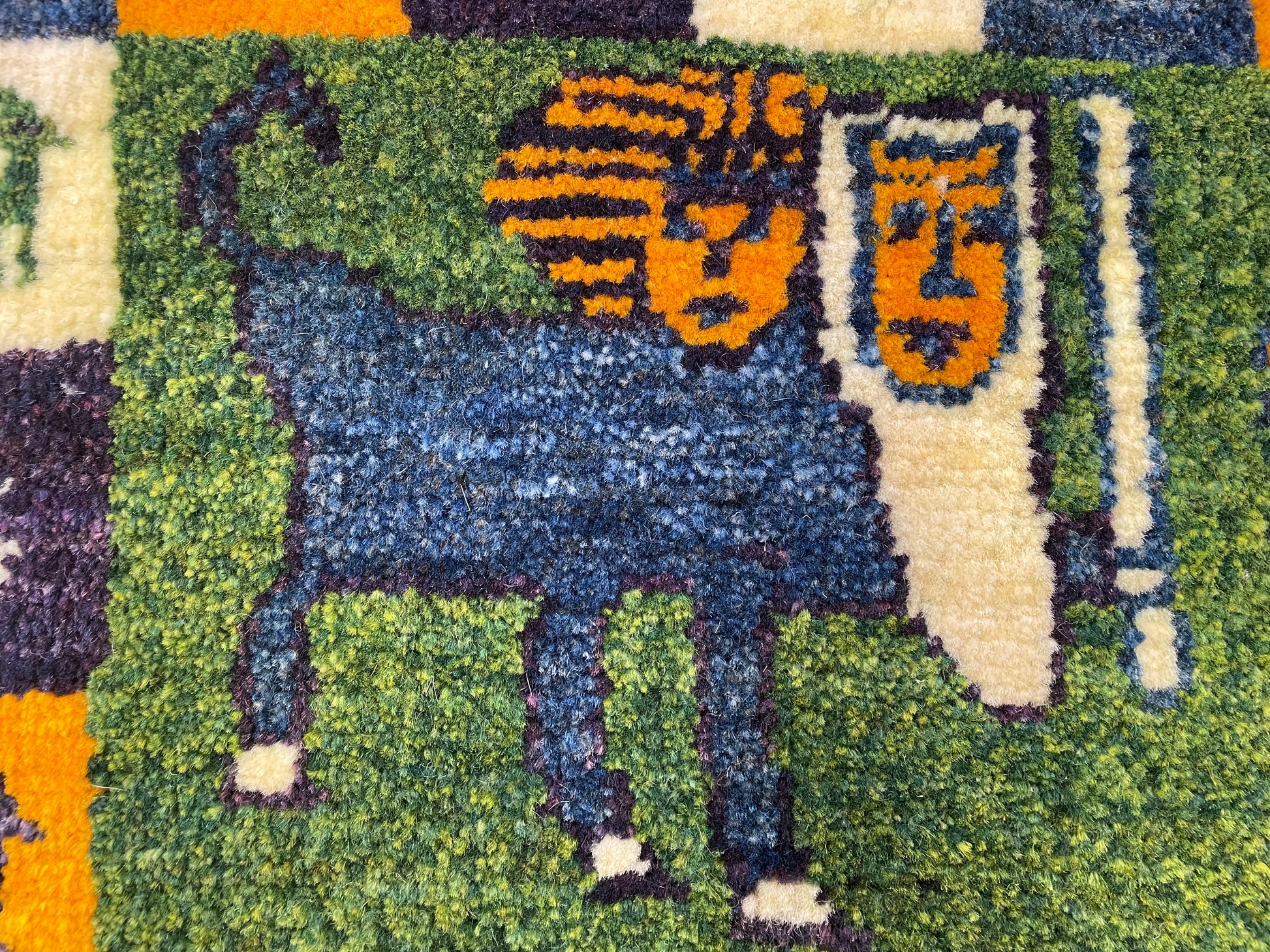 「羊・ヤギ」=家庭円満、「ライオン」=王者・力、「らくだ」=成功、「生命の木」=長寿・健康、「ざくろ」=子孫繫栄などの様々な文様が織り込まれることが多く、それぞれの文様に色々な願いが込められています。