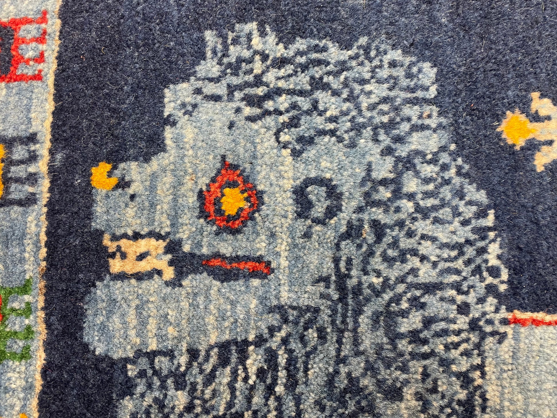「羊・ヤギ」=家庭円満、「ライオン」=王者・力、「らくだ」=成功、「生命の木」=長寿・健康、「ざくろ」=子孫繫栄などの様々な文様が織り込まれることが多く、それぞれの文様に色々な願いが込められています。