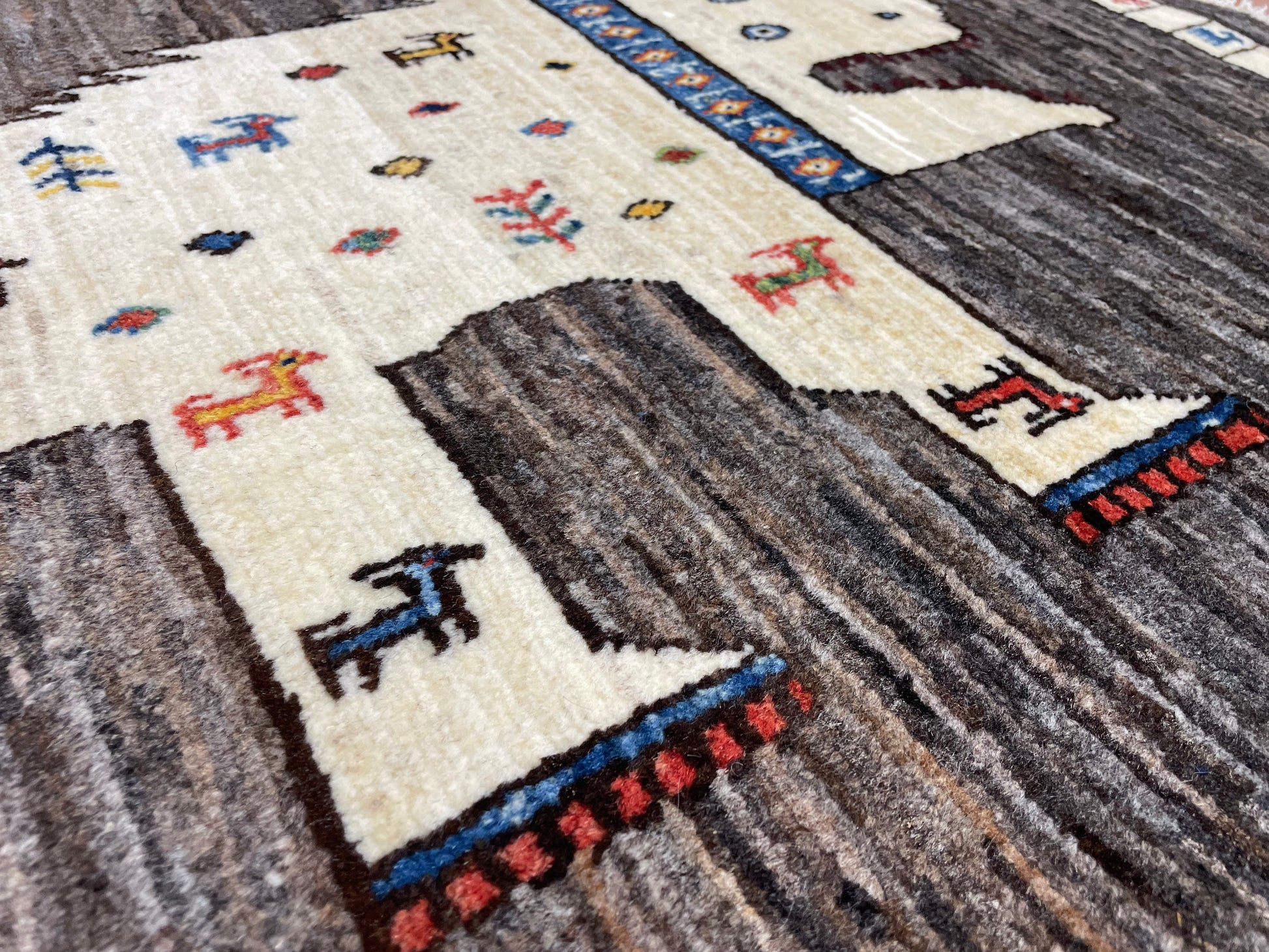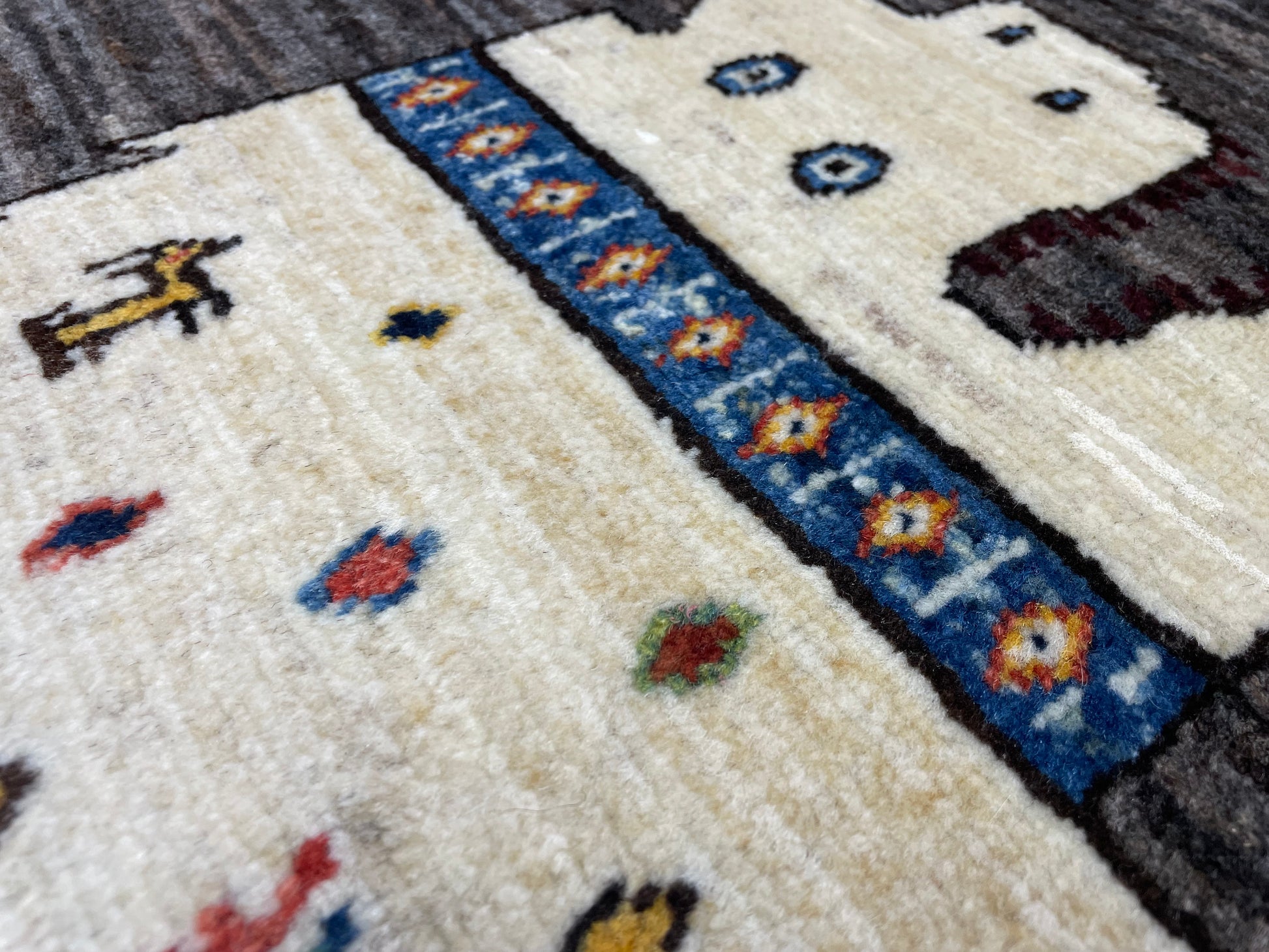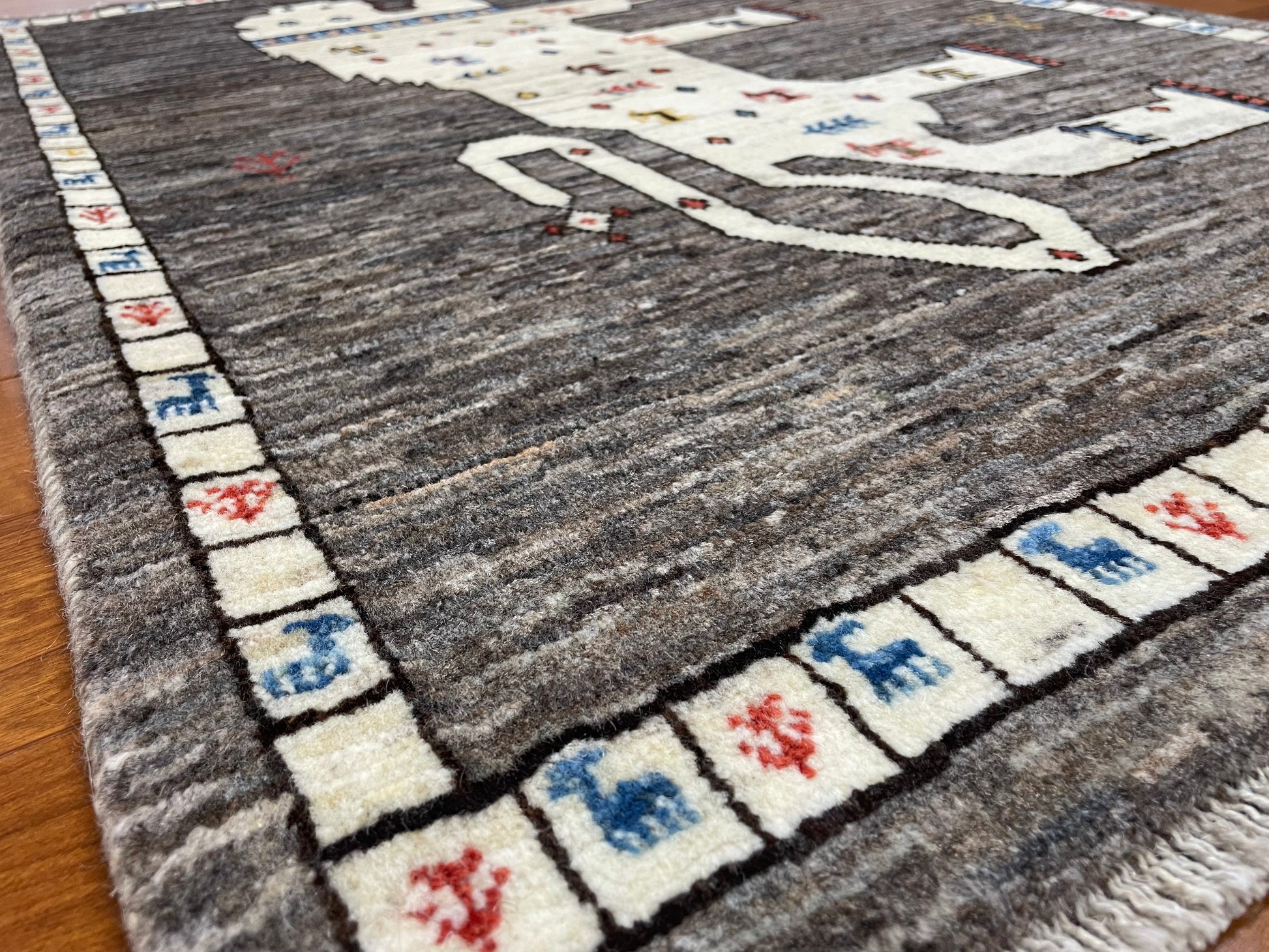 なかでも、ライオンやヒョウなどの猫科の動物をモチーフにしたデザインはこの地域の織り手が得意とするもので、勇ましいライオンから、かわいらしいライオンまで、織り手の想像力によって自由に表現されています。