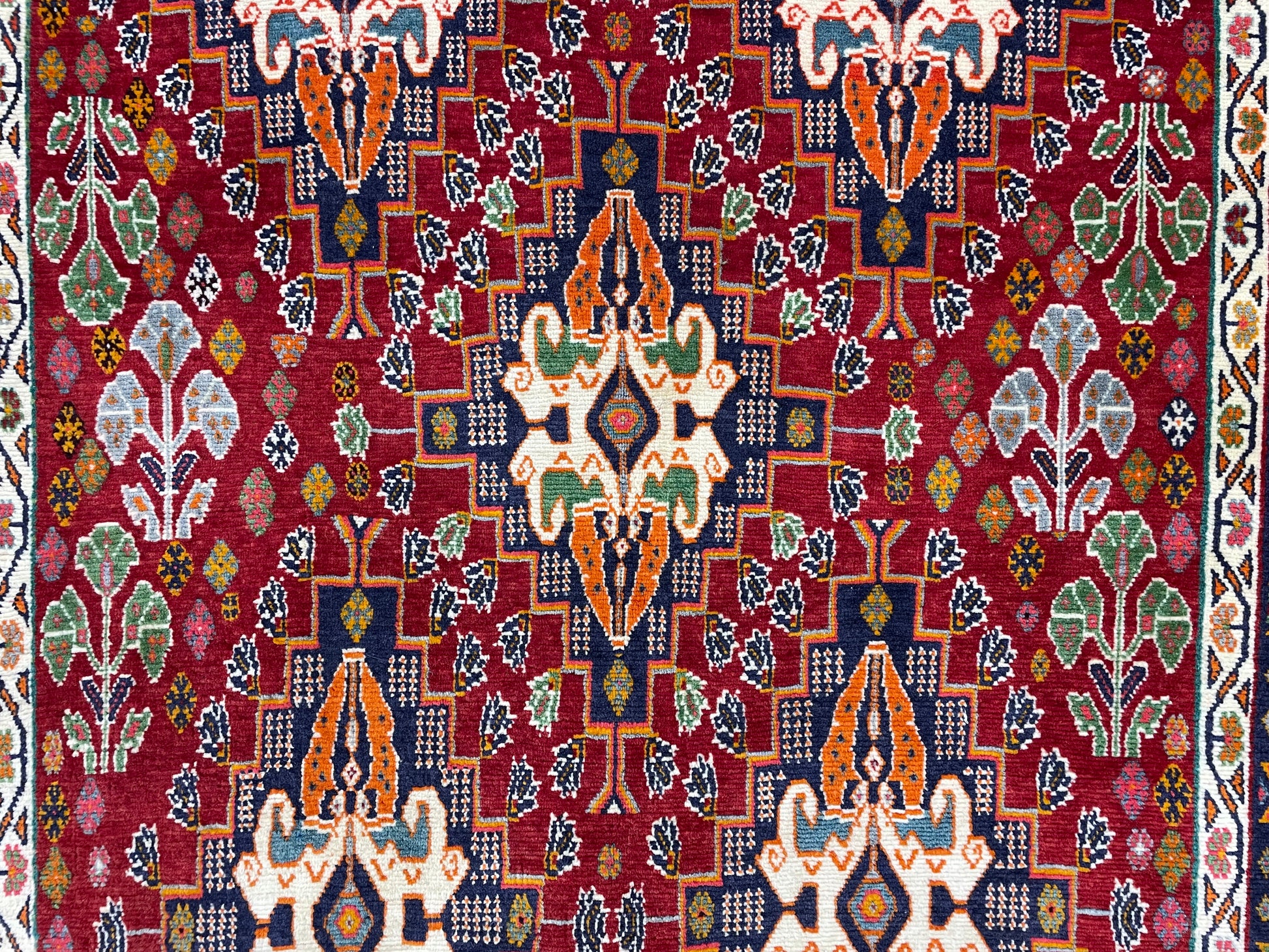 シラーズ絨毯(Shiraz Carpet)は、イラン南西部のファールス州・シラーズ地方で織られる伝統的な手織り絨毯です。特にこの地域に暮らすカシュガイ族(Qashqai)などの遊牧民による、素朴で力強いデザインが魅力です。