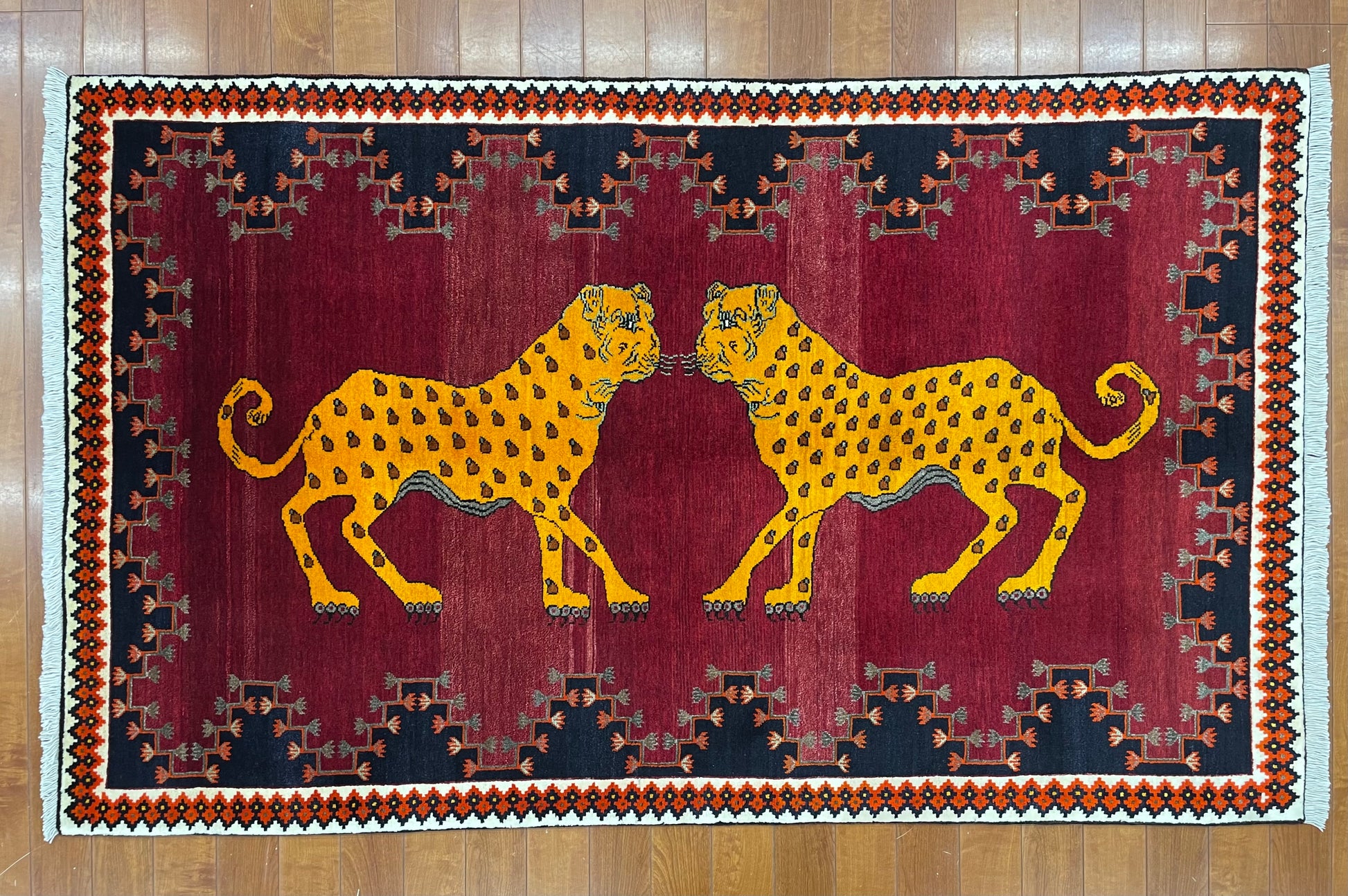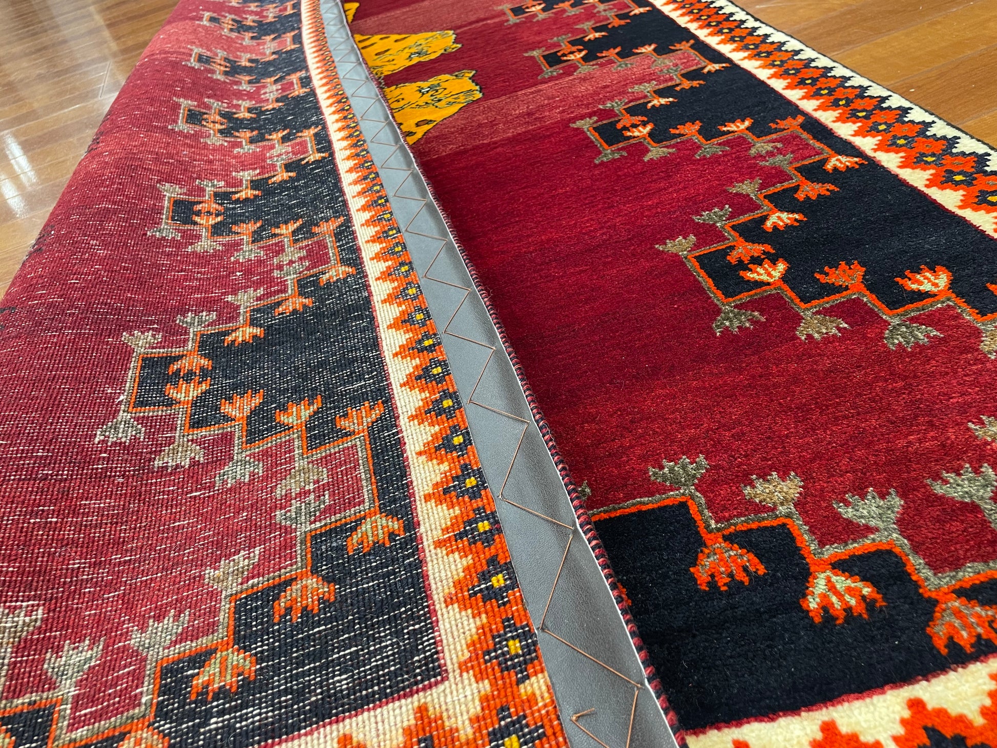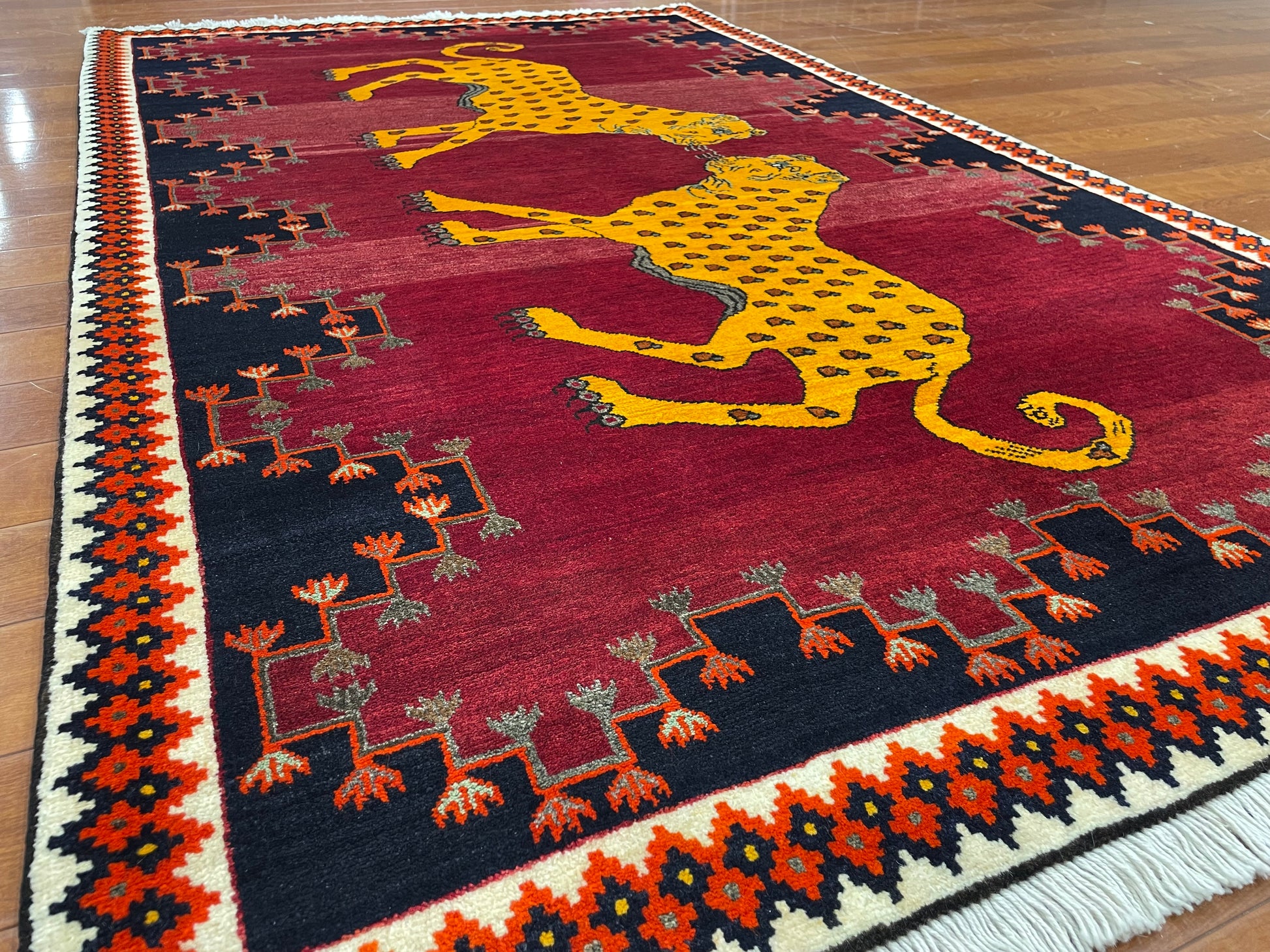 なかでも、ライオンやヒョウなどの猫科の動物をモチーフにしたデザインはこの地域の織り手が得意とするもので、勇ましいライオンから、かわいらしいライオンまで、織り手の想像力によって自由に表現されています。