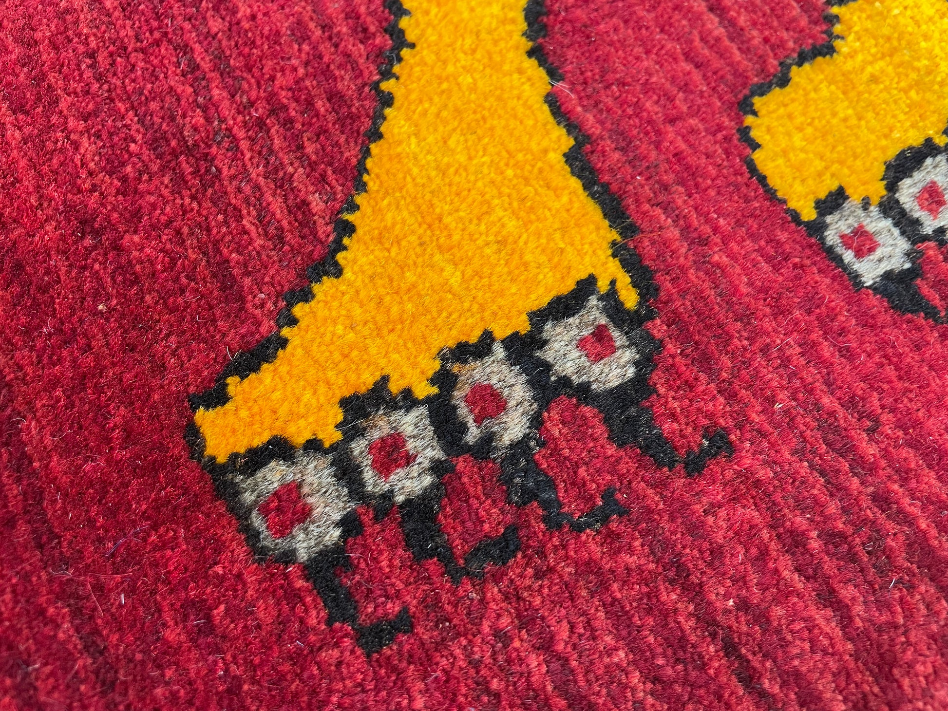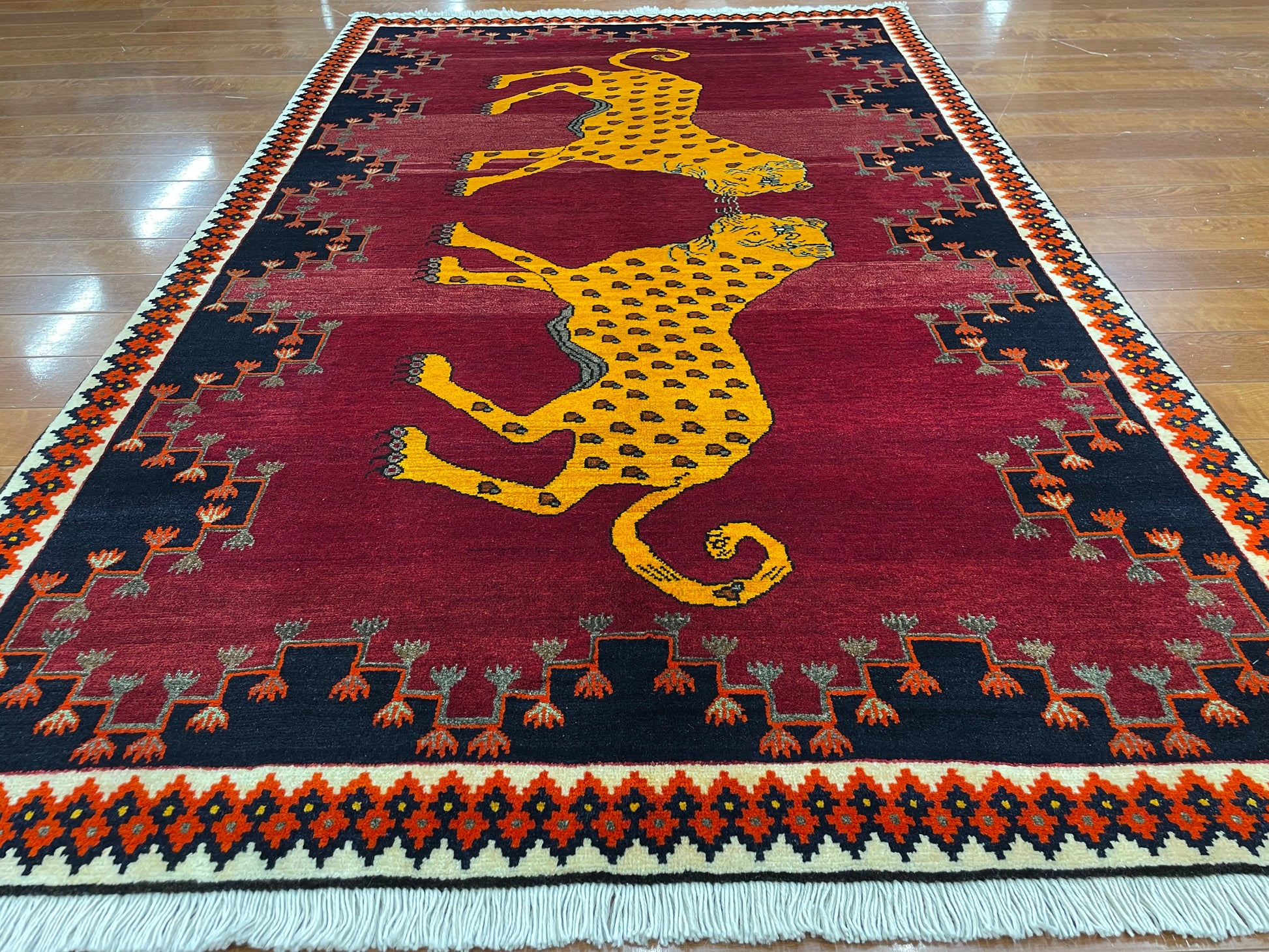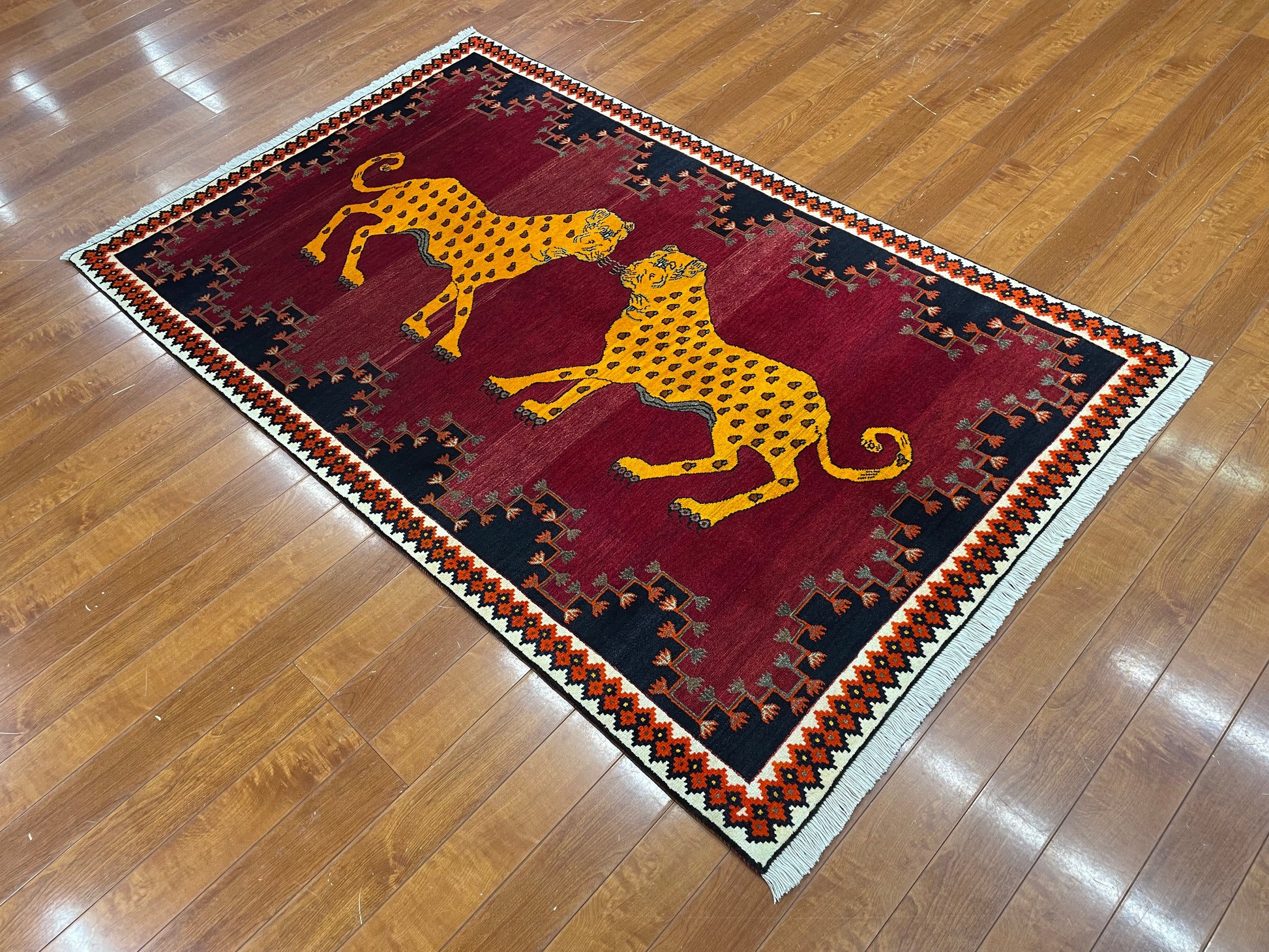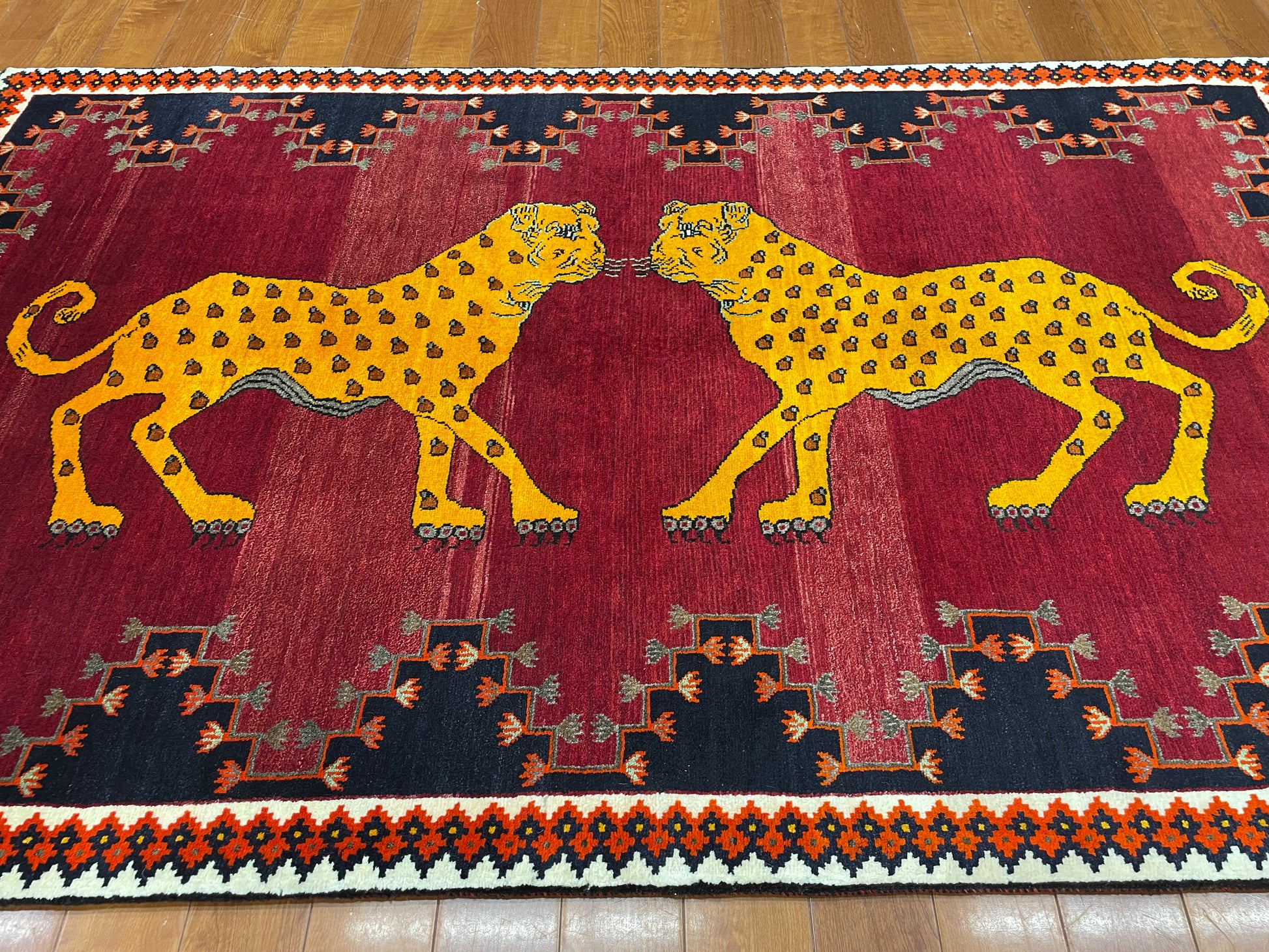 なかでも、ライオンやヒョウなどの猫科の動物をモチーフにしたデザインはこの地域の織り手が得意とするもので、勇ましいライオンから、かわいらしいライオンまで、織り手の想像力によって自由に表現されています。