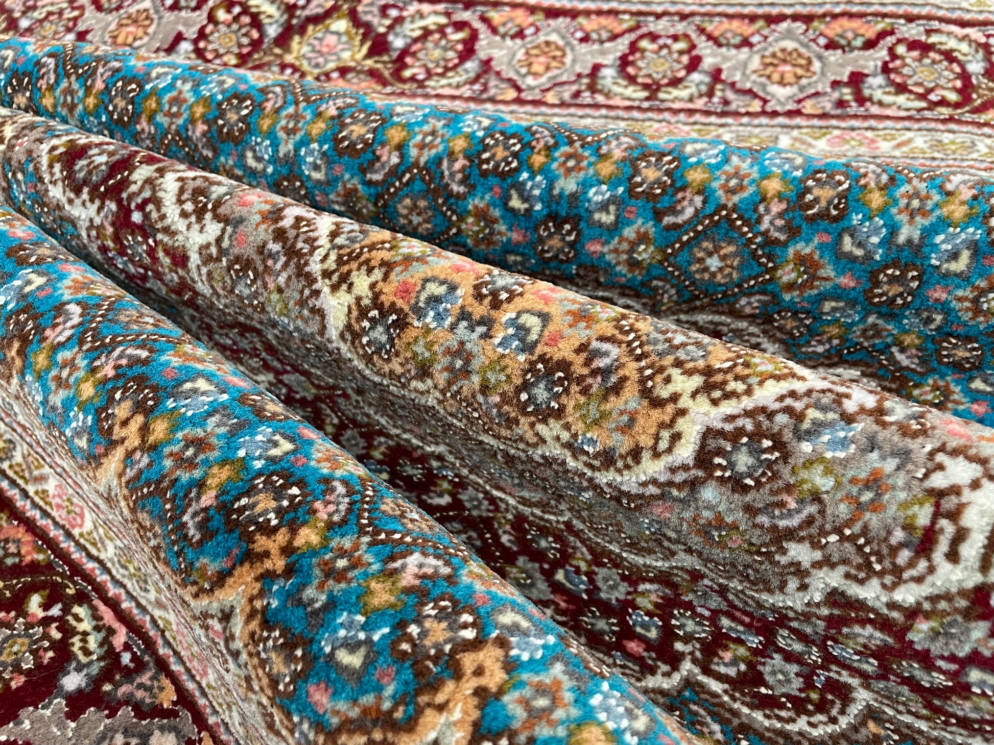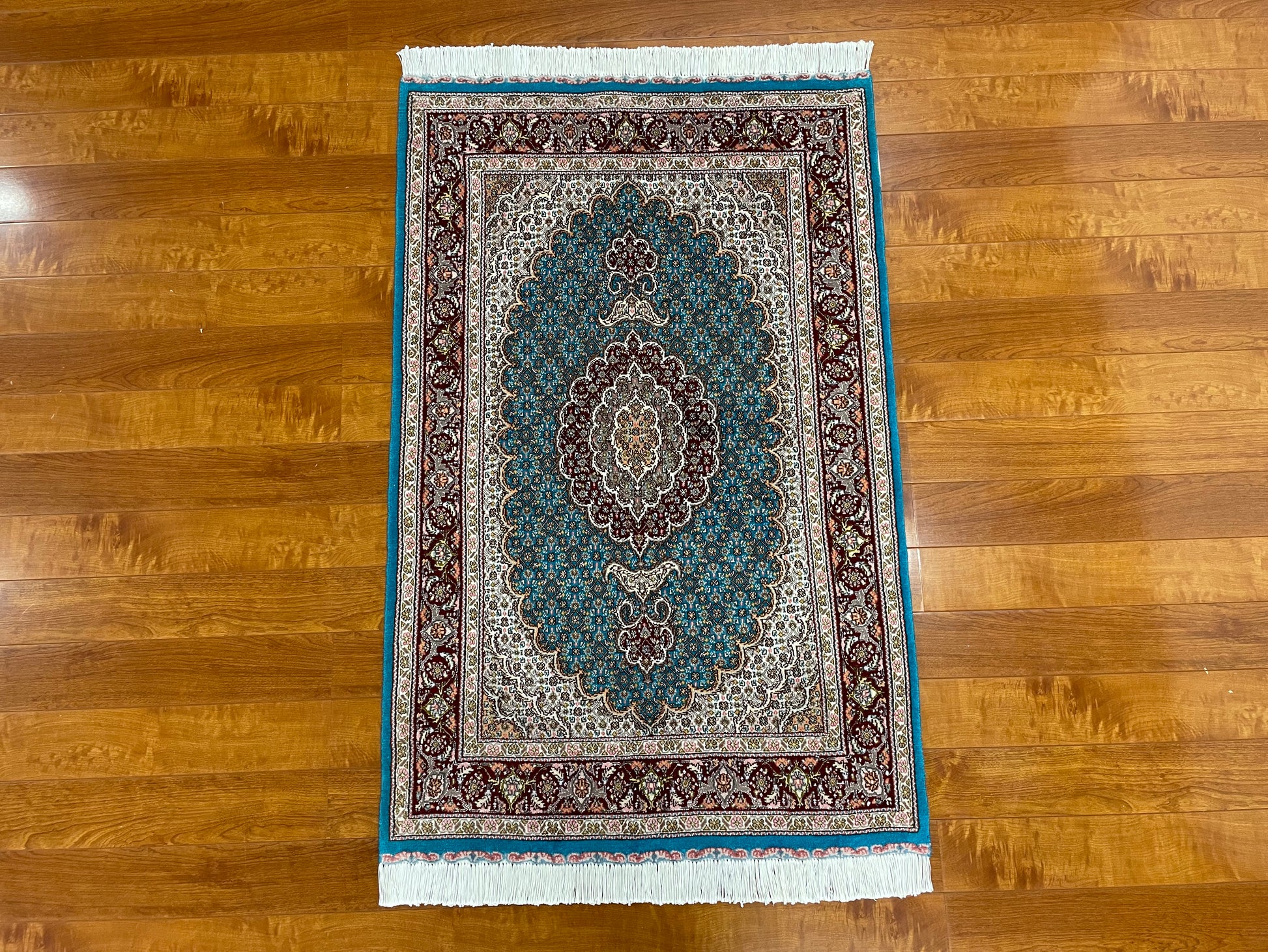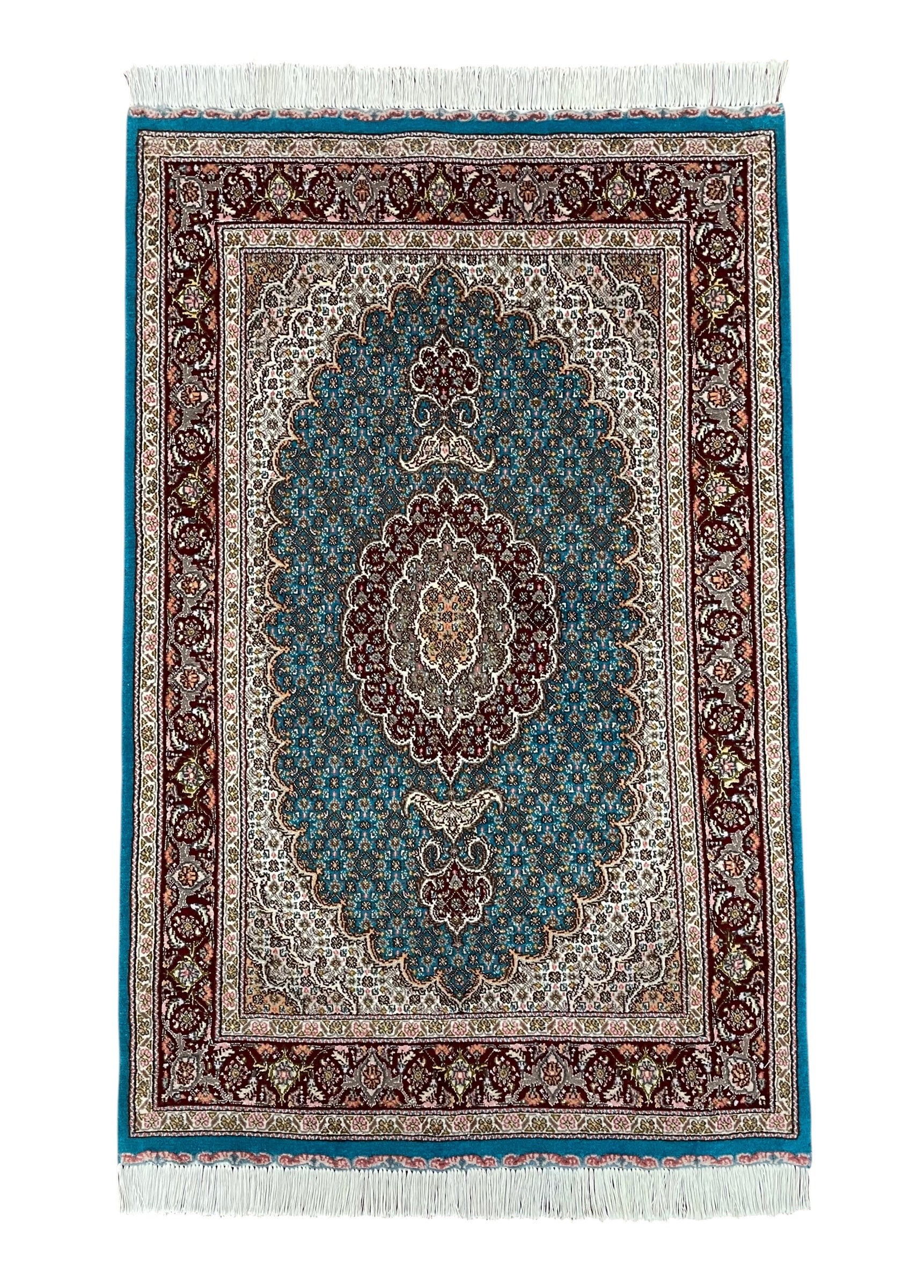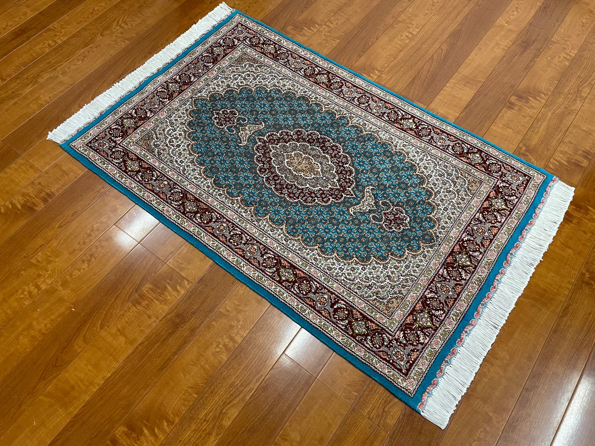 ペルシャ絨毯五大産地のひとつで、緻密な織り、荘厳なメダリオンデザイン、落ち着いた色合いが特徴の、格式高い伝統的なペルシャ絨毯です。タブリーズのデザインはベナム柄(王朝風)やマヒ柄(小魚文様)が代表的です。織密度が緻密で耐久性にとても優れています。