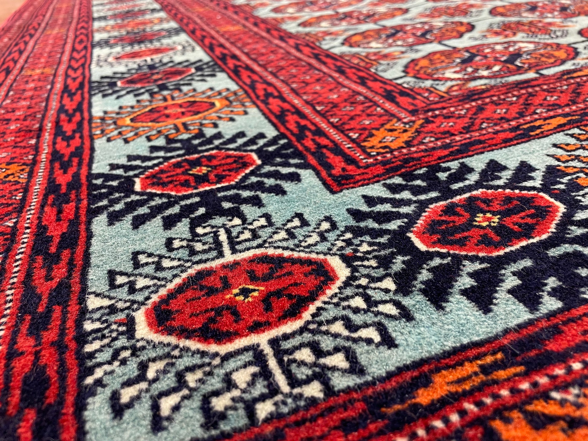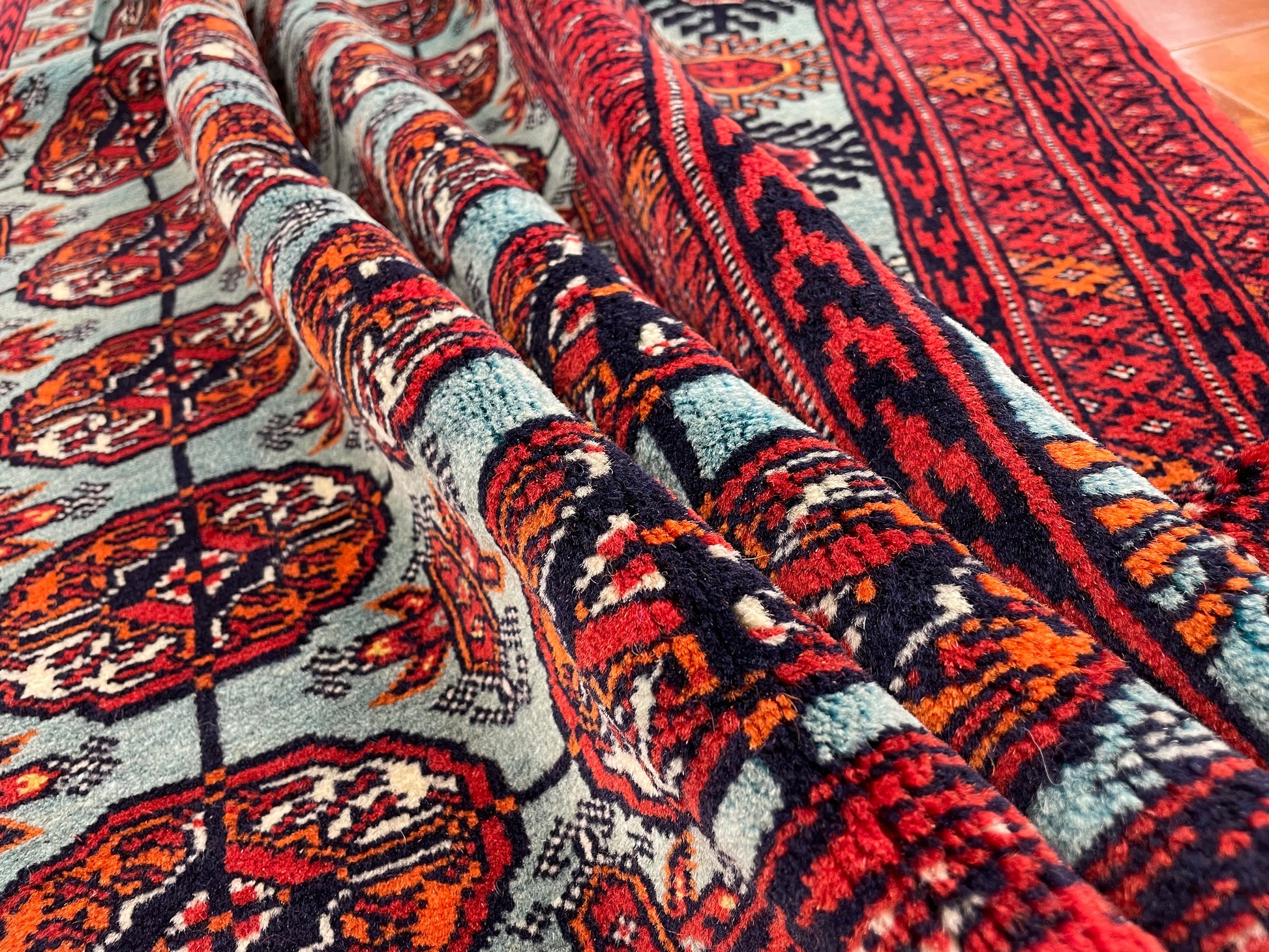 トルクメン(Turkmen)は、イラン北東部に住むトルクメン族によって織られる絨毯で、その「赤」には非常に深いこだわりと象徴的な意味があります。