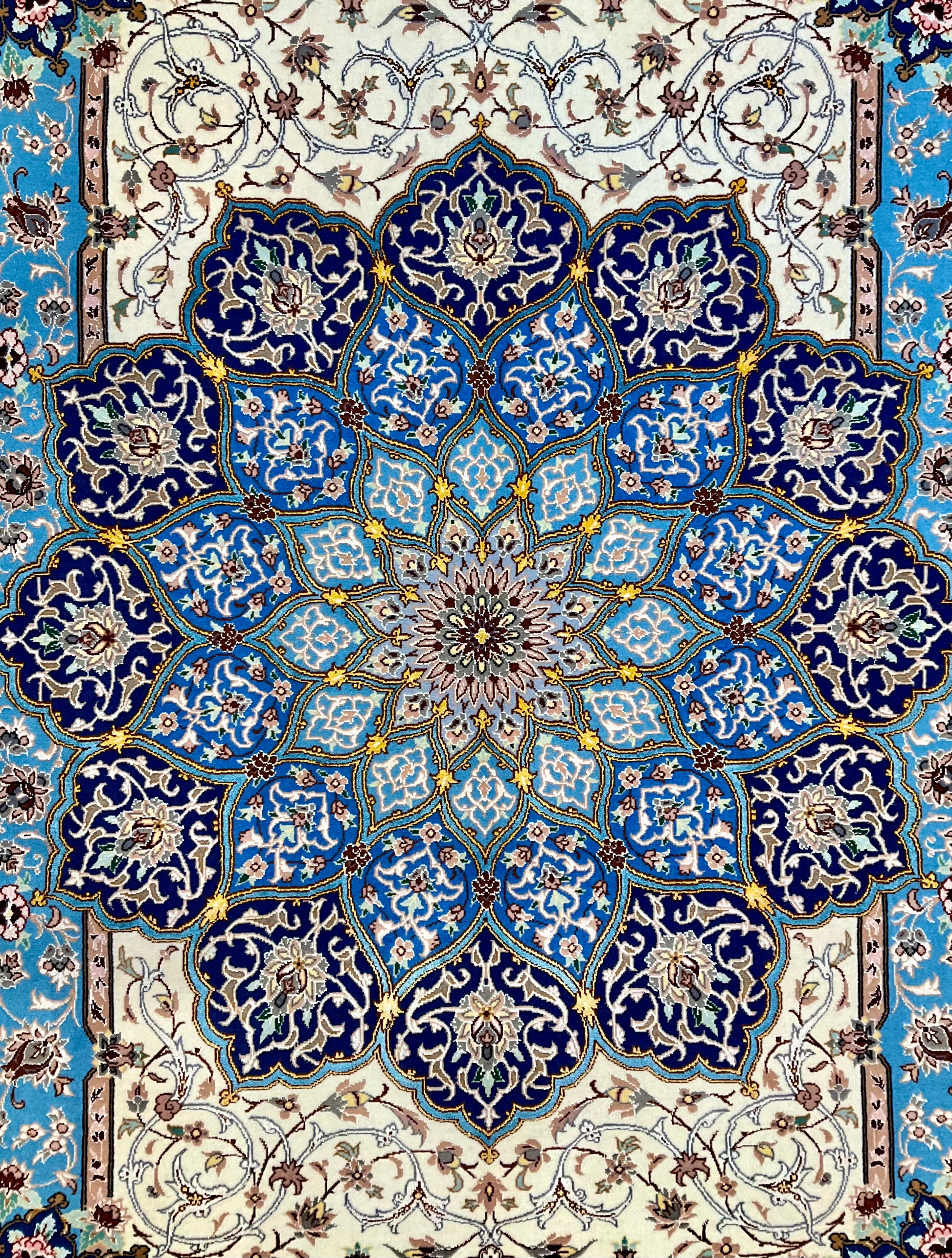 ペルシャ絨毯の五大産地のひとつ、イランを代表する歴史都市、イラン中央部・イスファハン州の州都イスファハン/エスファハーン(Isfahan/Esfahan)。この町は古くから政治・文化・交通の拠点として栄え、「イランの真珠」と称されるその美しさでも知られています。ペルシャ絨毯の中でも、デザイン、色彩、技術、すべてにおいて最高峰と称され、世界中のコレクターの中でも絶大な人気を誇ります。