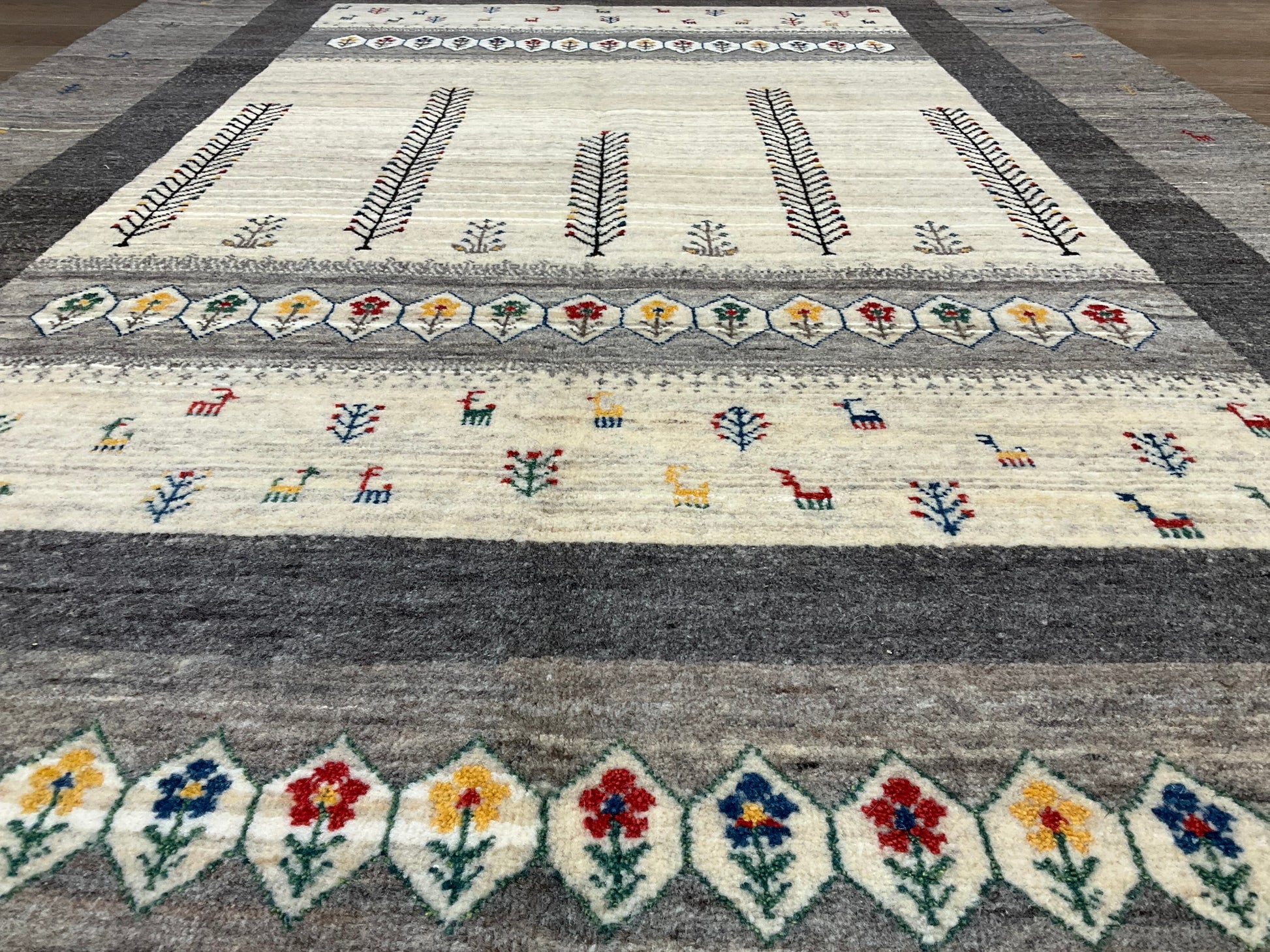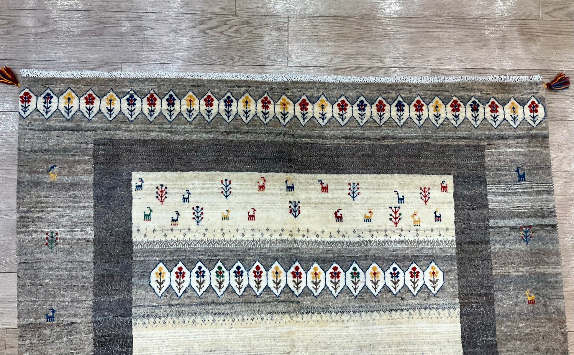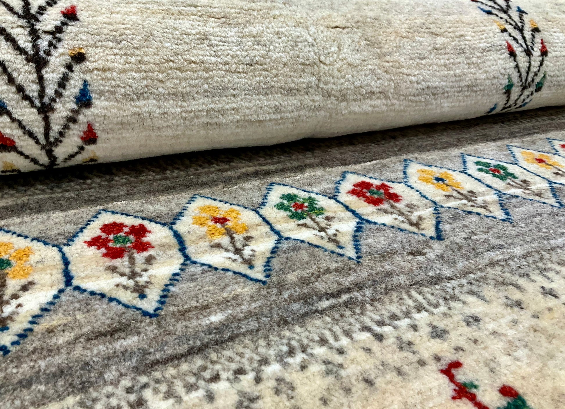 ギャッベ(Gabbeh)は、ペルシャ語で”目が粗い”、”ざっくり”したという意味を持つ手織り絨毯です。イラン南西部・シラーズを中心に、カシュガイ族やルリ族といった遊牧民によって織られています。