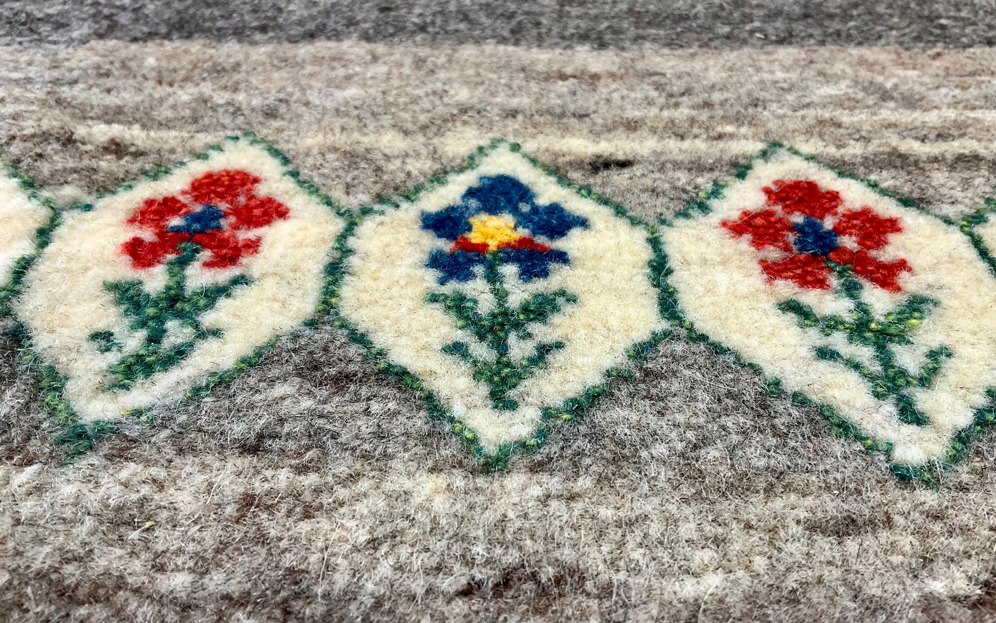 羊と共に生活する遊牧民が、その羊毛を草木で染め、日常の営みや目の前の自然をモチーフに織り上げます。文様には幸せの願いが込められており、例えば「羊・ヤギ」=家庭円満、「ライオン」=王者・力、「生命の木」=長寿・健康、「ざくろ」=子孫繫栄などが代表的です。