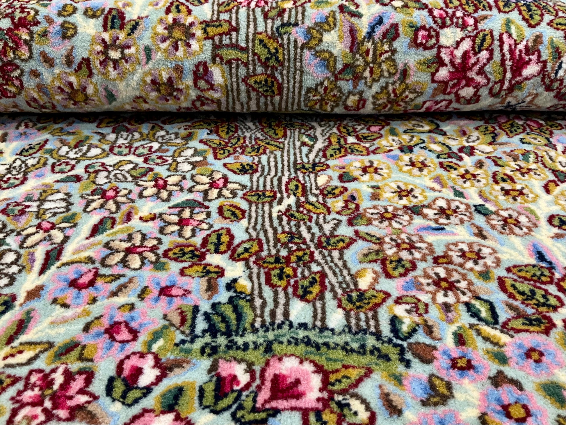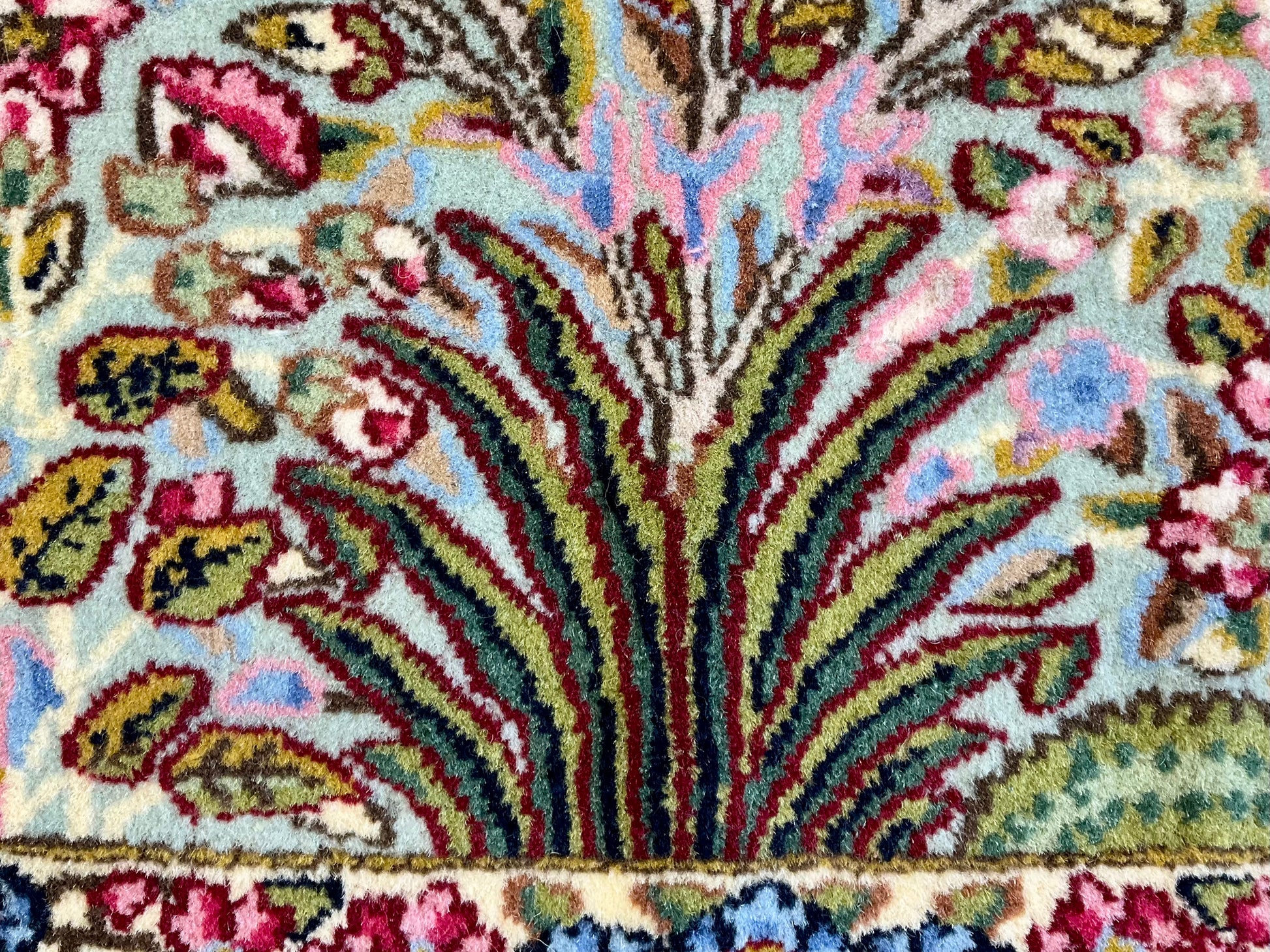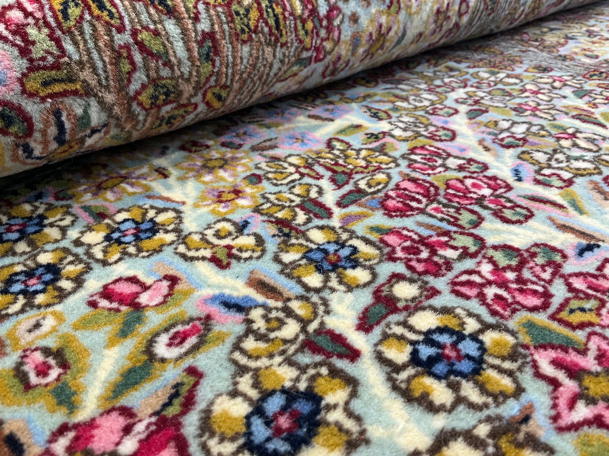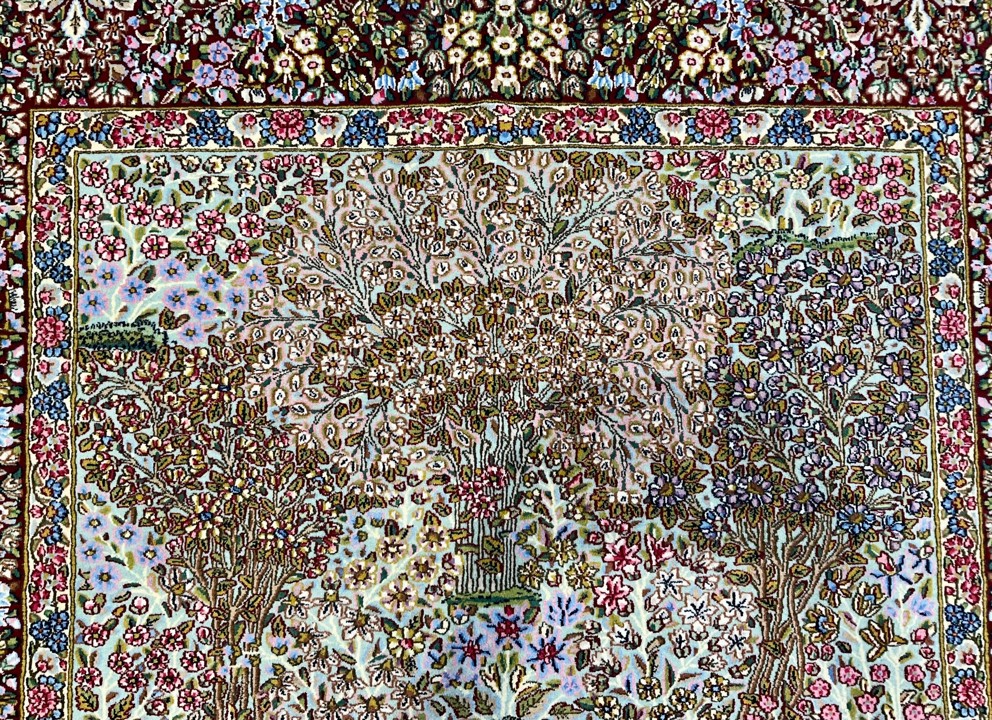 ケルマンの絨毯は、「Hezar」=千、「Gol」=花、「千の花の絨毯」と言われ、まるで色とりどりの美しい「千の花」が散りばめられたようなデザインが多く織られているのが特徴です。