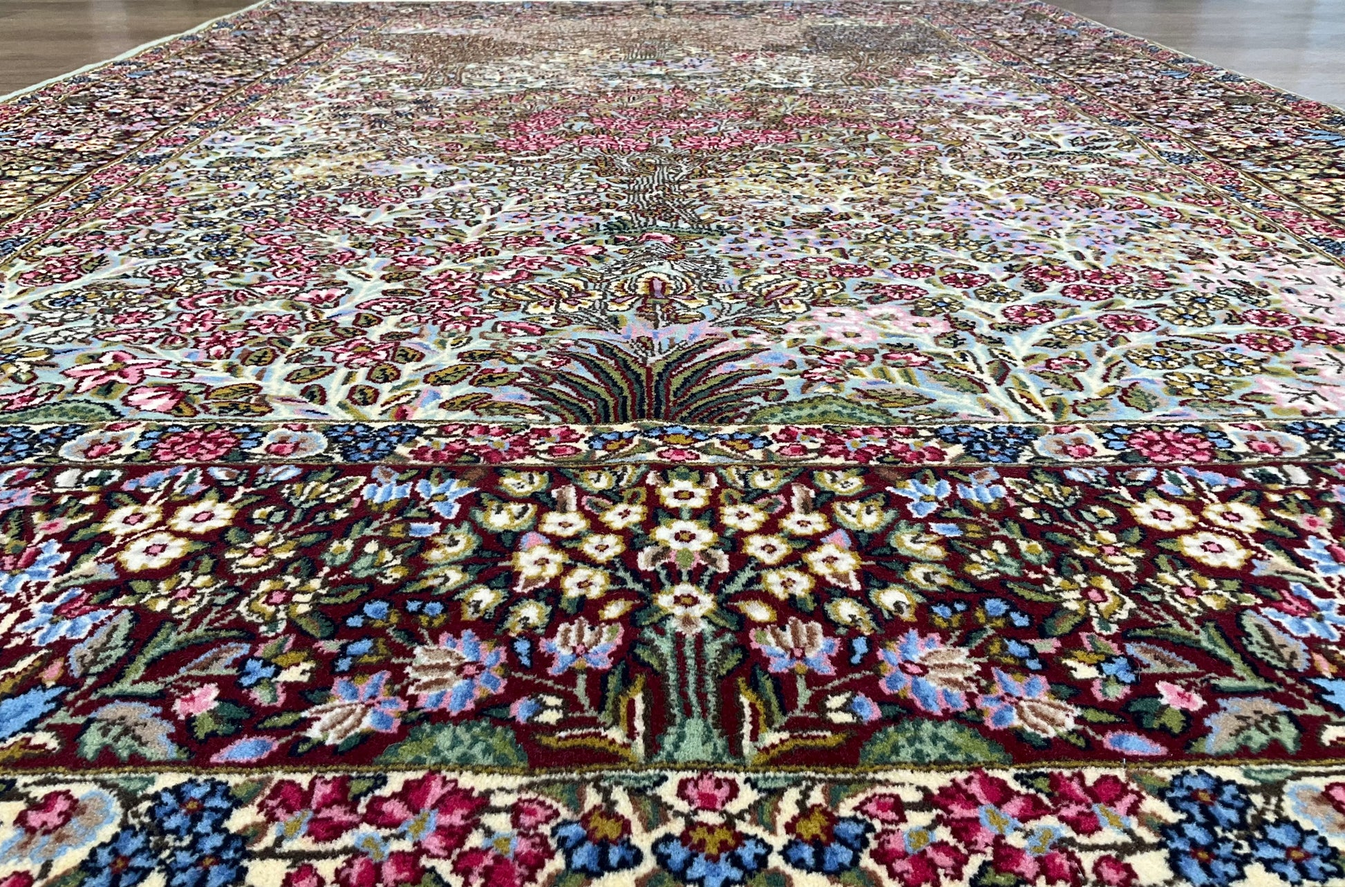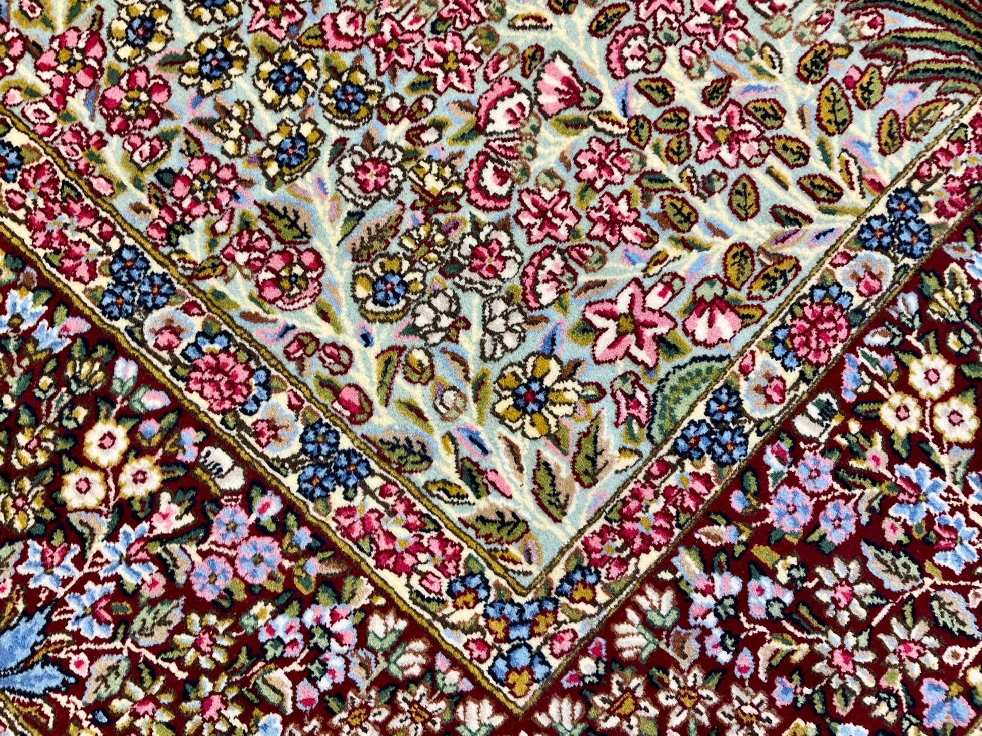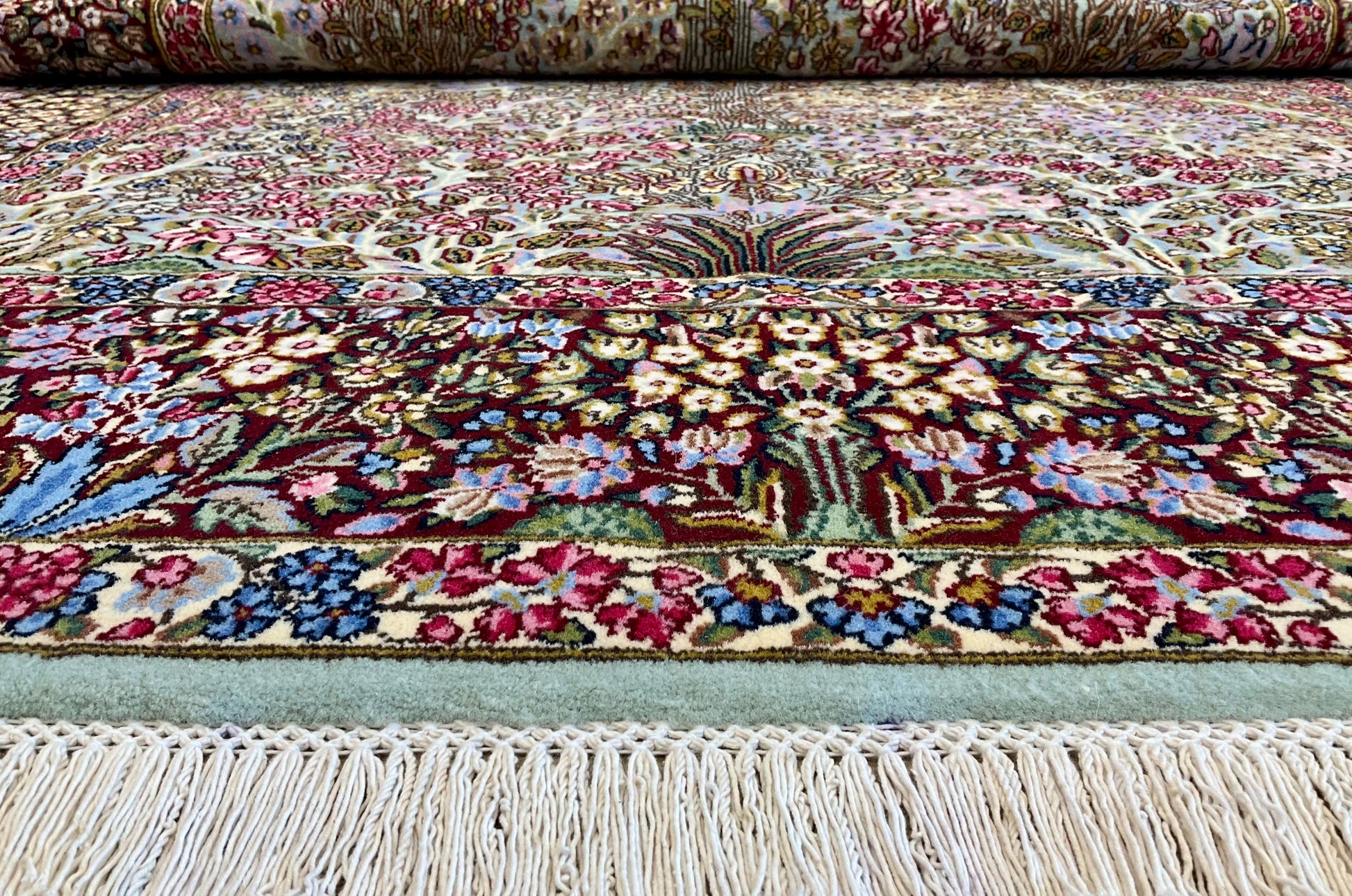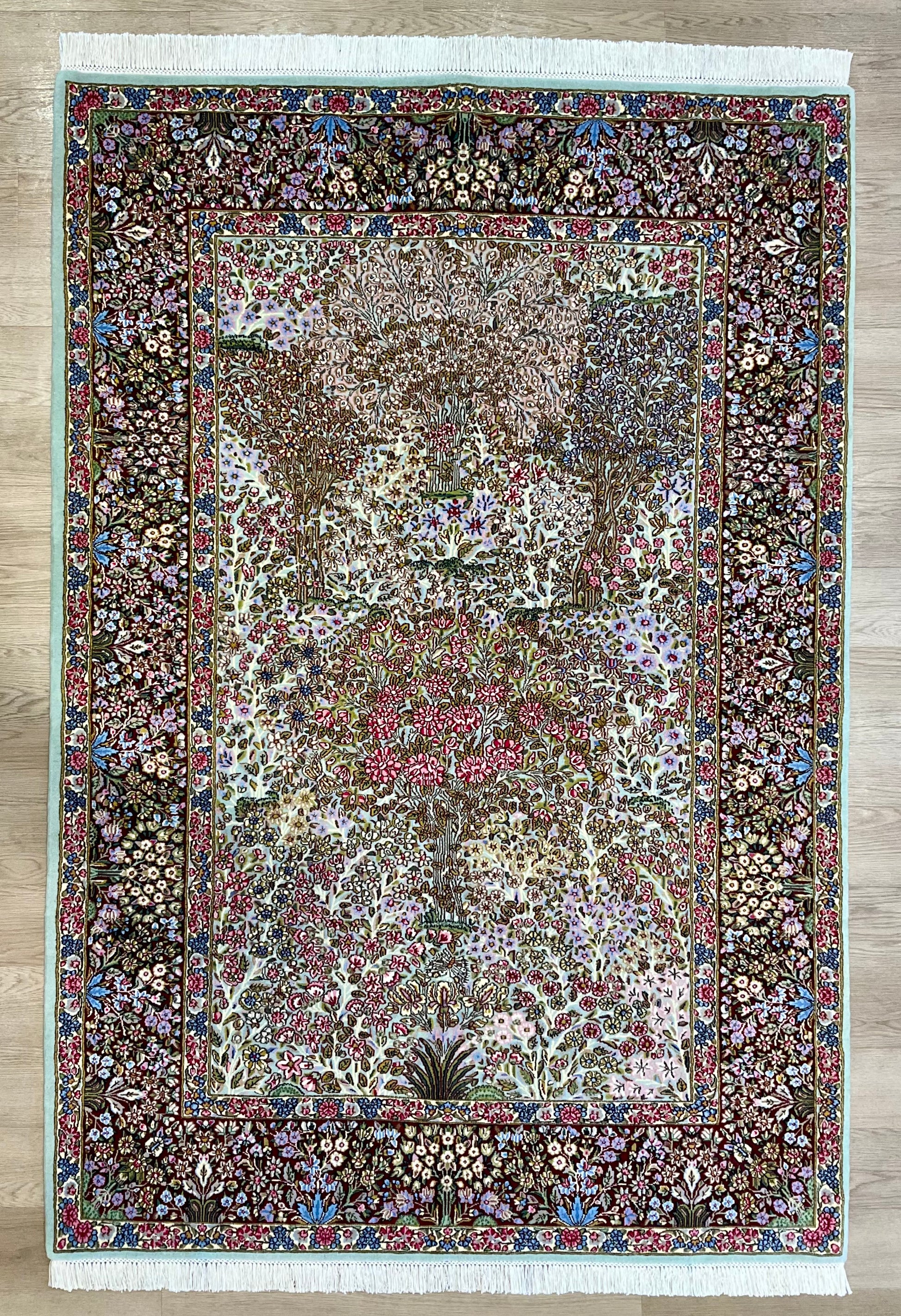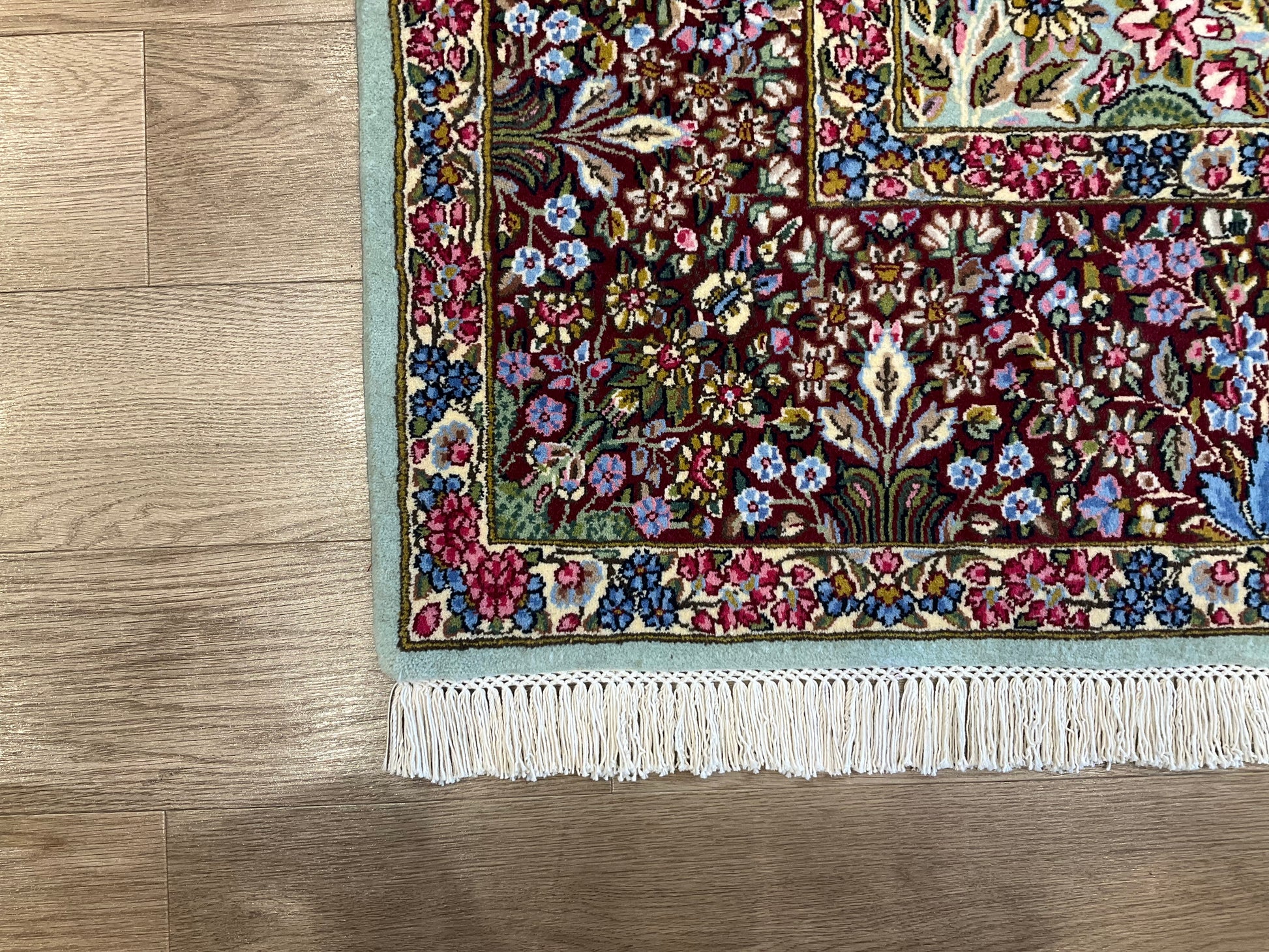 ケルマンの絨毯は、「Hezar」=千、「Gol」=花、「千の花の絨毯」と言われ、まるで色とりどりの美しい「千の花」が散りばめられたようなデザインが多く織られているのが特徴です。
