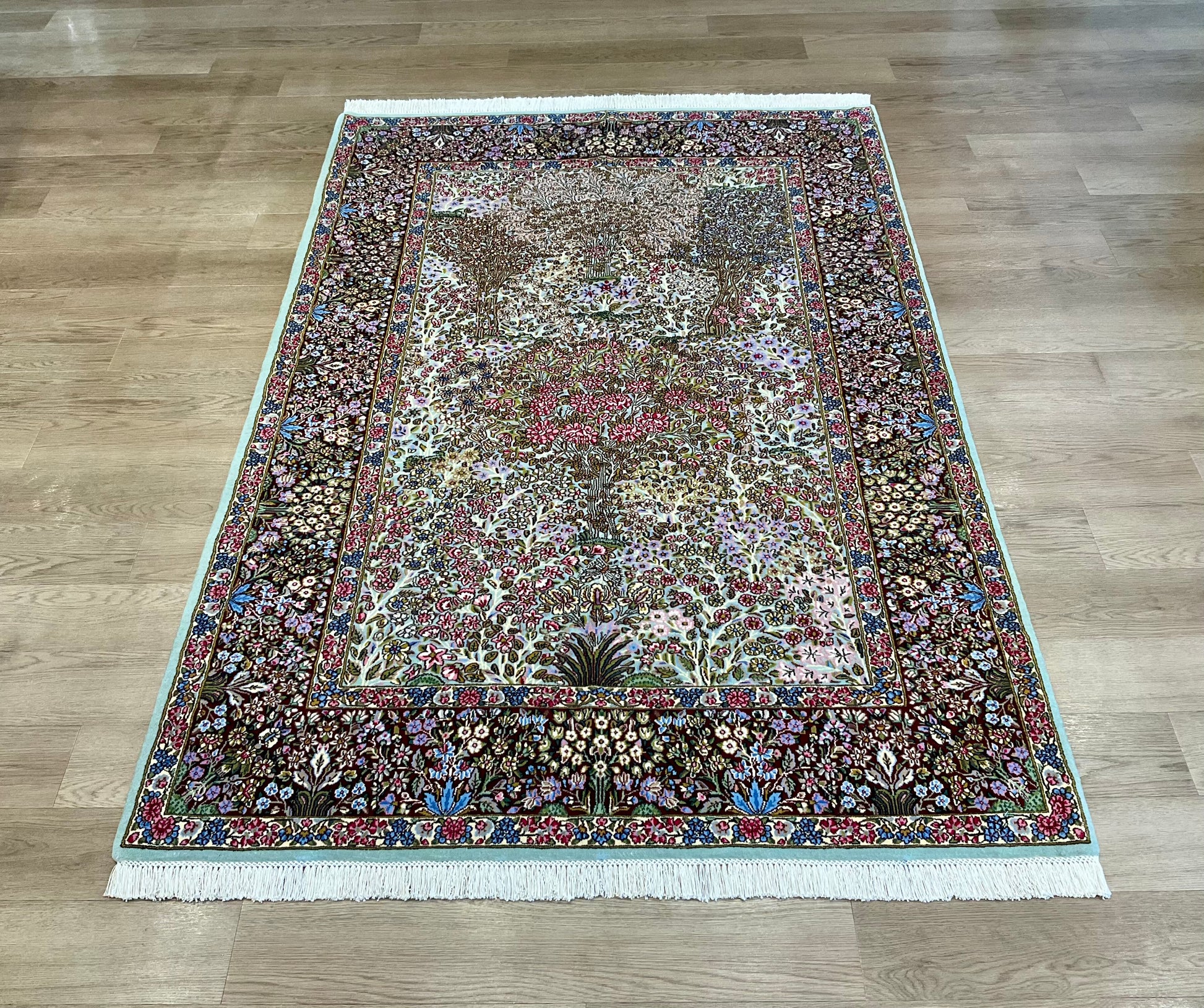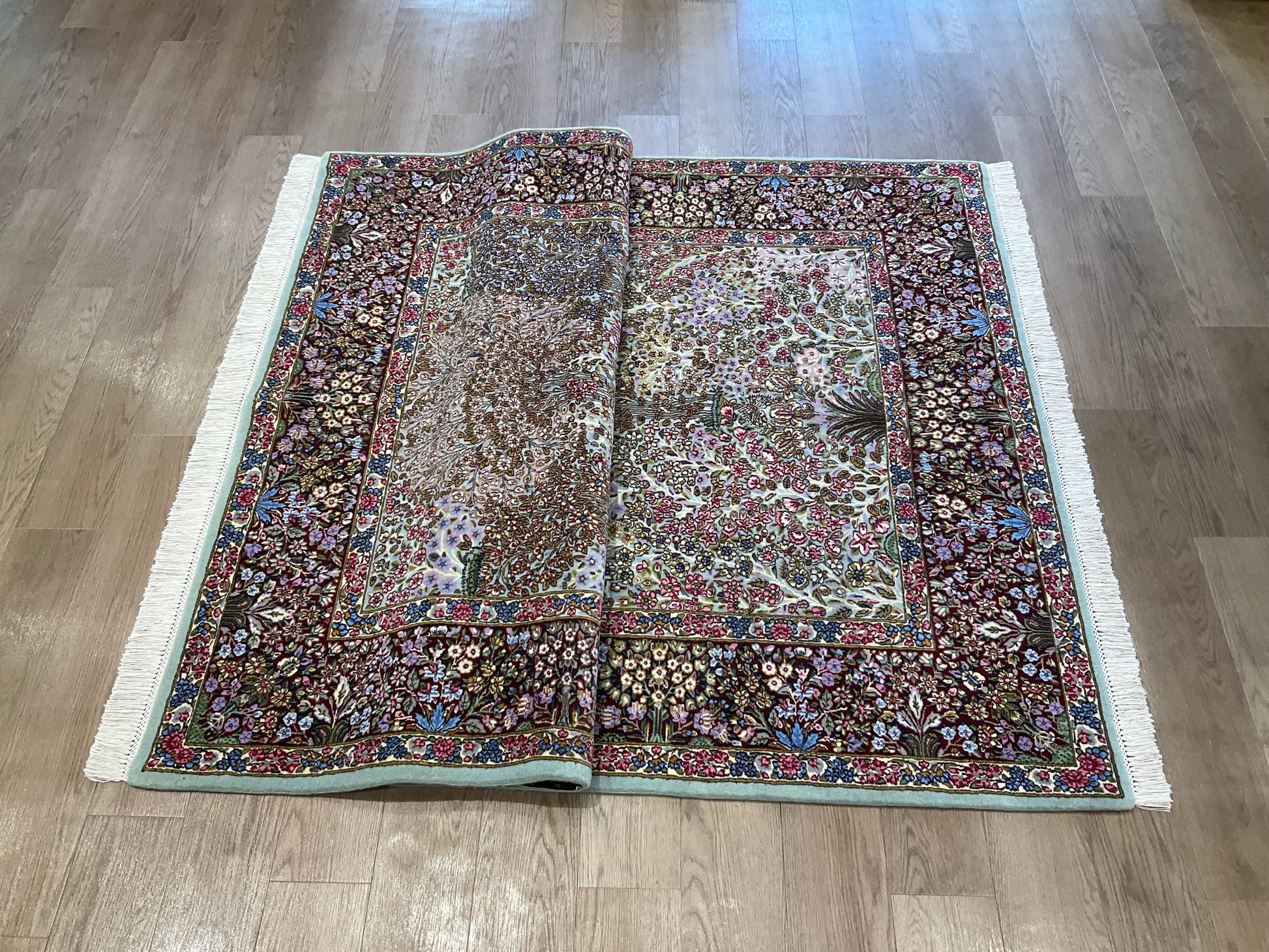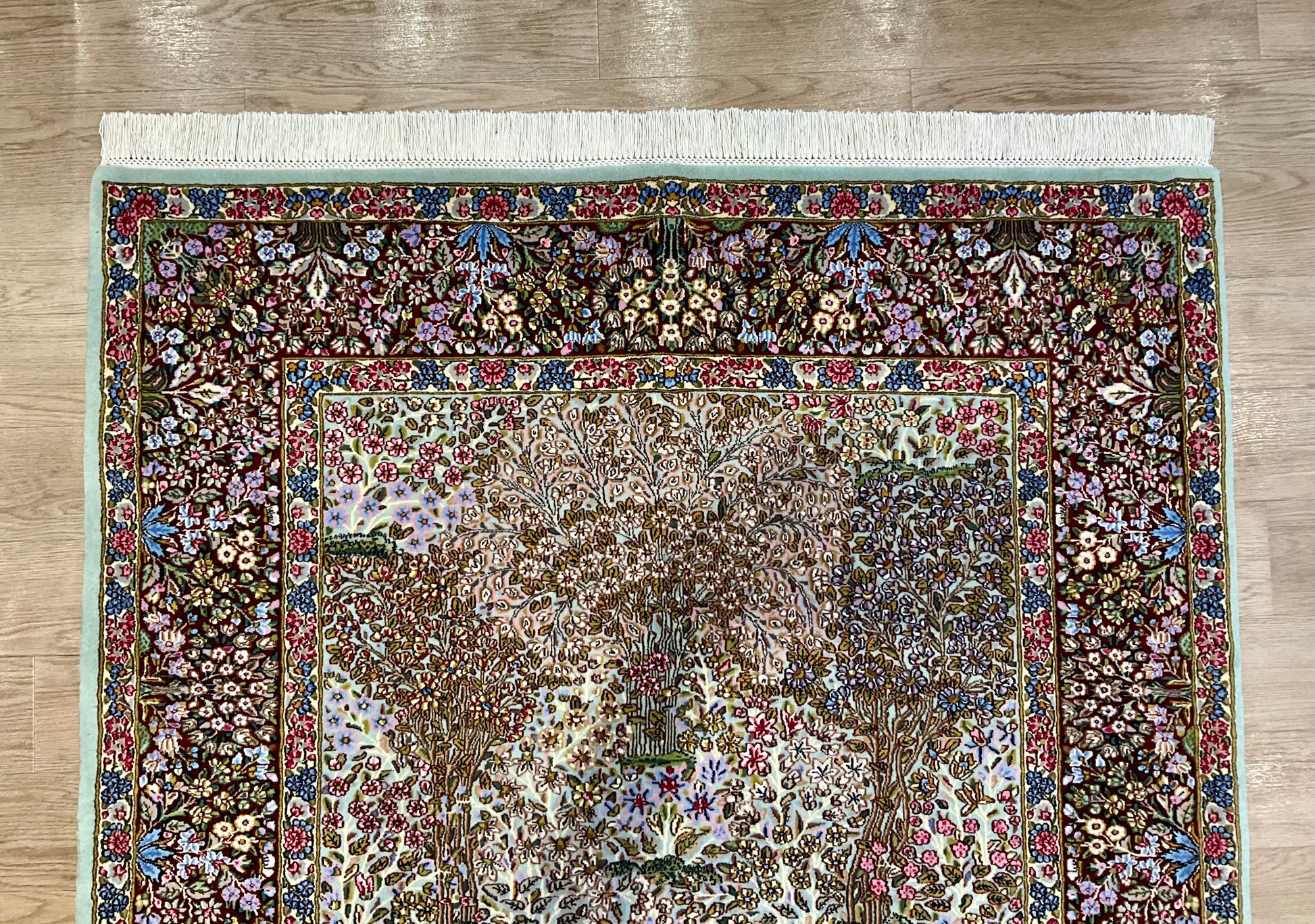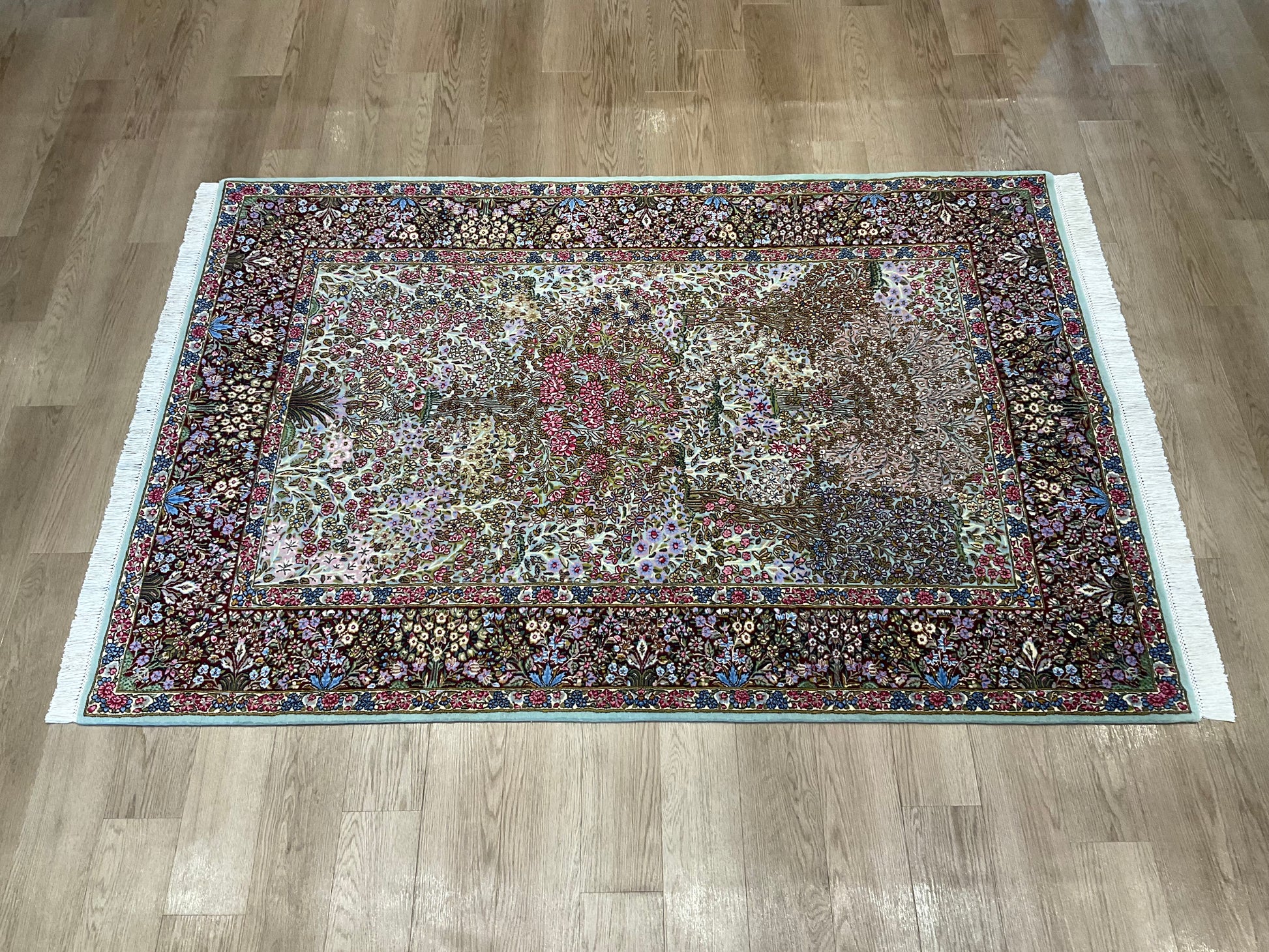 ケルマンの絨毯は、「Hezar」=千、「Gol」=花、「千の花の絨毯」と言われ、まるで色とりどりの美しい「千の花」が散りばめられたようなデザインが多く織られているのが特徴です。