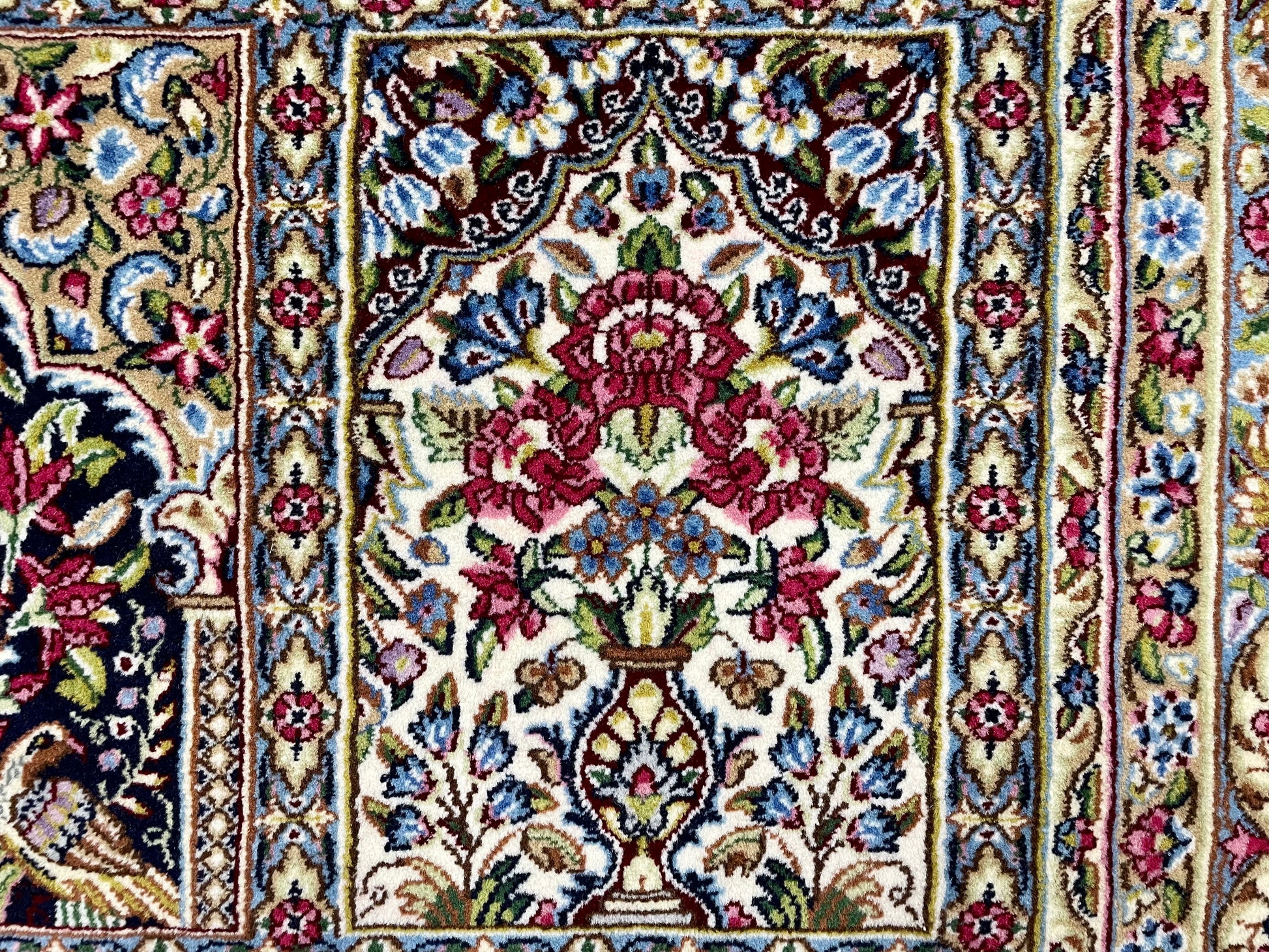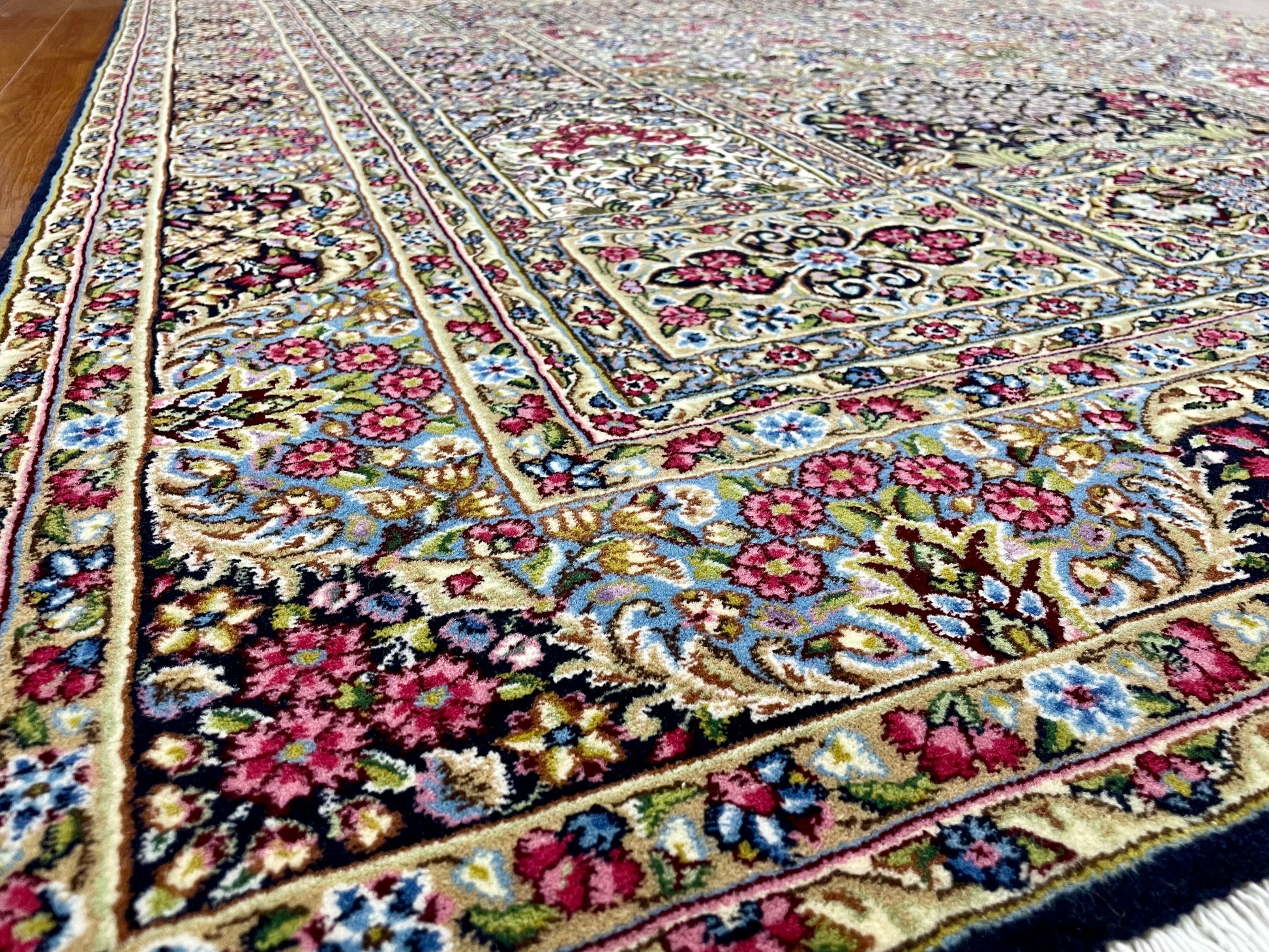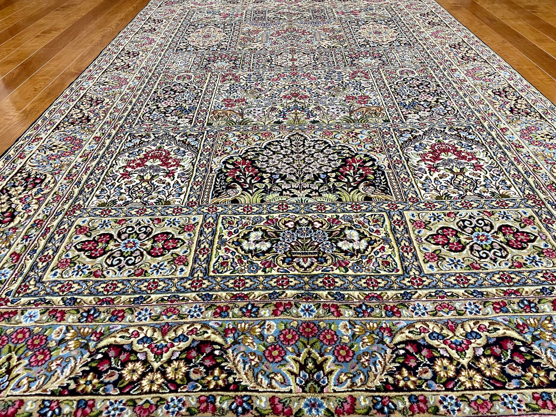 ケルマンの絨毯は、「Hezar」=千、「Gol」=花、「千の花の絨毯」と言われ、まるで色とりどりの美しい「千の花」が散りばめられたようなデザインが多く織られているのが特徴です。