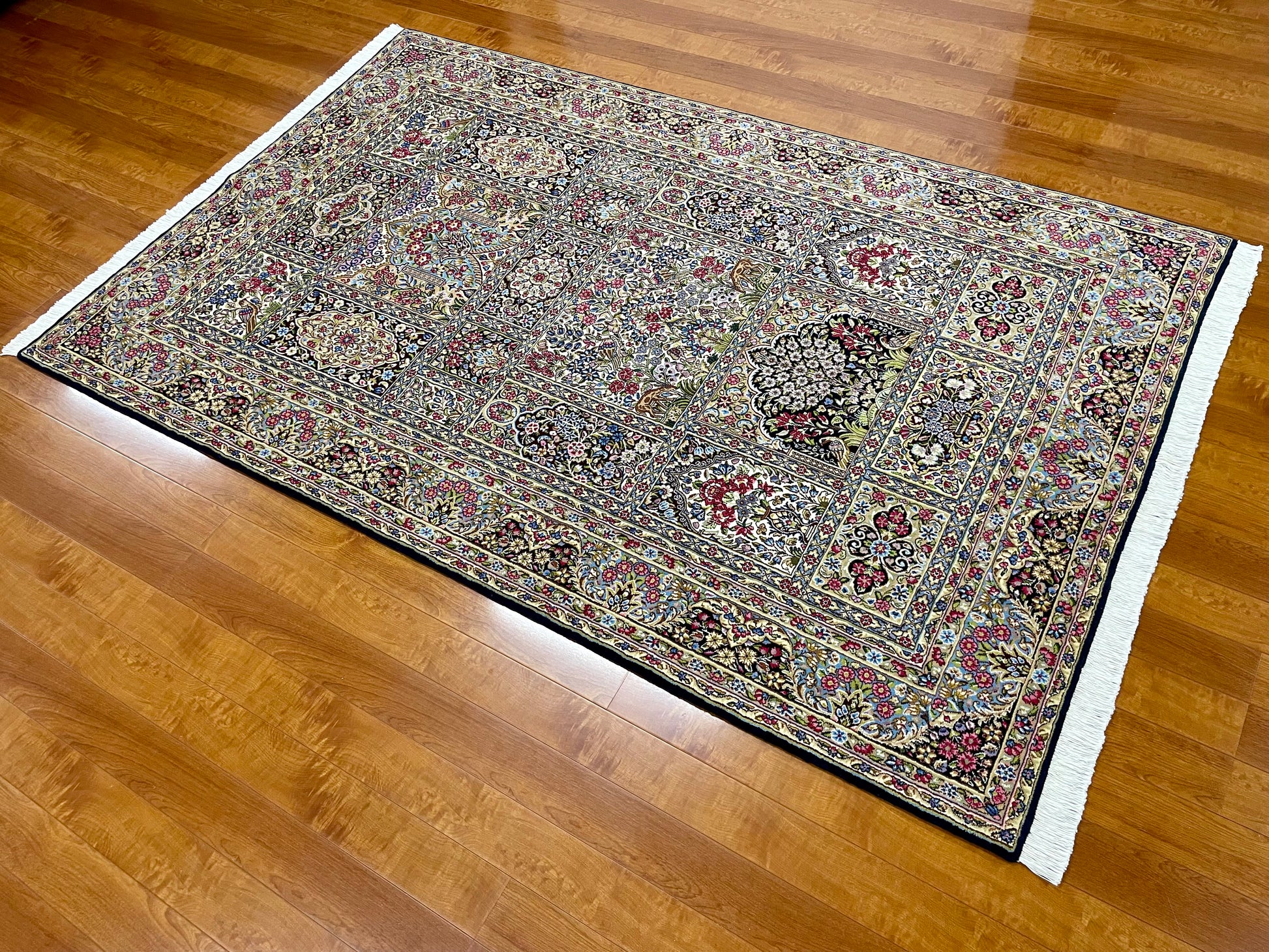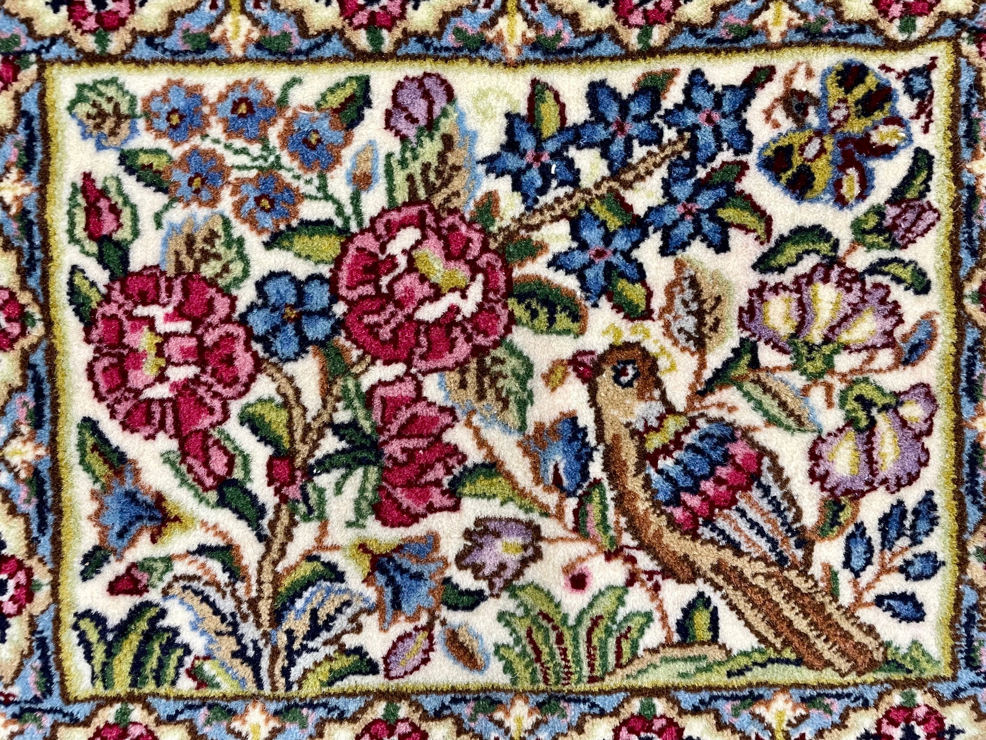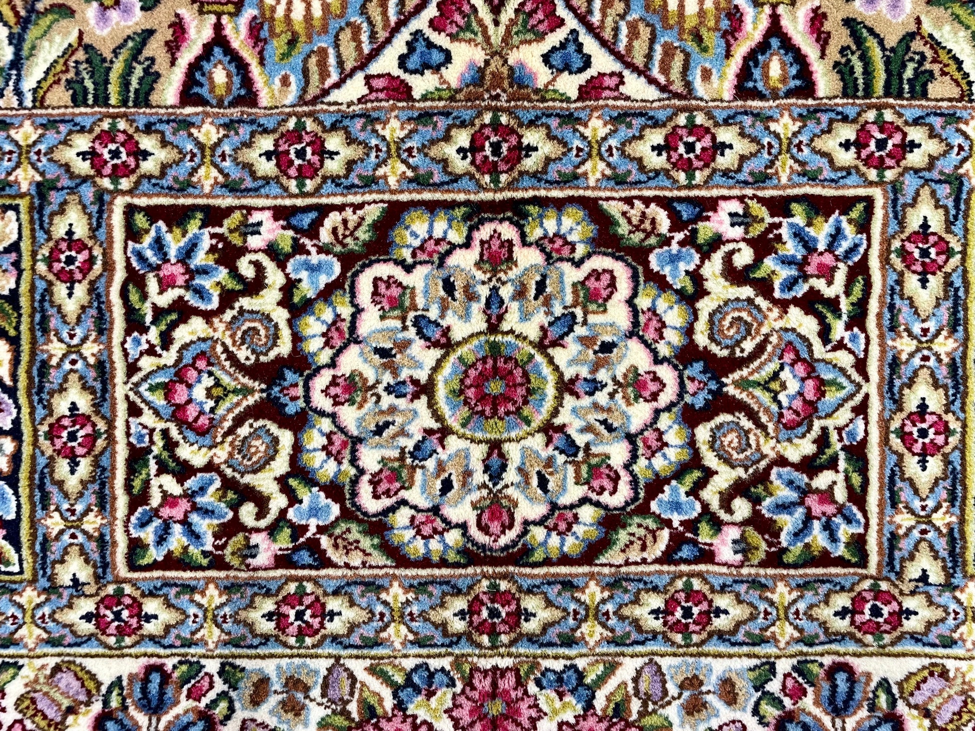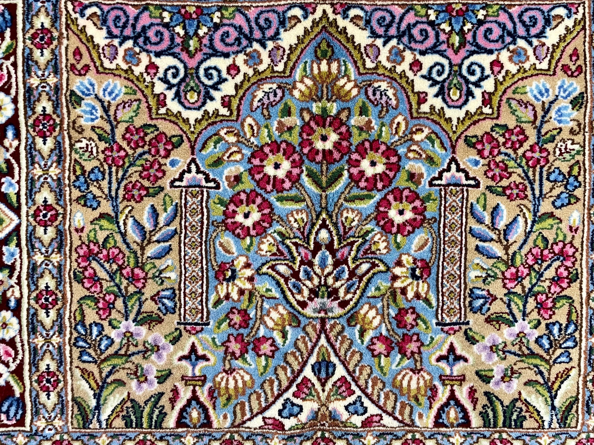 ケルマンの絨毯は、「Hezar」=千、「Gol」=花、「千の花の絨毯」と言われ、まるで色とりどりの美しい「千の花」が散りばめられたようなデザインが多く織られているのが特徴です。