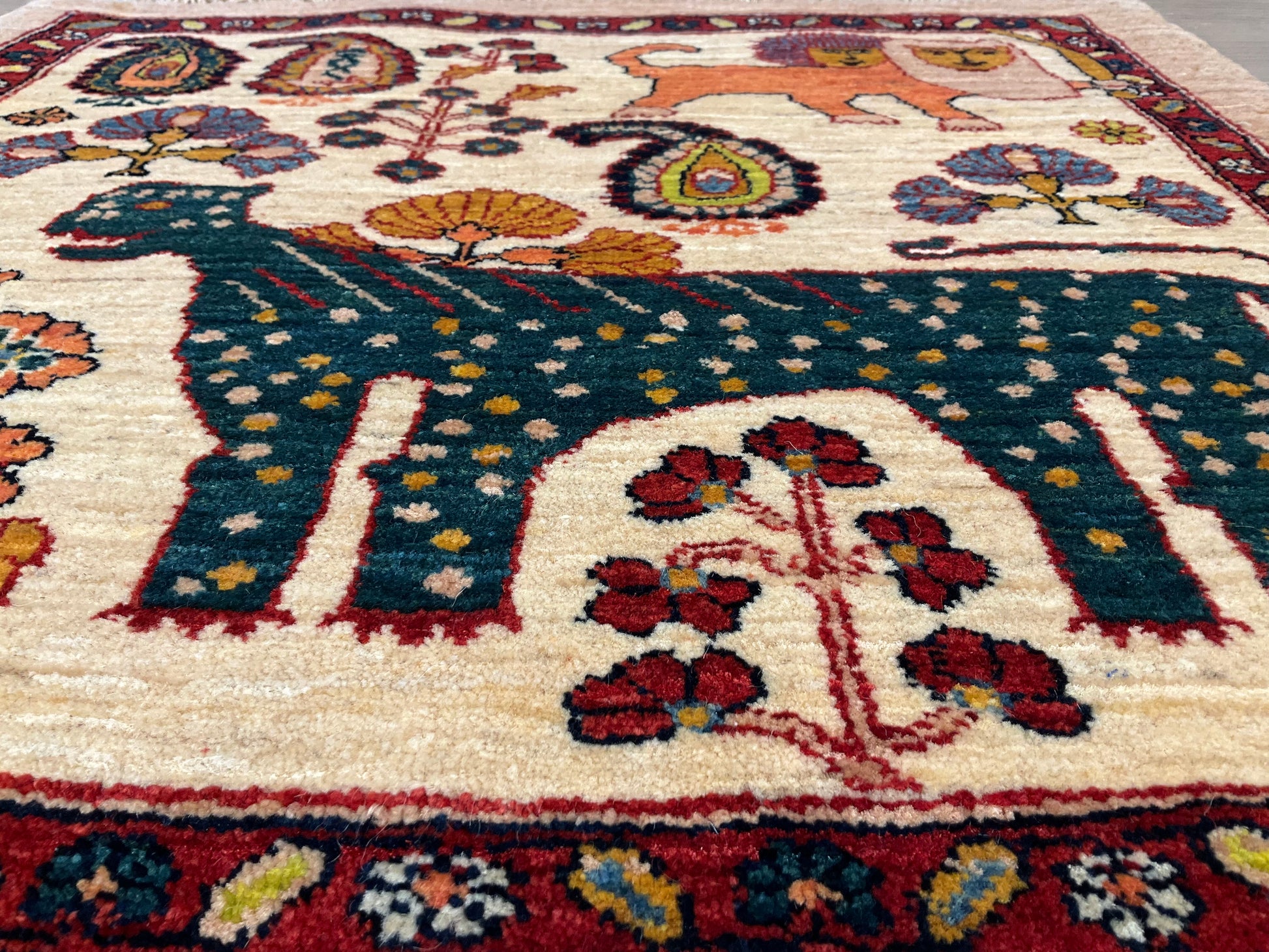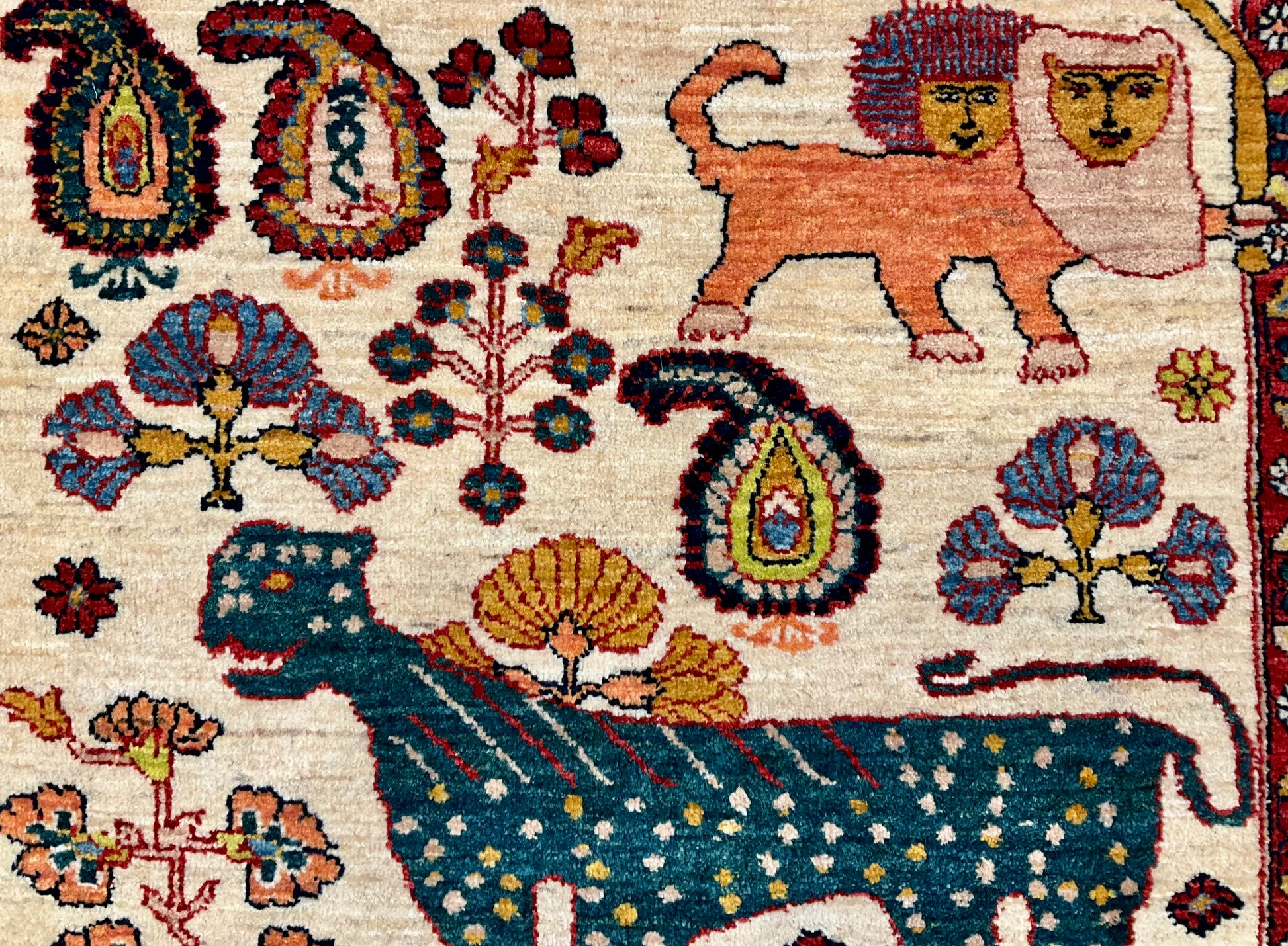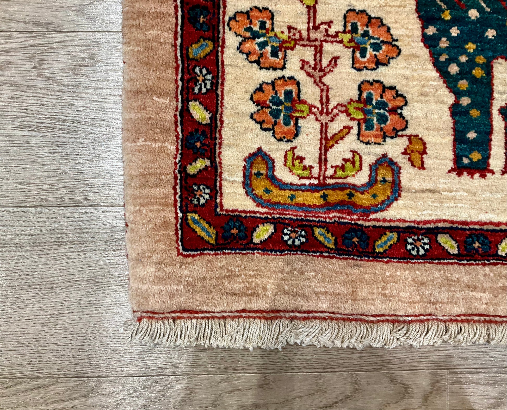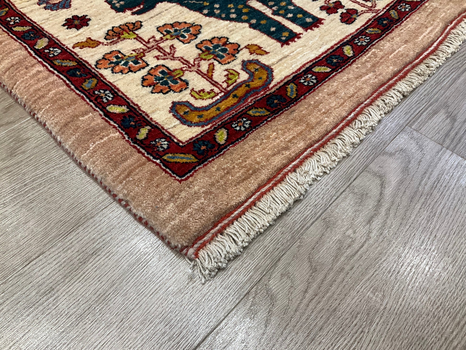 カシュガイ絨毯の魅力は伝統的で色使いがはっきりしていて力強く、素朴な温かみがあります。幾何学模様が中心で多彩な文様・動物・花などの多種多様なデザインが特徴的です。