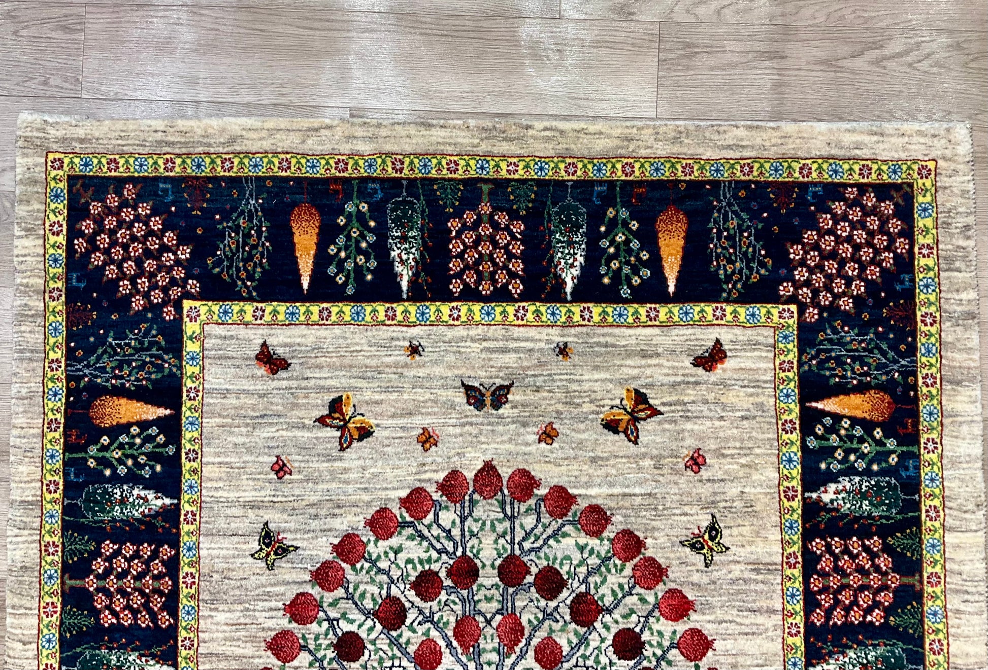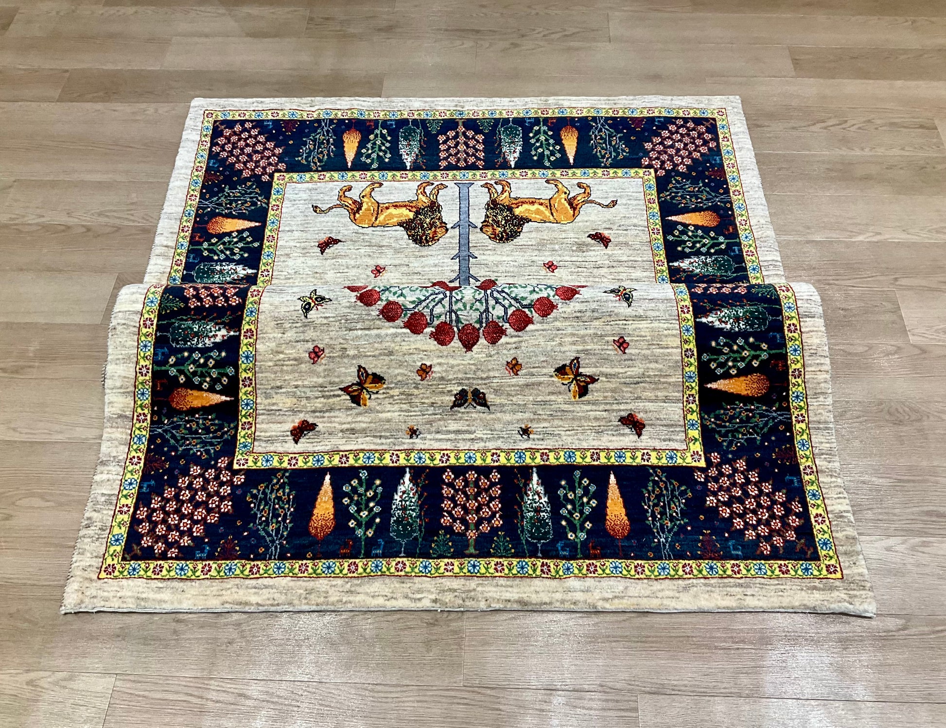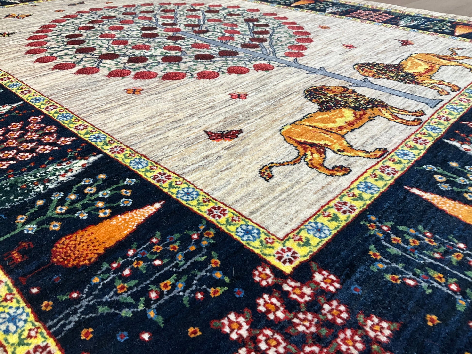 ギャッベ(Gabbeh)は、ペルシャ語で”目が粗い”、”ざっくり”したという意味を持つ手織り絨毯です。イラン南西部・シラーズを中心に、カシュガイ族やルリ族といった遊牧民によって織られています。