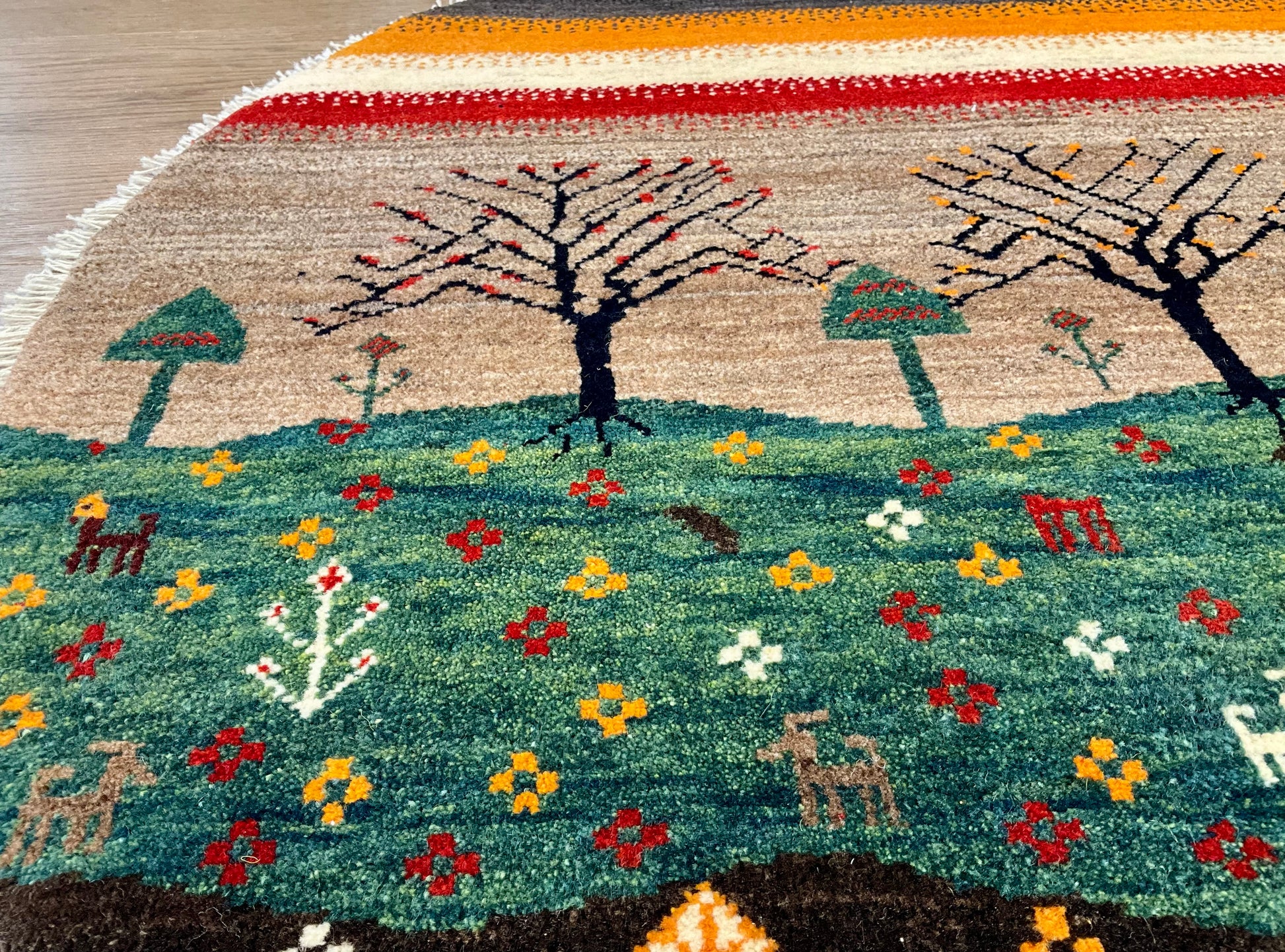 その中で、アマレバフト(Amare)は、普通のギャッベより目が細かく、カシュクリ(Kashkuli)より目が粗い、ミドルランクのギャッベです。