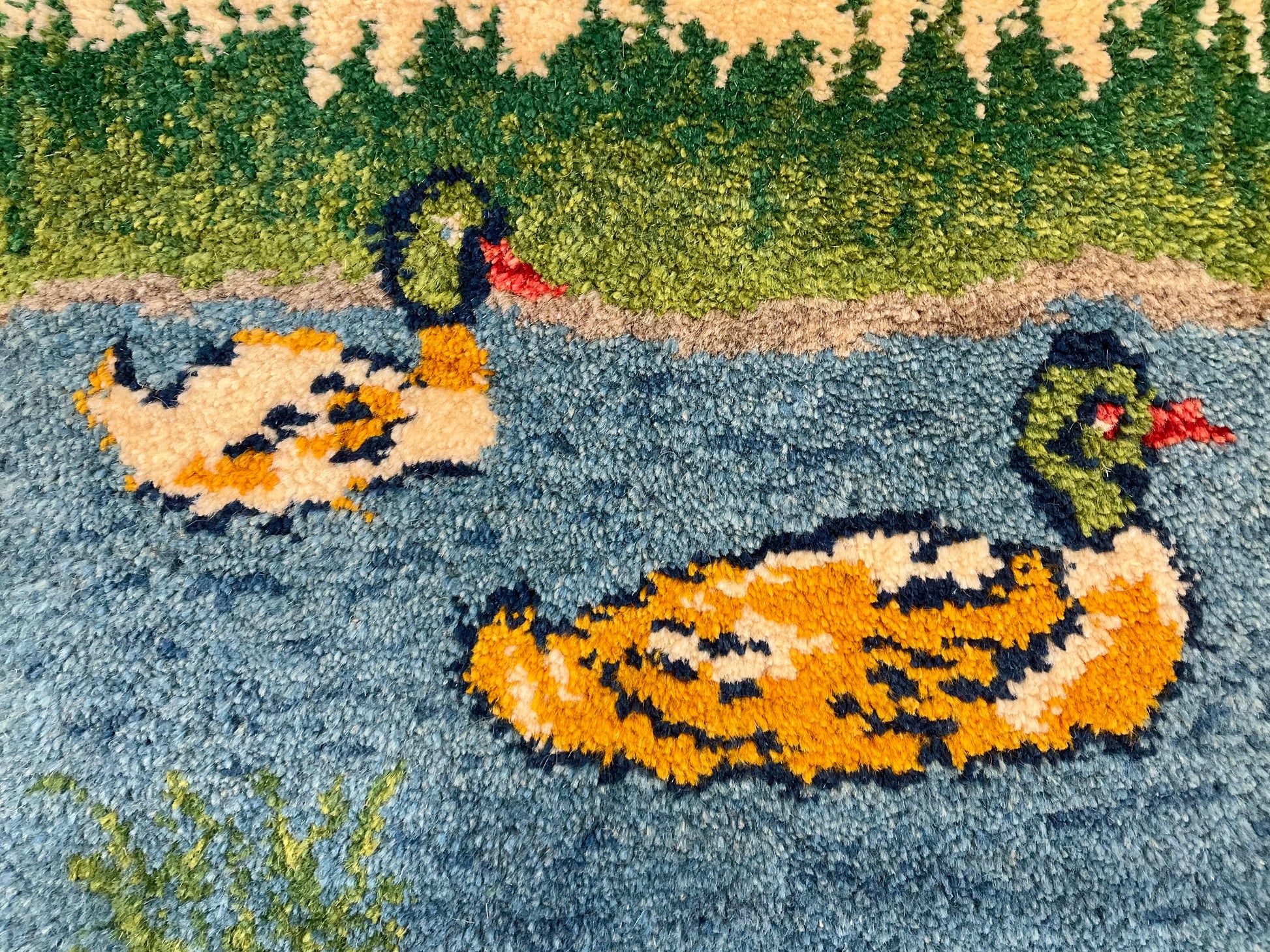「羊・ヤギ」=家庭円満、「ライオン」=王者・力、「らくだ」=成功、「生命の木」=長寿・健康、「ざくろ」=子孫繫栄などの様々な文様が織り込まれることが多く、それぞれの文様に色々な願いが込められています。