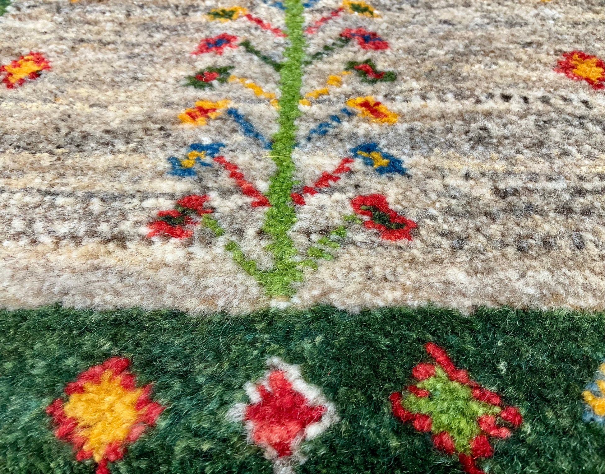 ギャッベ(Gabbeh)は、ペルシャ語で”目が粗い”、”ざっくり”した絨毯を意味します。