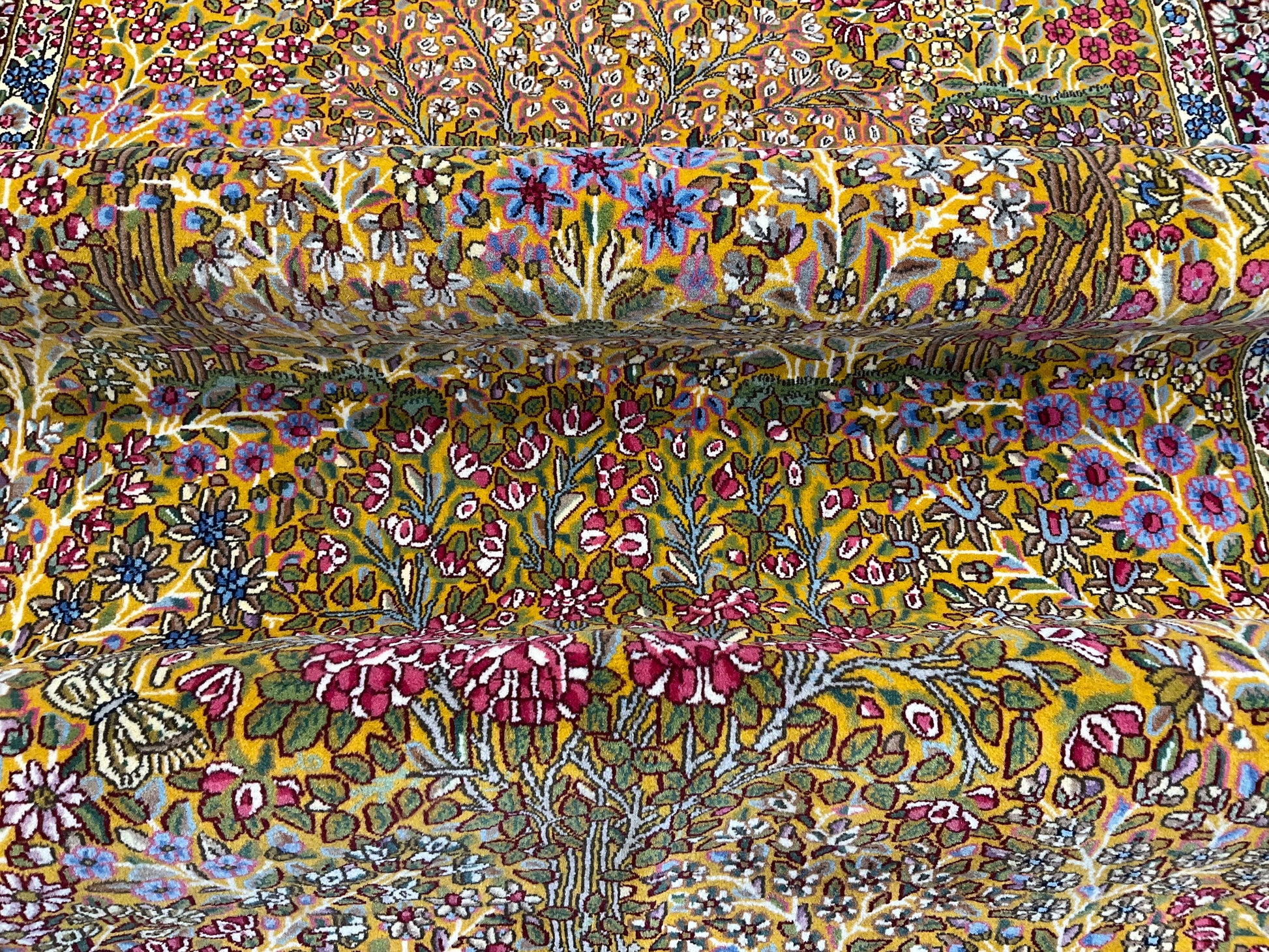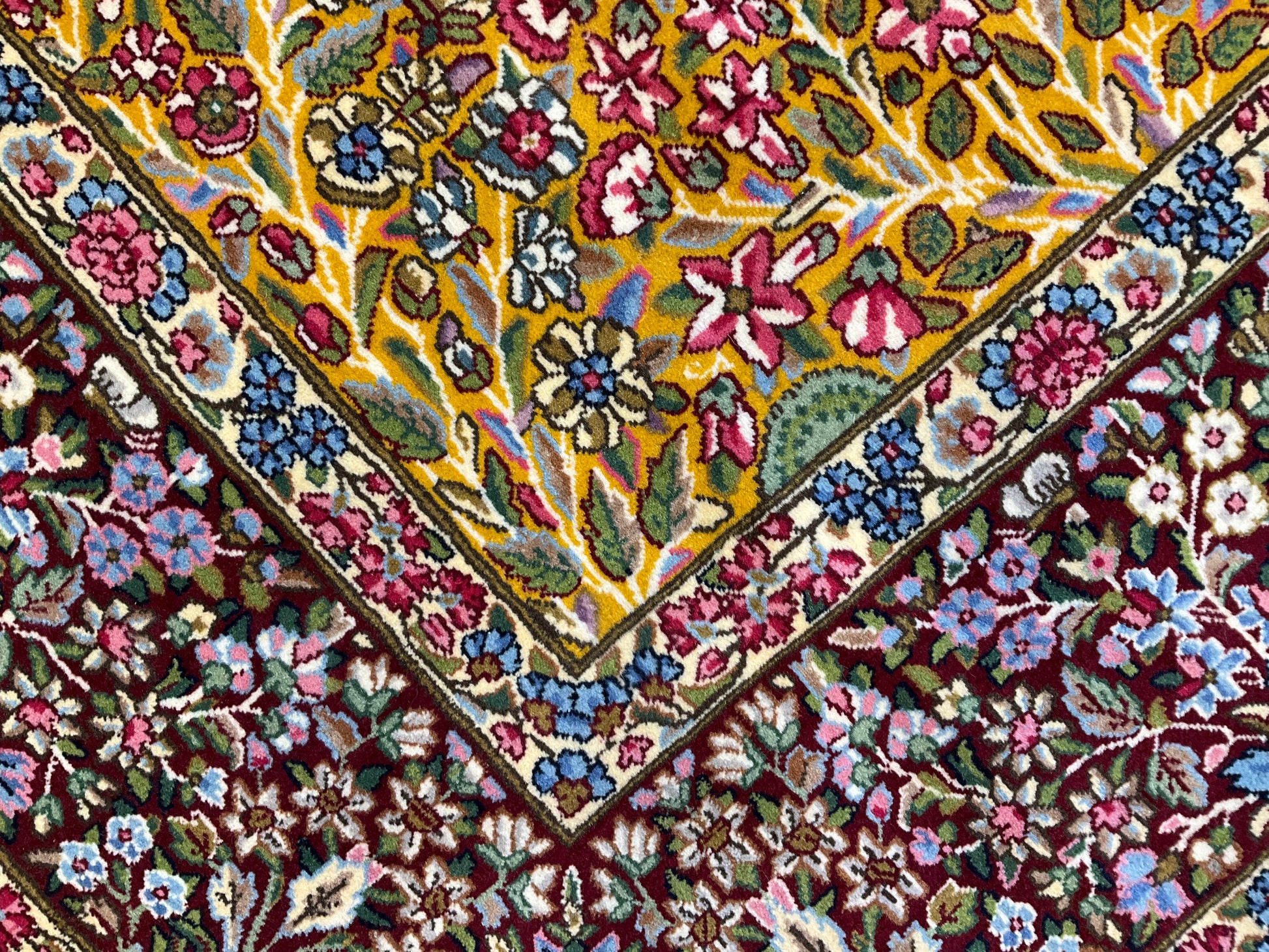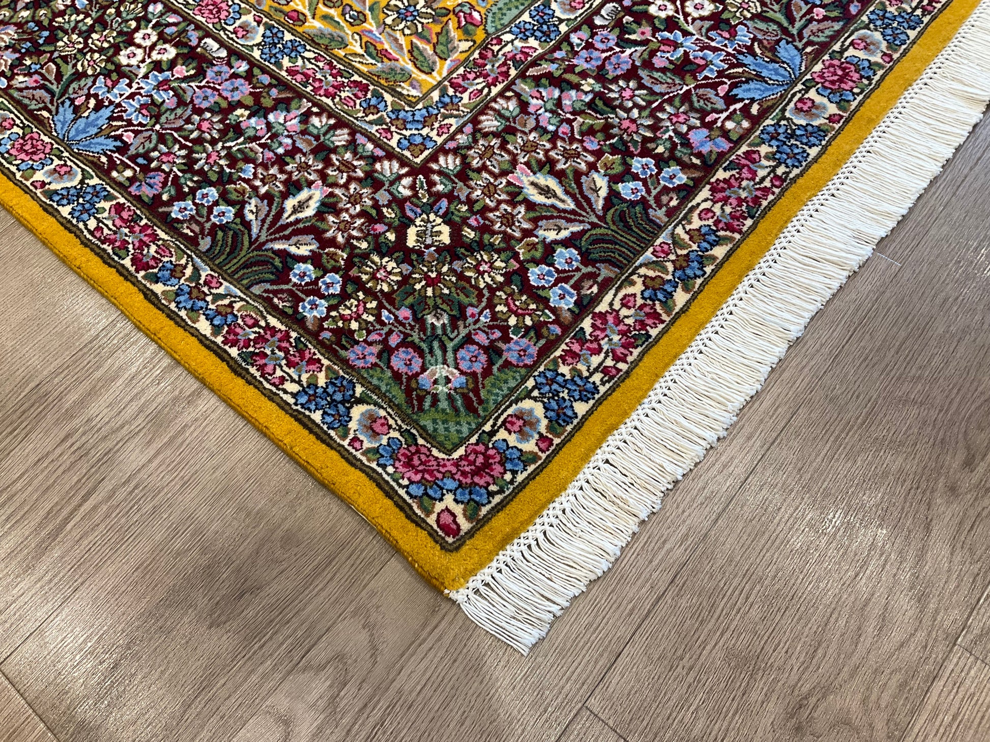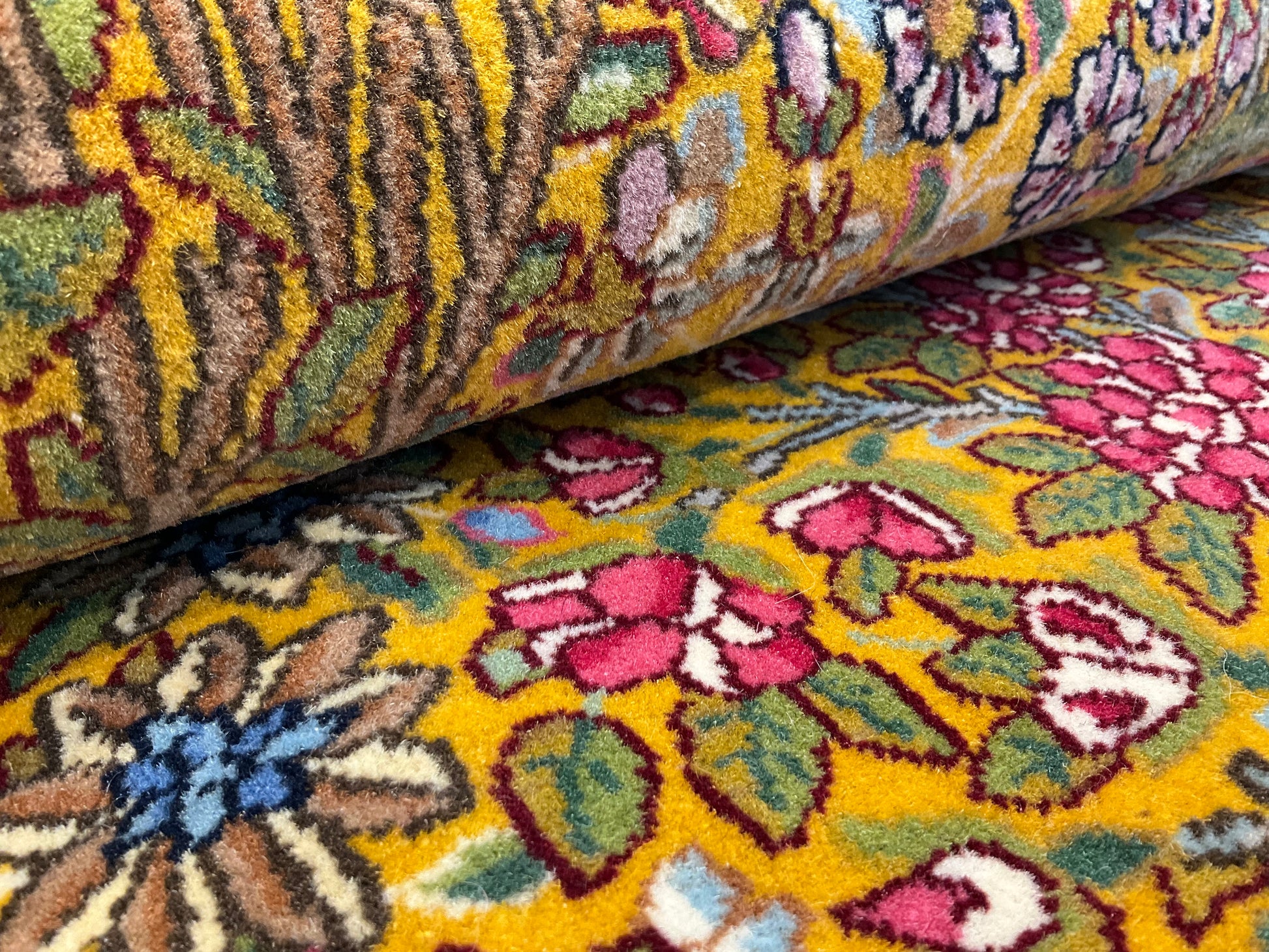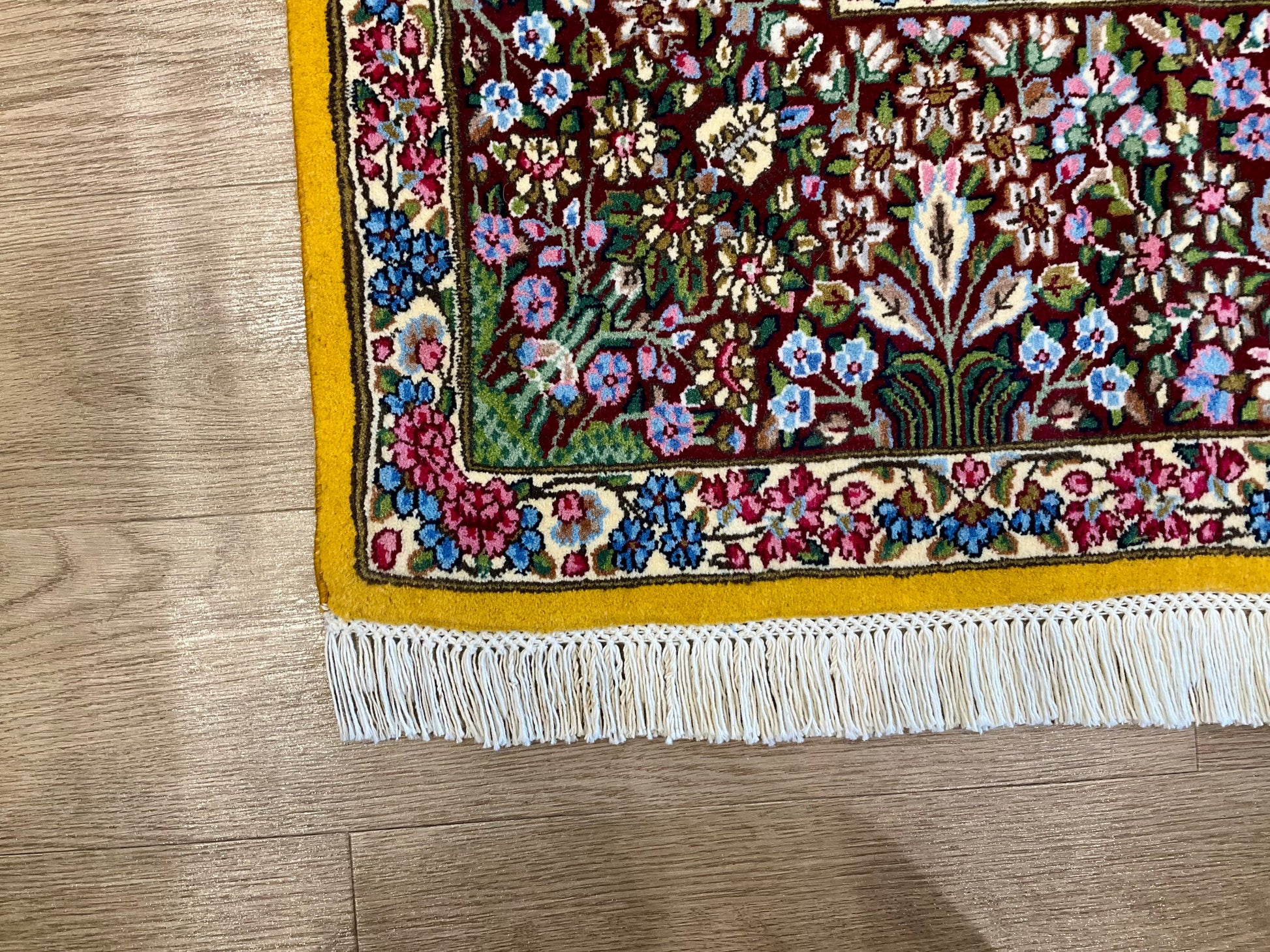 ケルマンの絨毯は、「Hezar」=千、「Gol」=花、「千の花の絨毯」と言われ、まるで色とりどりの美しい「千の花」が散りばめられたようなデザインが多く織られているのが特徴です。