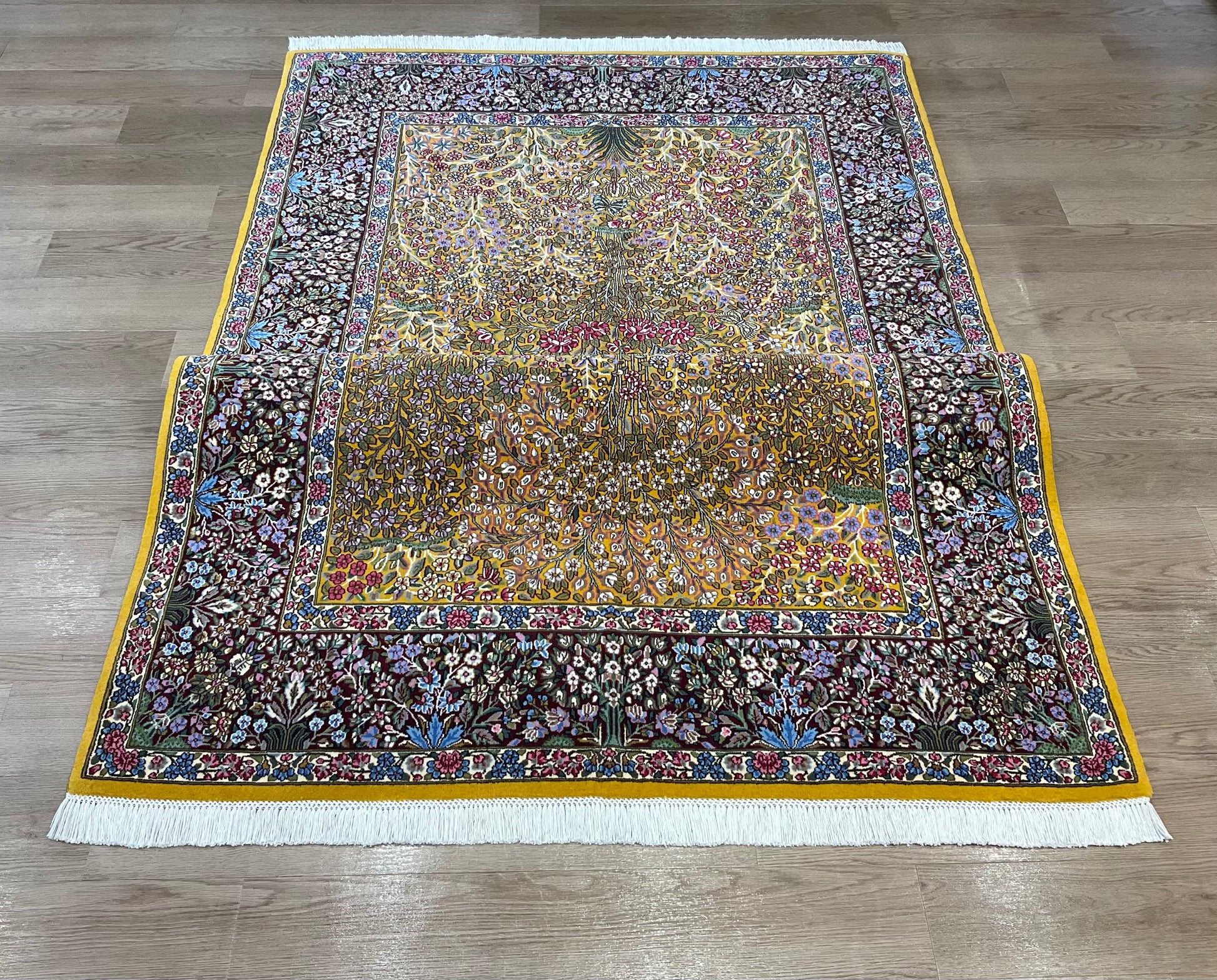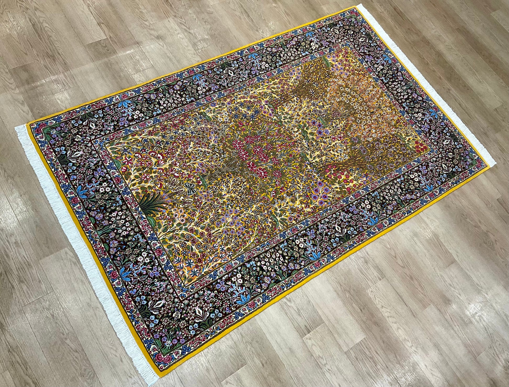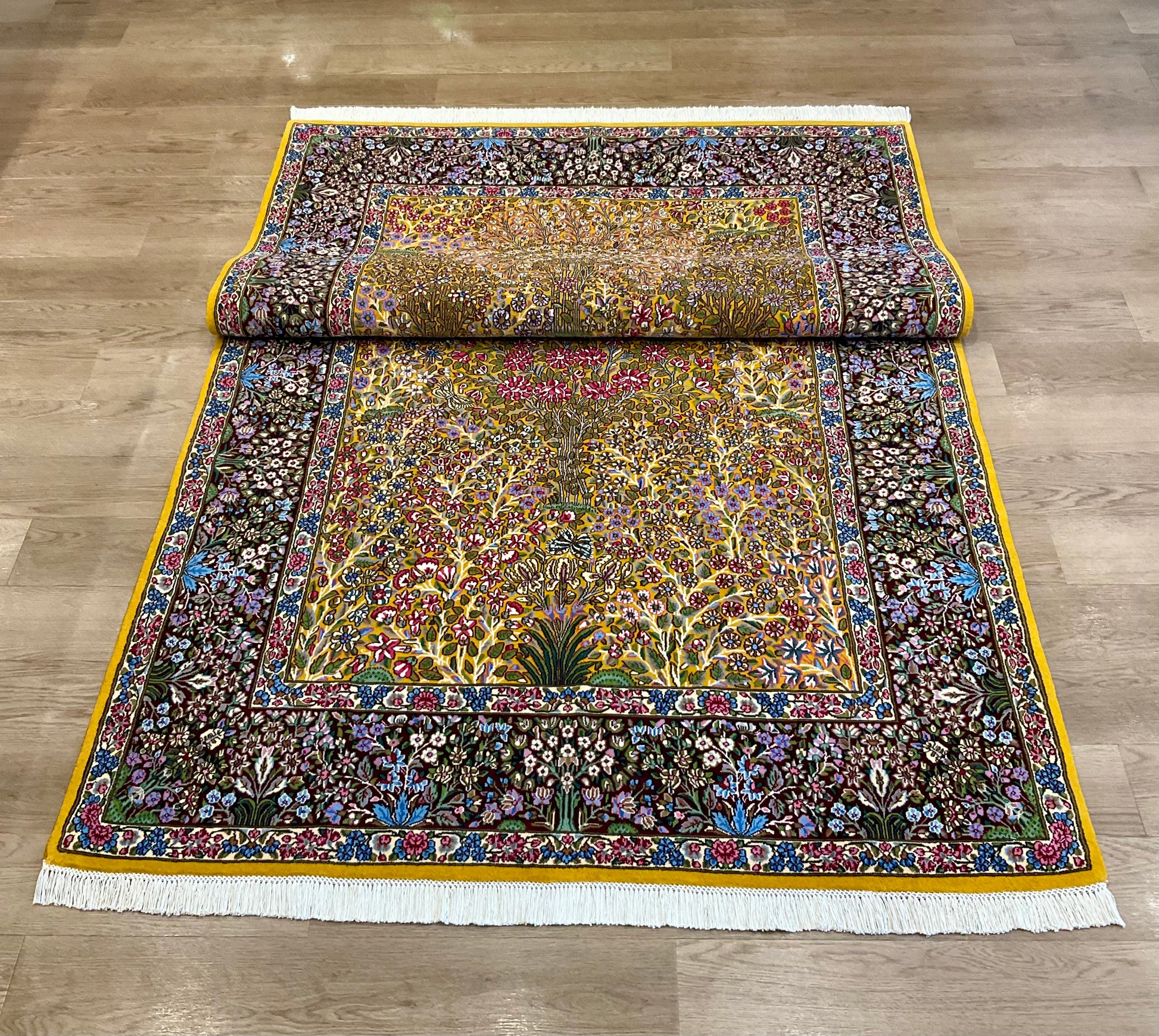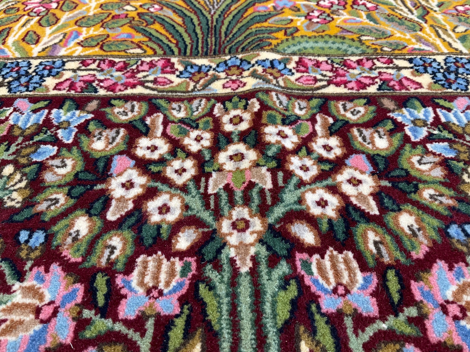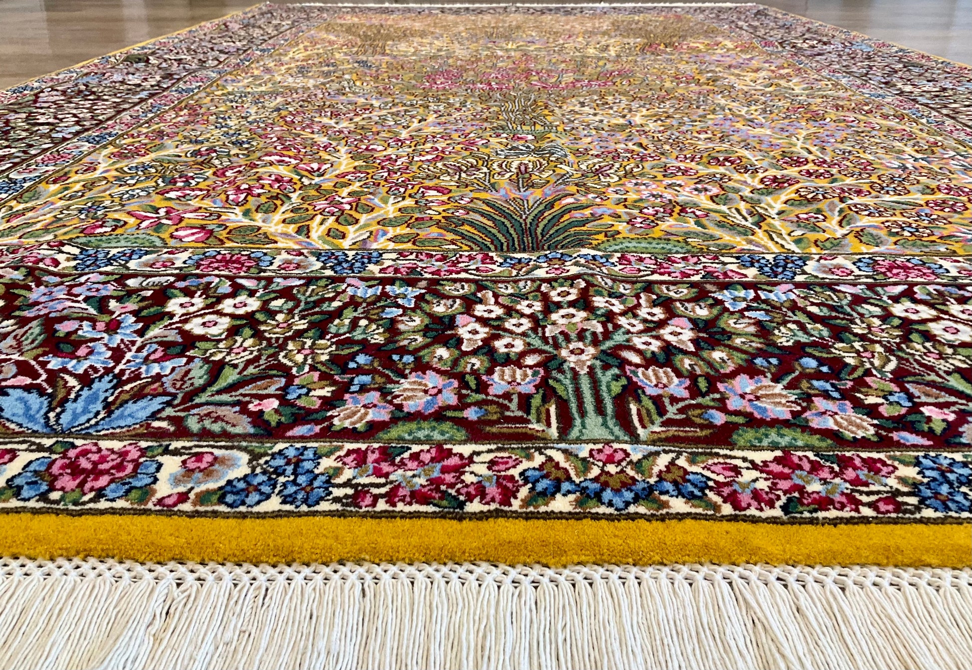 ケルマンの絨毯は、「Hezar」=千、「Gol」=花、「千の花の絨毯」と言われ、まるで色とりどりの美しい「千の花」が散りばめられたようなデザインが多く織られているのが特徴です。