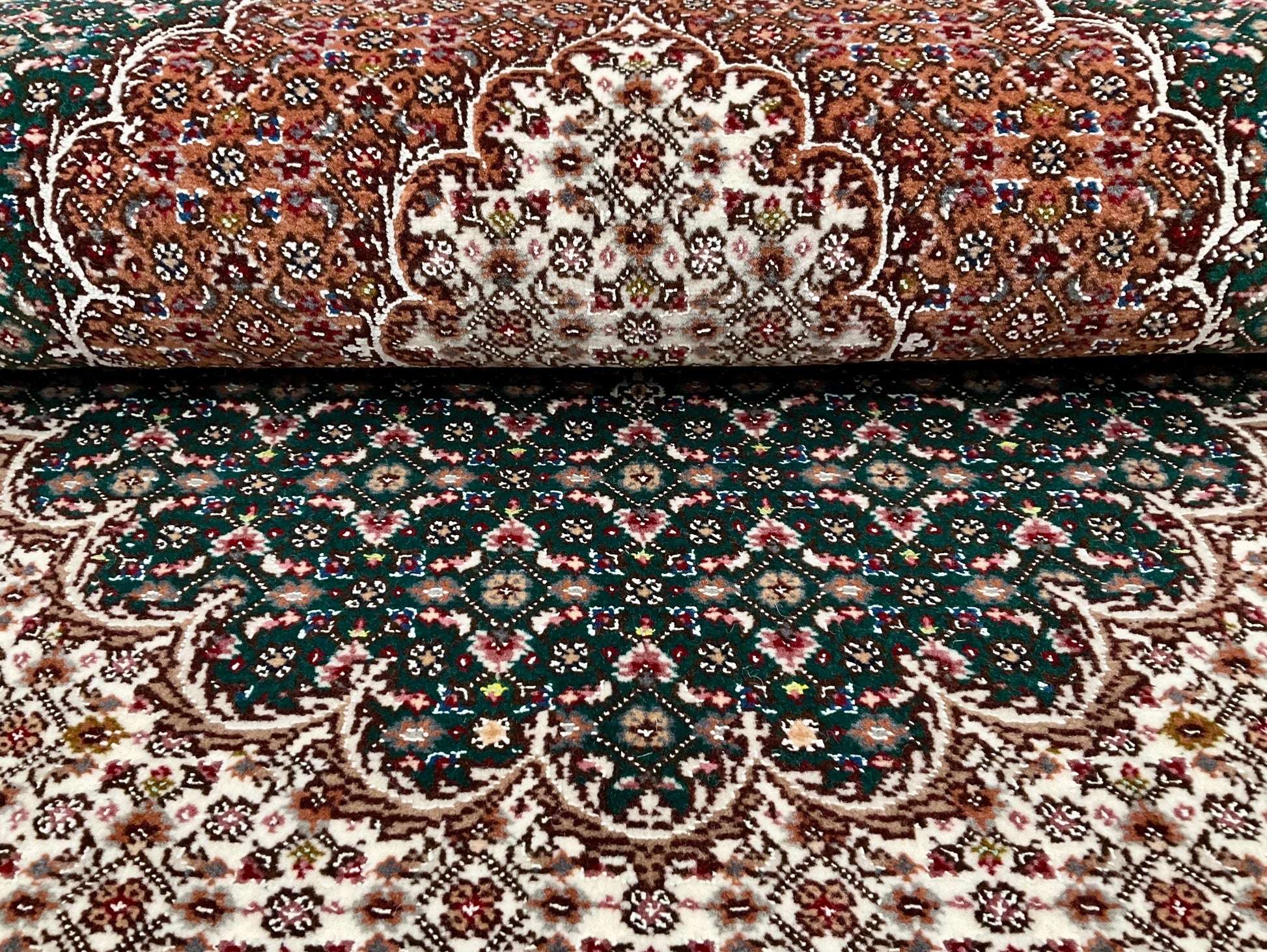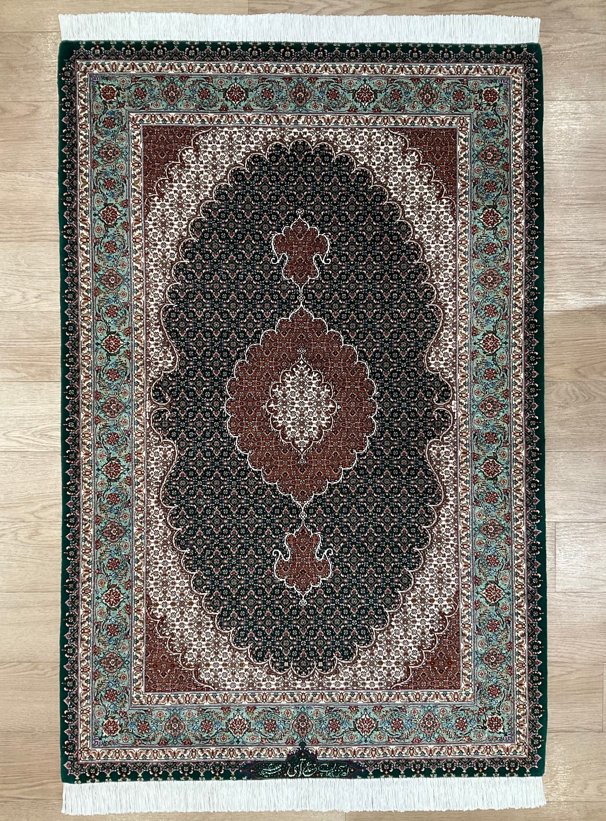 ペルシャ絨毯五大産地のひとつで、緻密な織り、荘厳なメダリオンデザイン、落ち着いた色合いが特徴の、格式高い伝統的なペルシャ絨毯です。タブリーズのデザインはベナム柄(王朝風)やマヒ柄(小魚文様)が代表的です。織密度が緻密で耐久性にとても優れています。