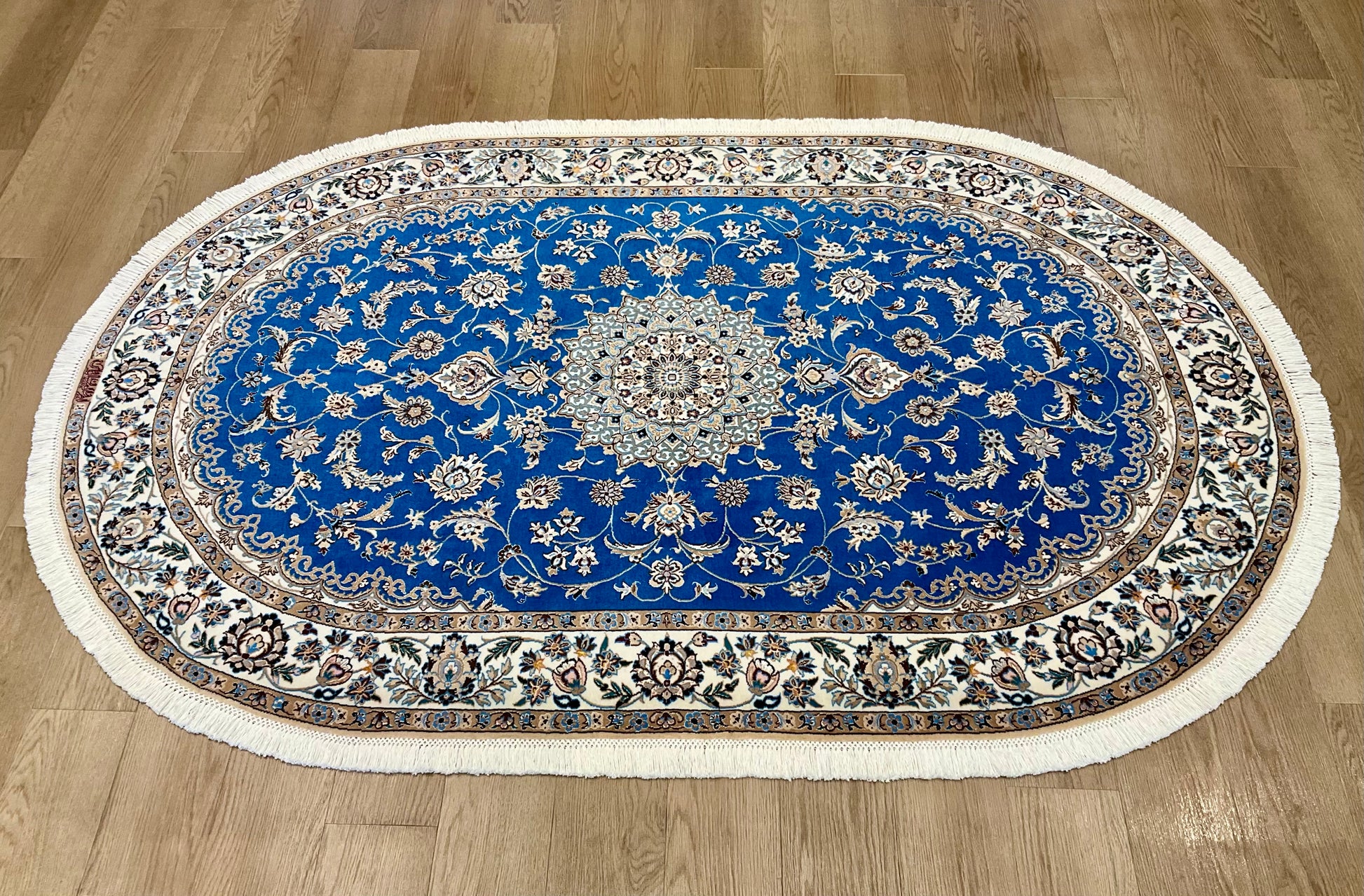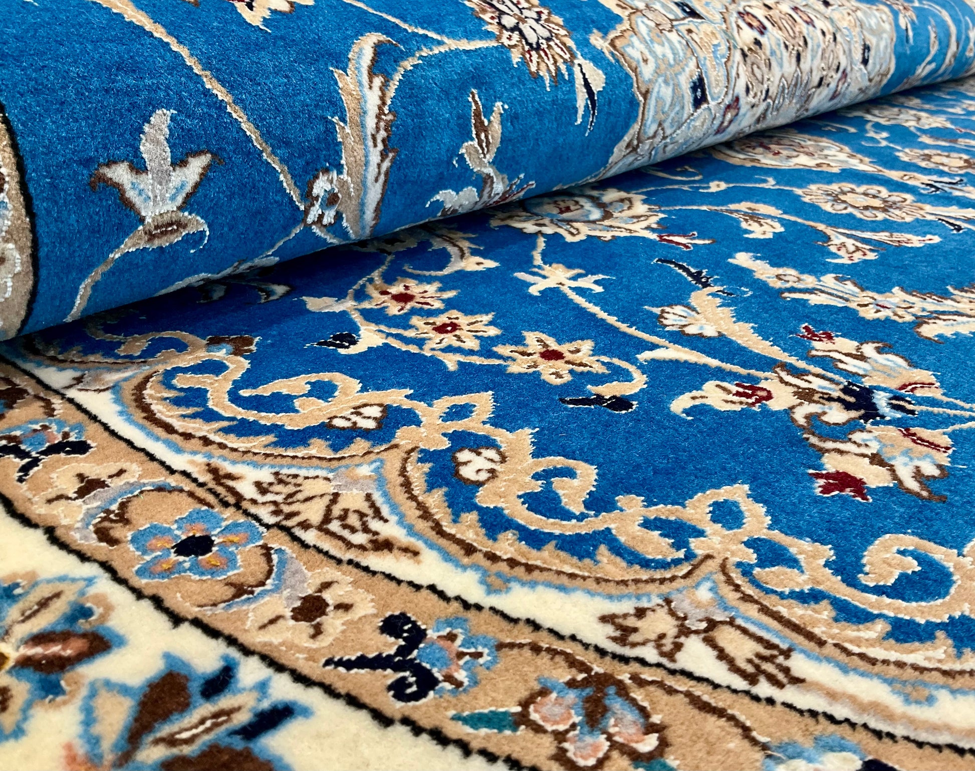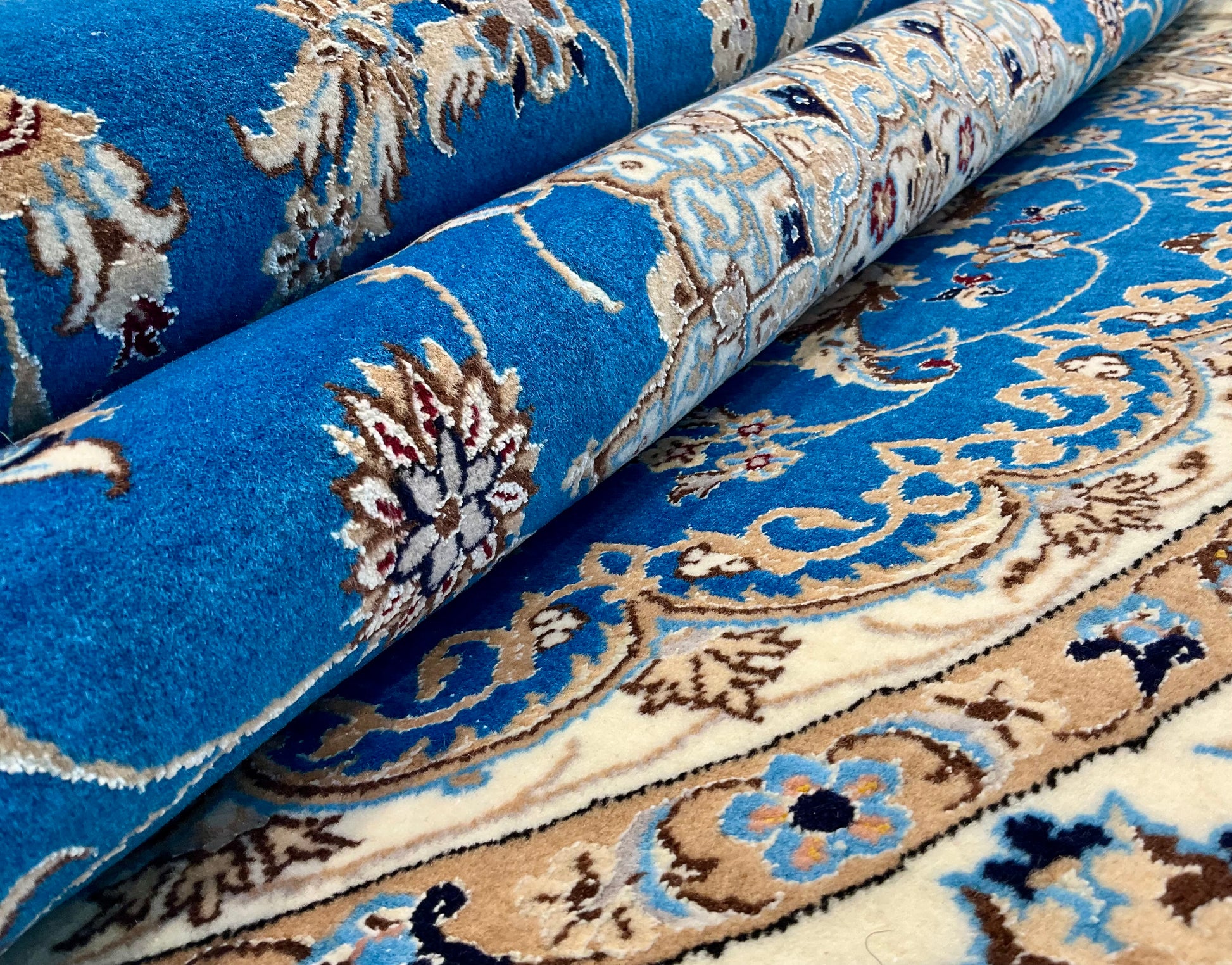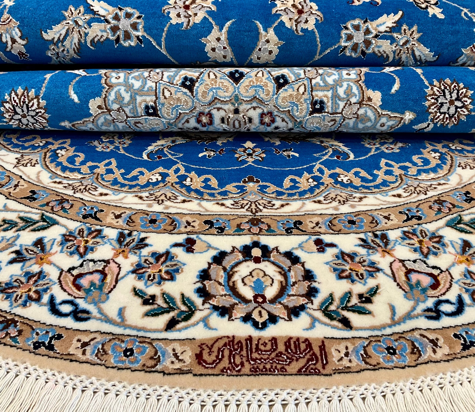 ナイン産絨毯の品質は、ペルシャ語の「La(ラー)」=“層”によって分類され、4La(チャハラ)・6La(シシラ)・9La(ノーラ)などの等級があります。数字が小さいほど織密度が高く、品質も上がります。