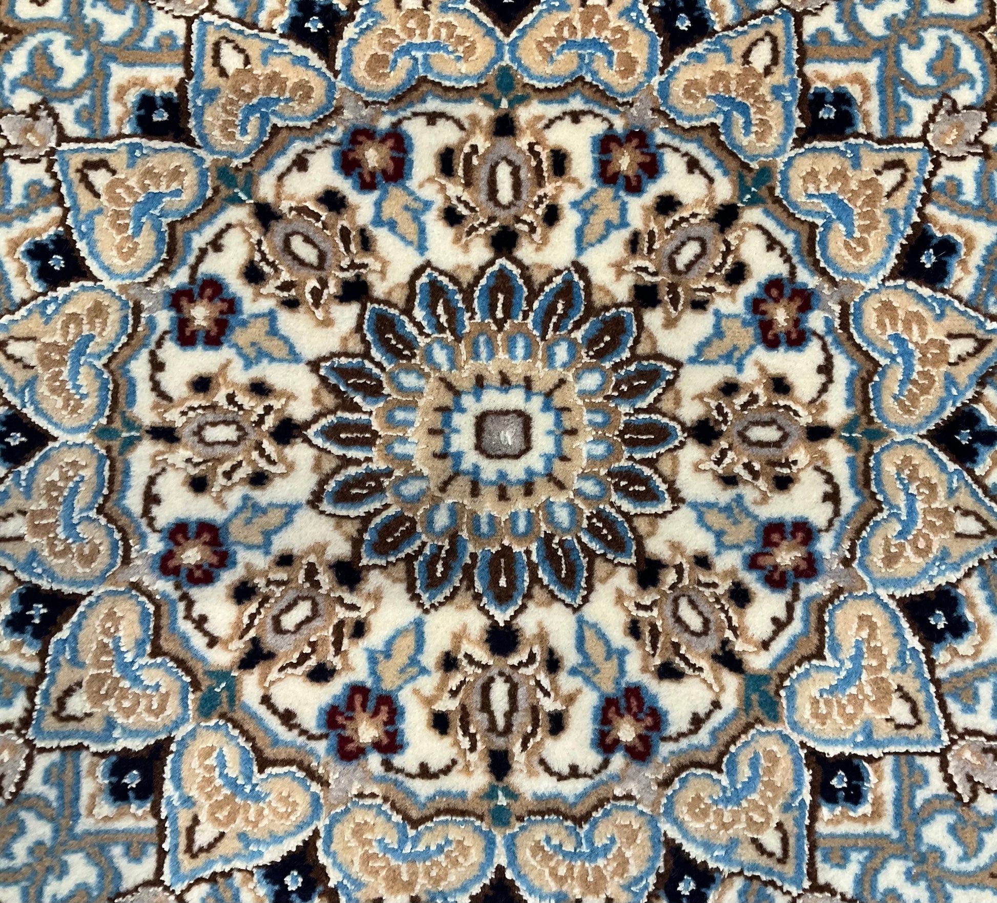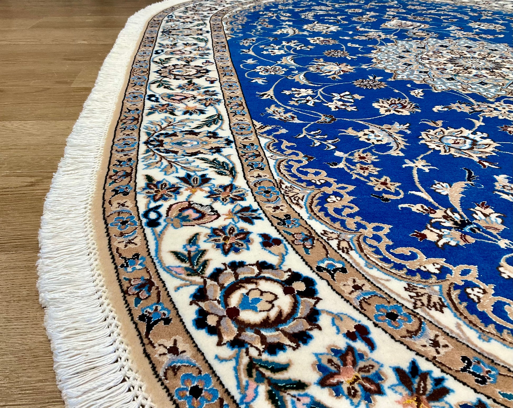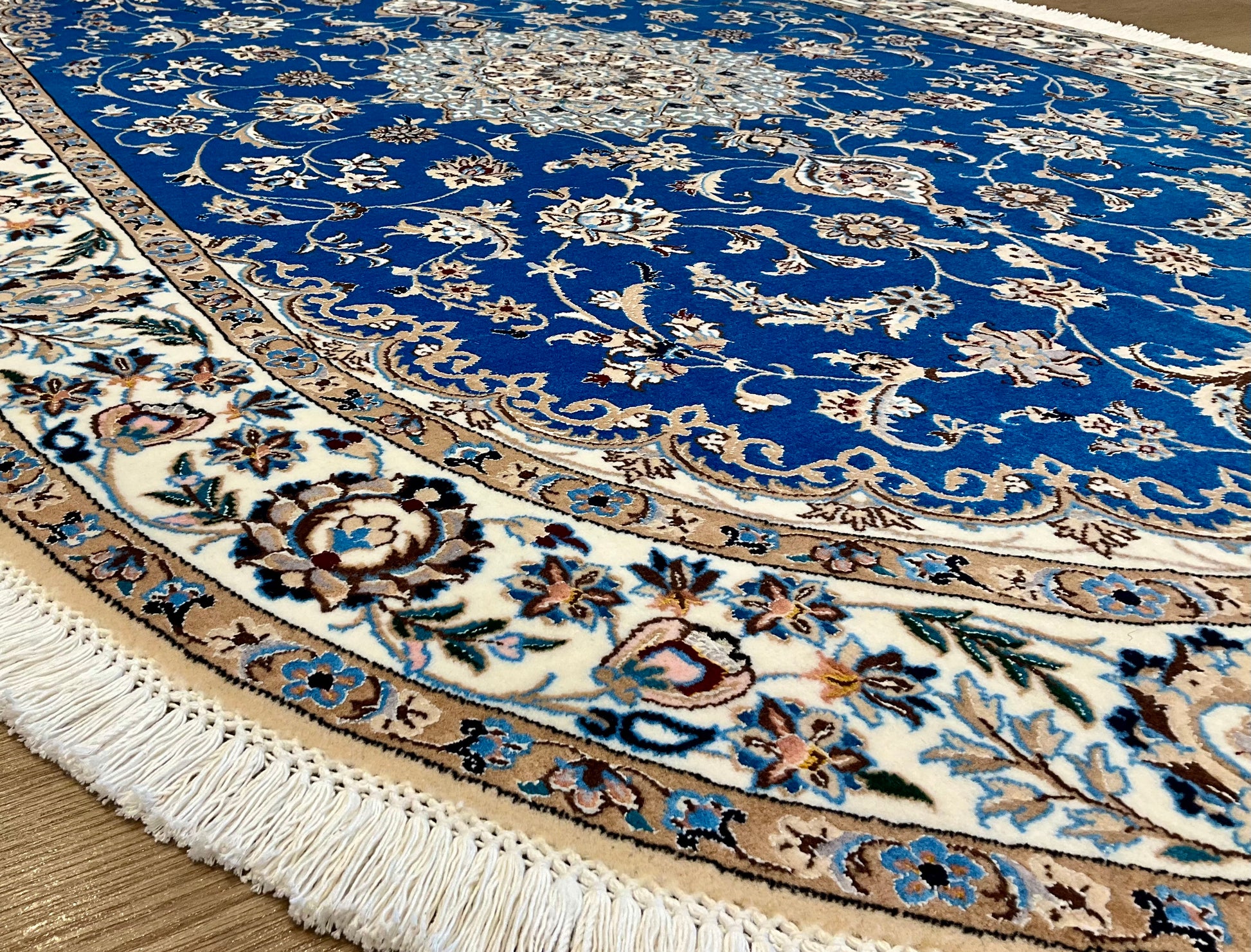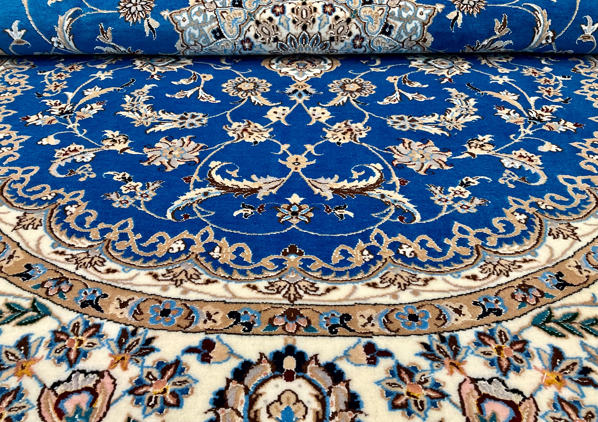 ナイン産絨毯の品質は、ペルシャ語の「La(ラー)」=“層”によって分類され、4La(チャハラ)・6La(シシラ)・9La(ノーラ)などの等級があります。数字が小さいほど織密度が高く、品質も上がります。