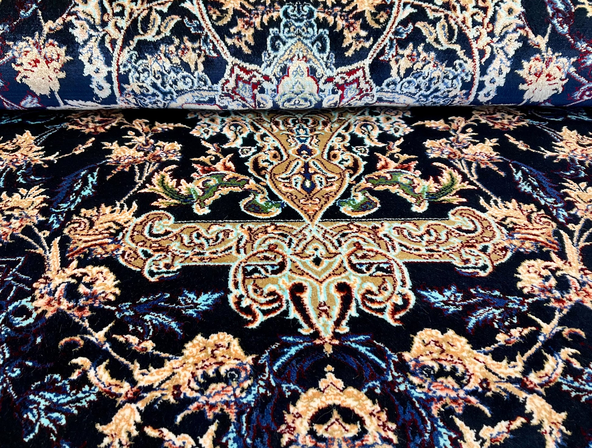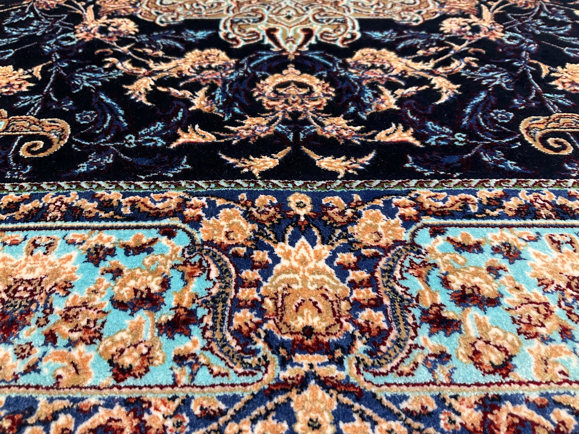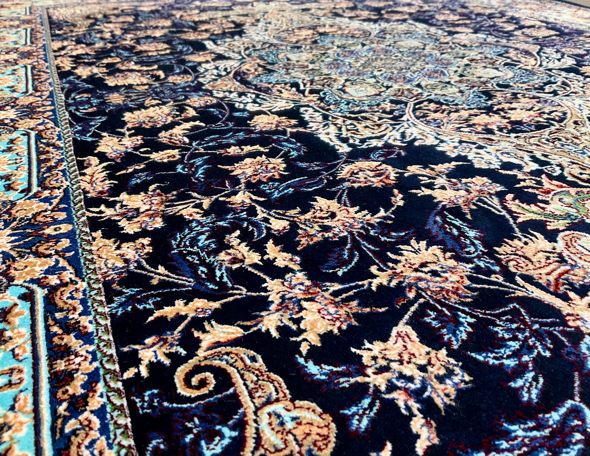 ペルシャンシルクは、ペルシャ絨毯の五大産地のひとつであるカシャーンで制作された機械織りの絨毯です。カシャーンの絨毯職人によってデザイン・プロデュースされています。