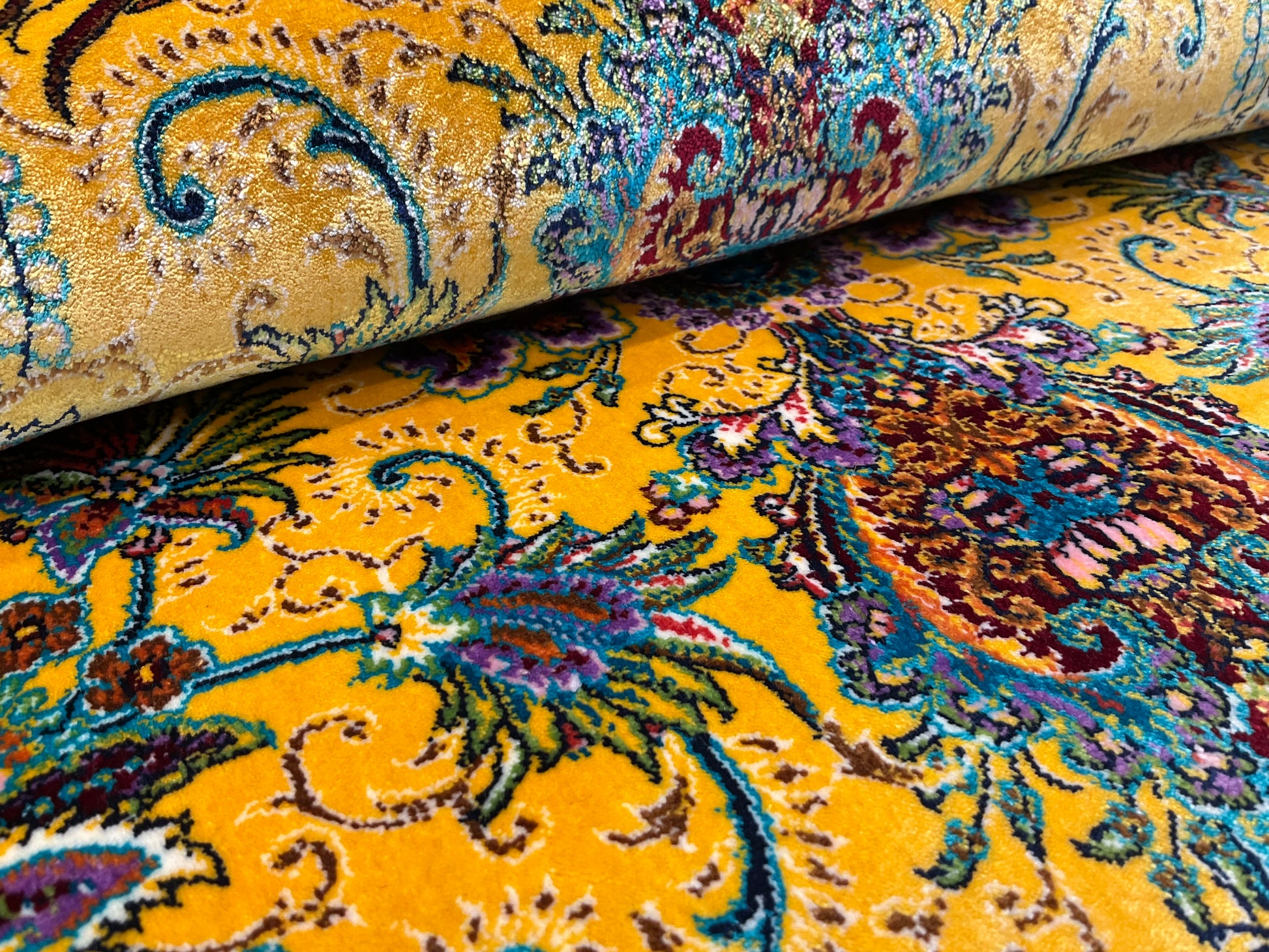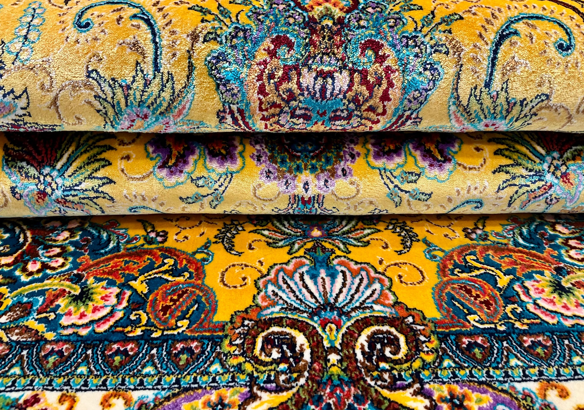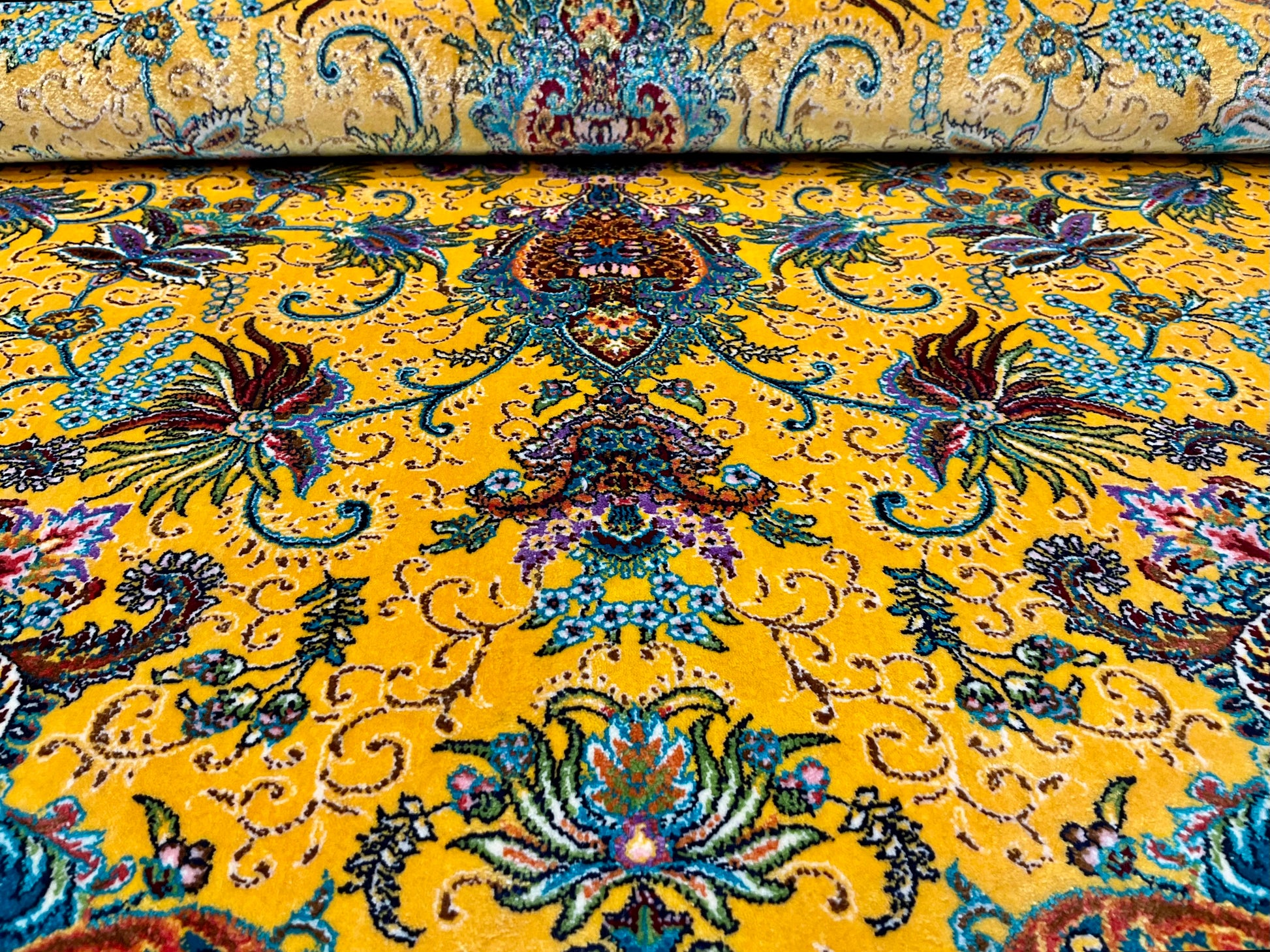 ペルシャンシルクは、ペルシャ絨毯の五大産地のひとつであるカシャーンで制作された機械織りの絨毯です。カシャーンの絨毯職人によってデザイン・プロデュースされています。