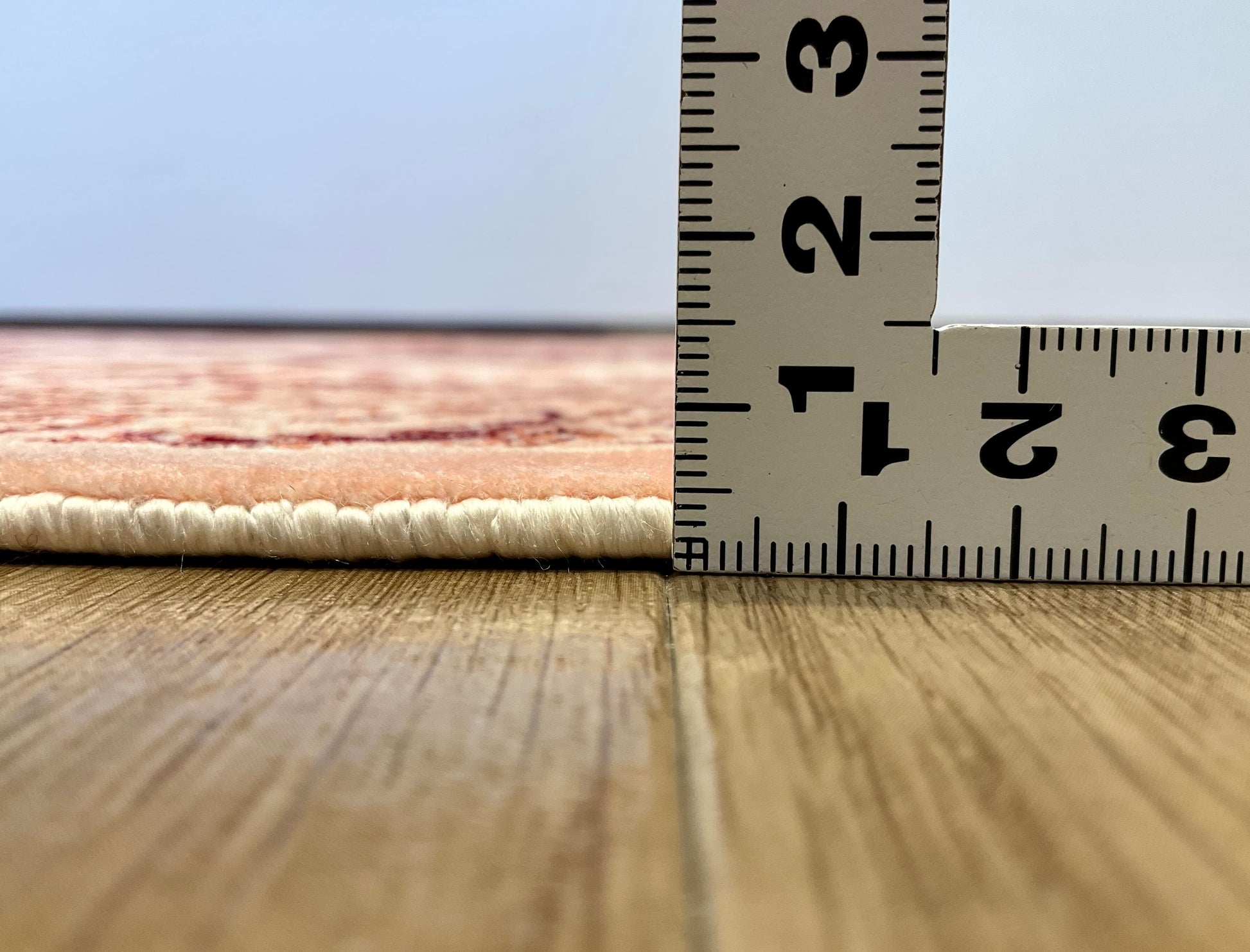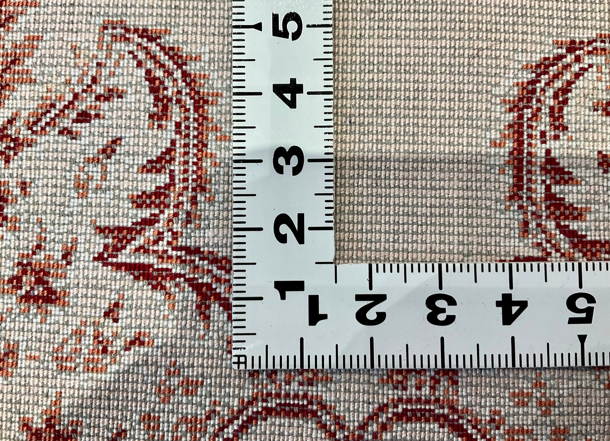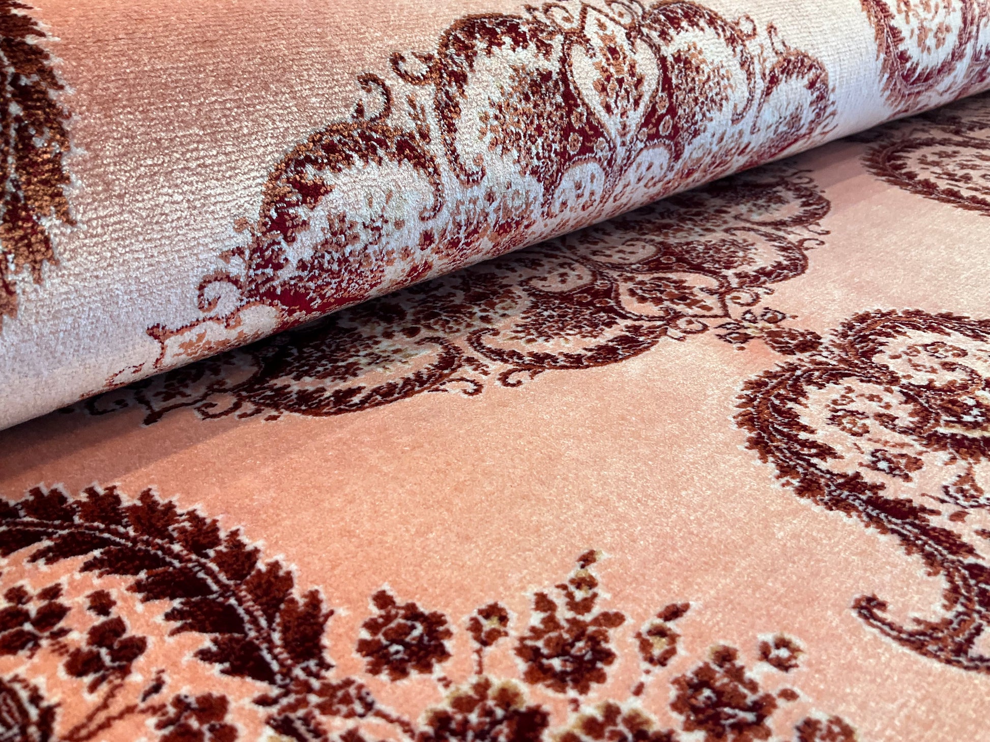 機械織り絨毯の特長として、サイズやノットが均一で精度が高く仕上がる点が挙げられます(フリンジ部分は手作業で仕上げられます)。また、ペルシャ絨毯ならではの美しいデザインや質感は、五大産地のひとつカシャーンで制作されているため、手織り絨毯に劣らない美しさを誇ります。