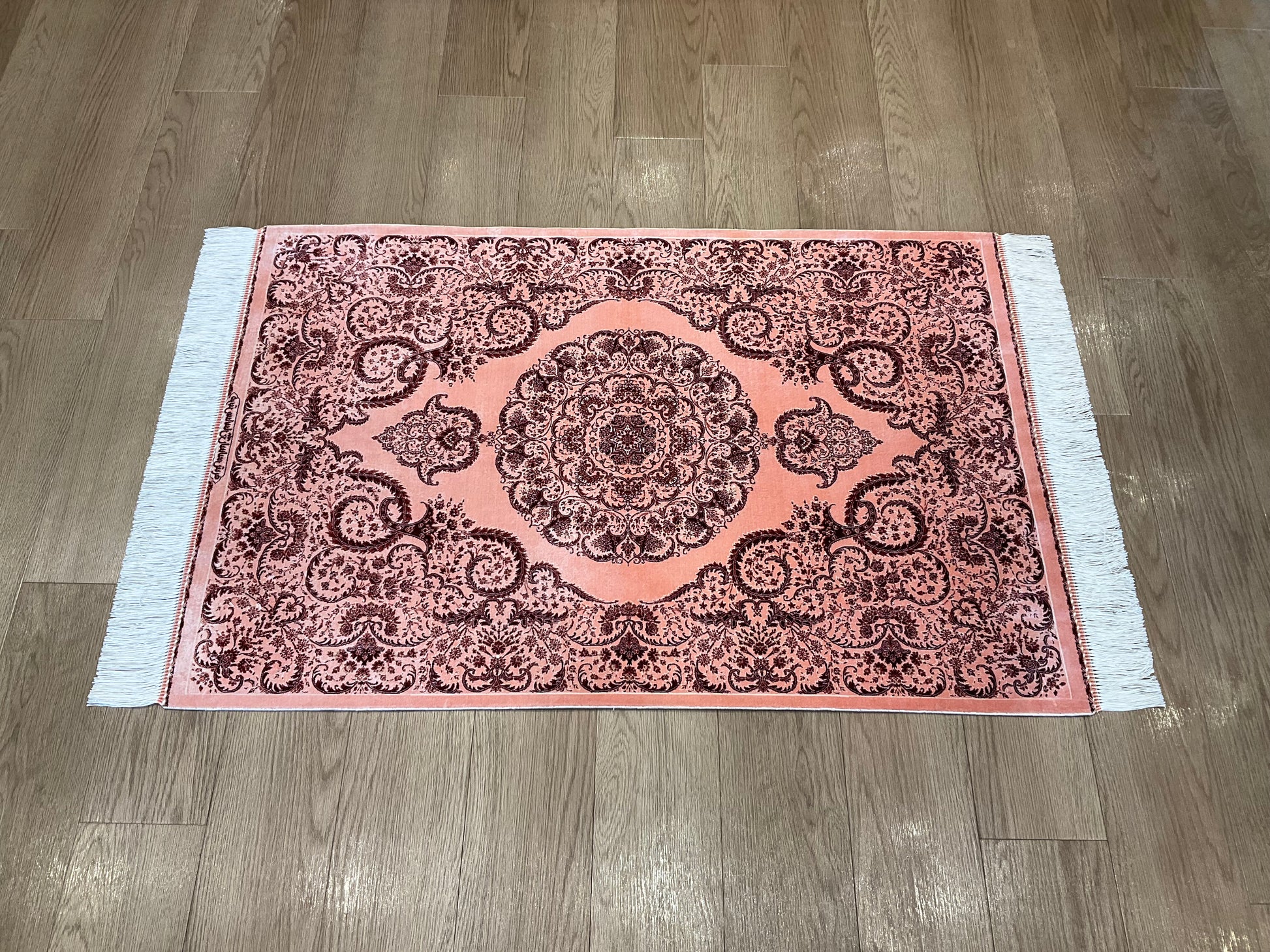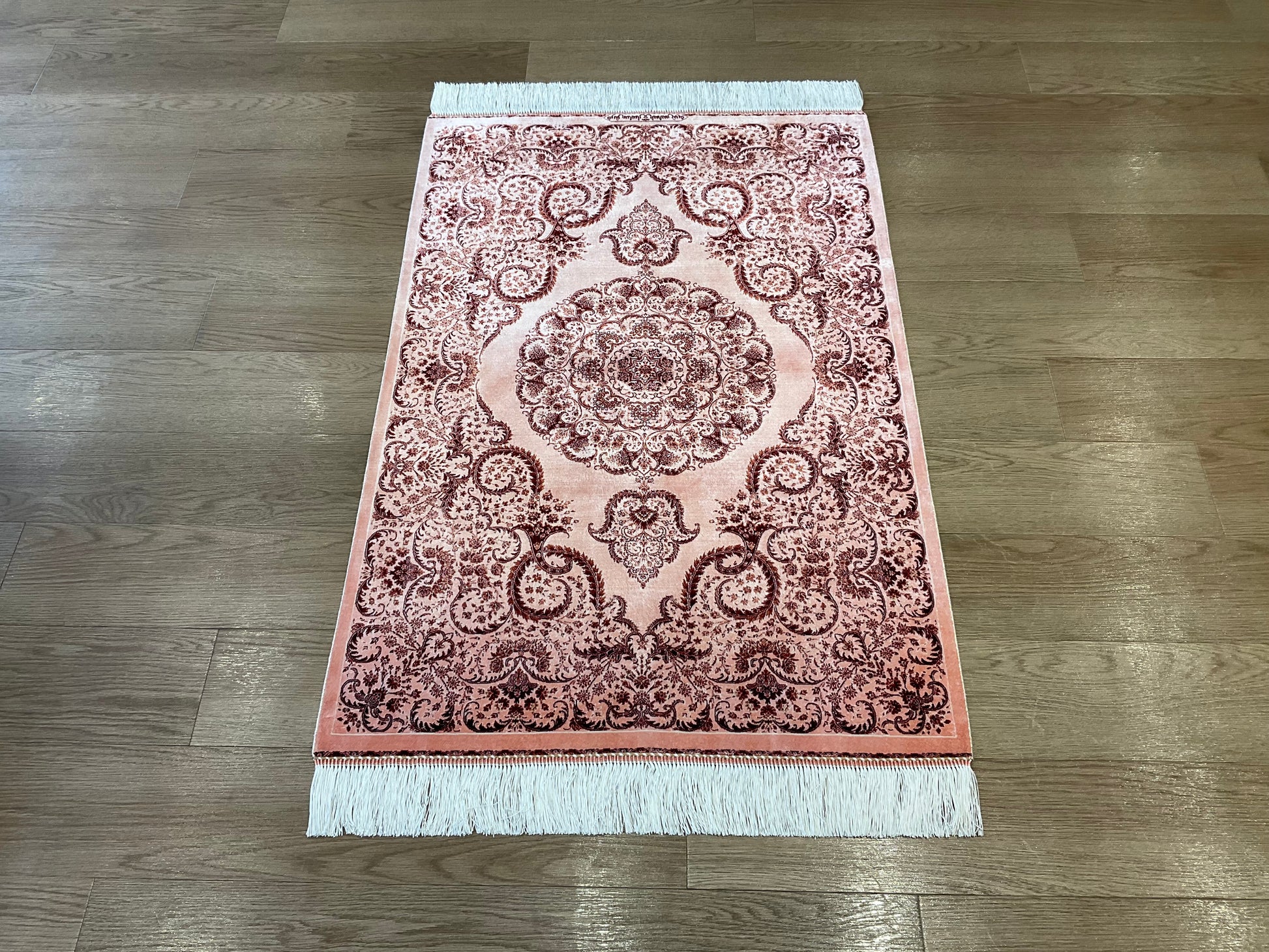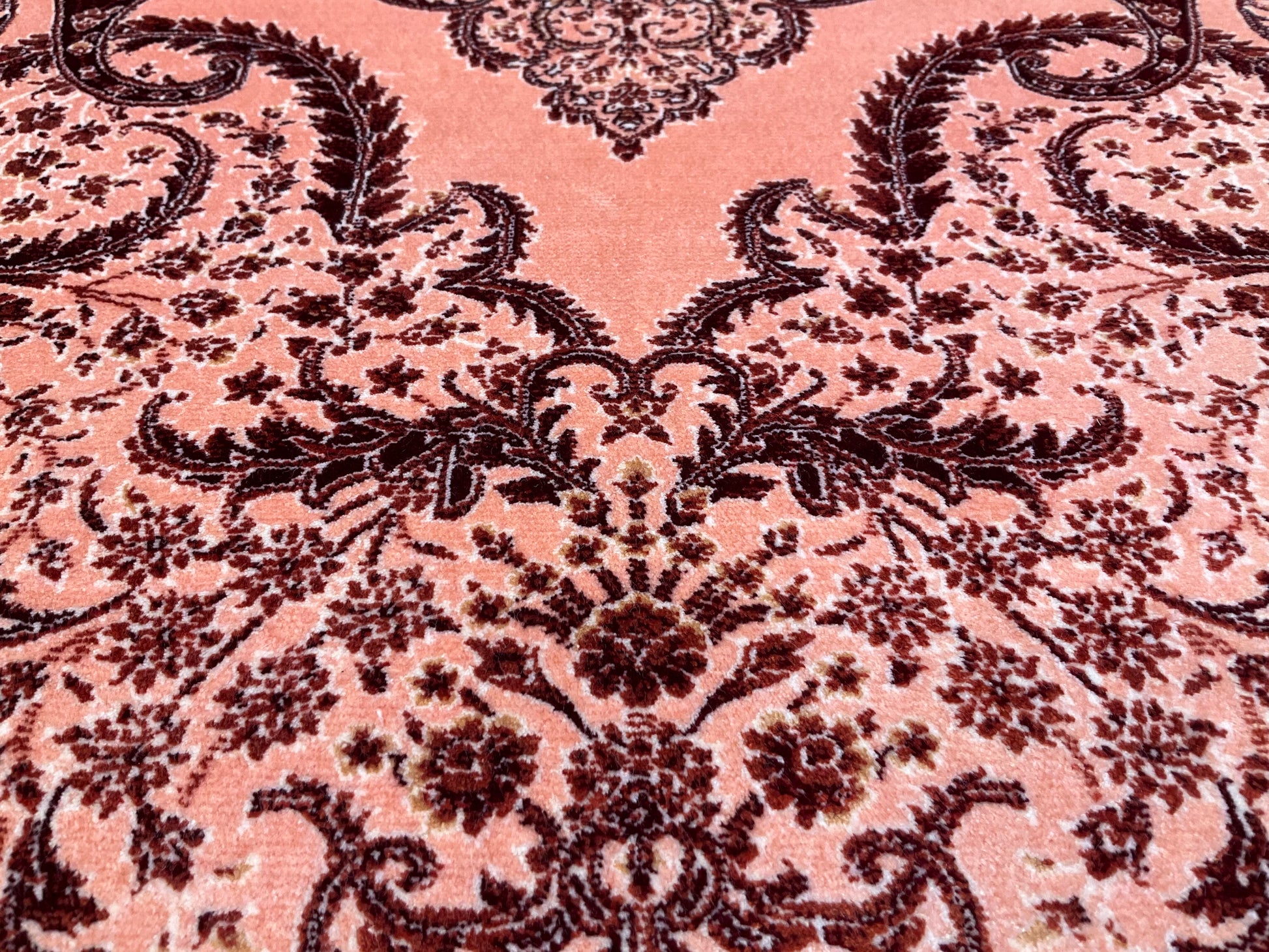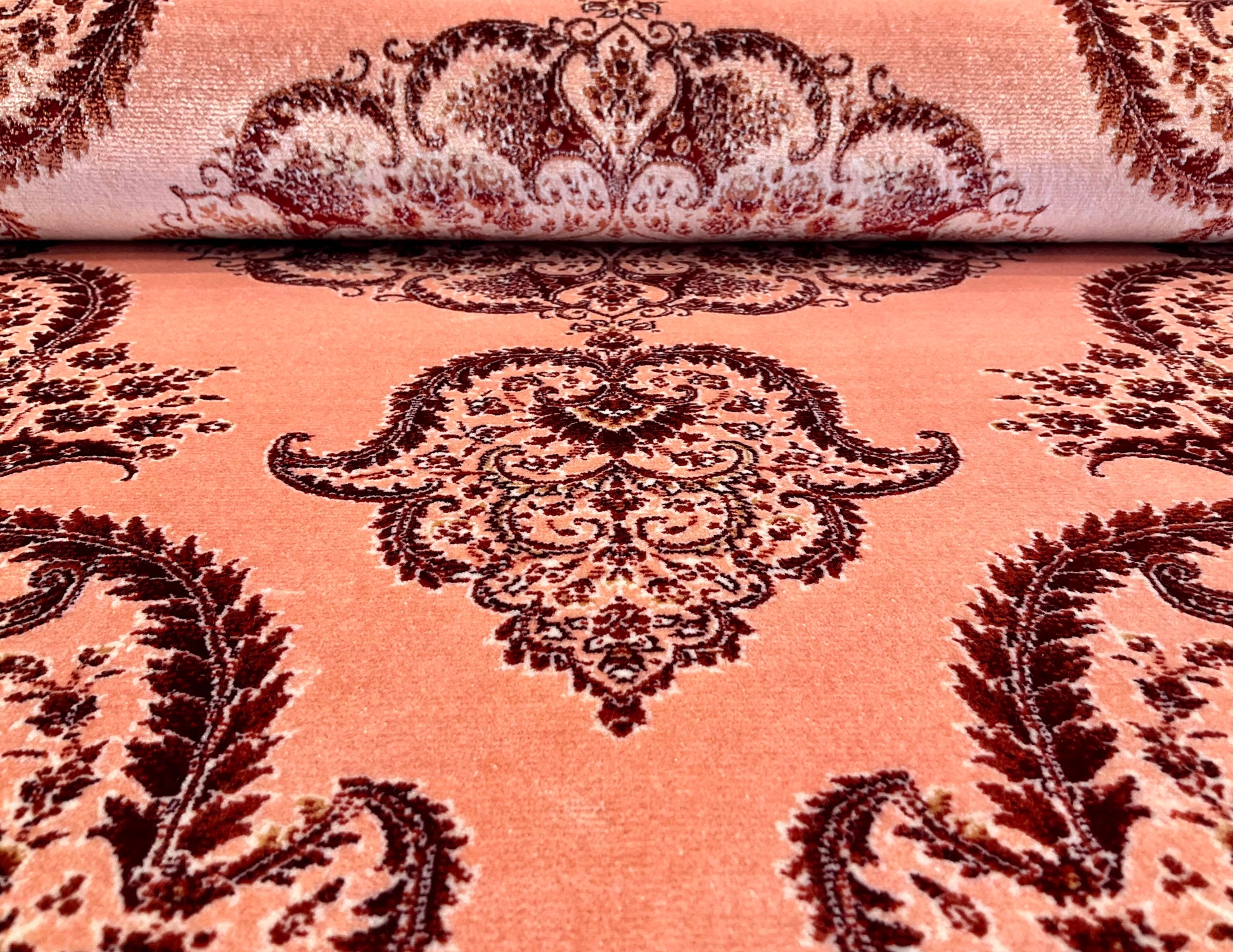 機械織り絨毯の特長として、サイズやノットが均一で精度が高く仕上がる点が挙げられます(フリンジ部分は手作業で仕上げられます)。また、ペルシャ絨毯ならではの美しいデザインや質感は、五大産地のひとつカシャーンで制作されているため、手織り絨毯に劣らない美しさを誇ります。