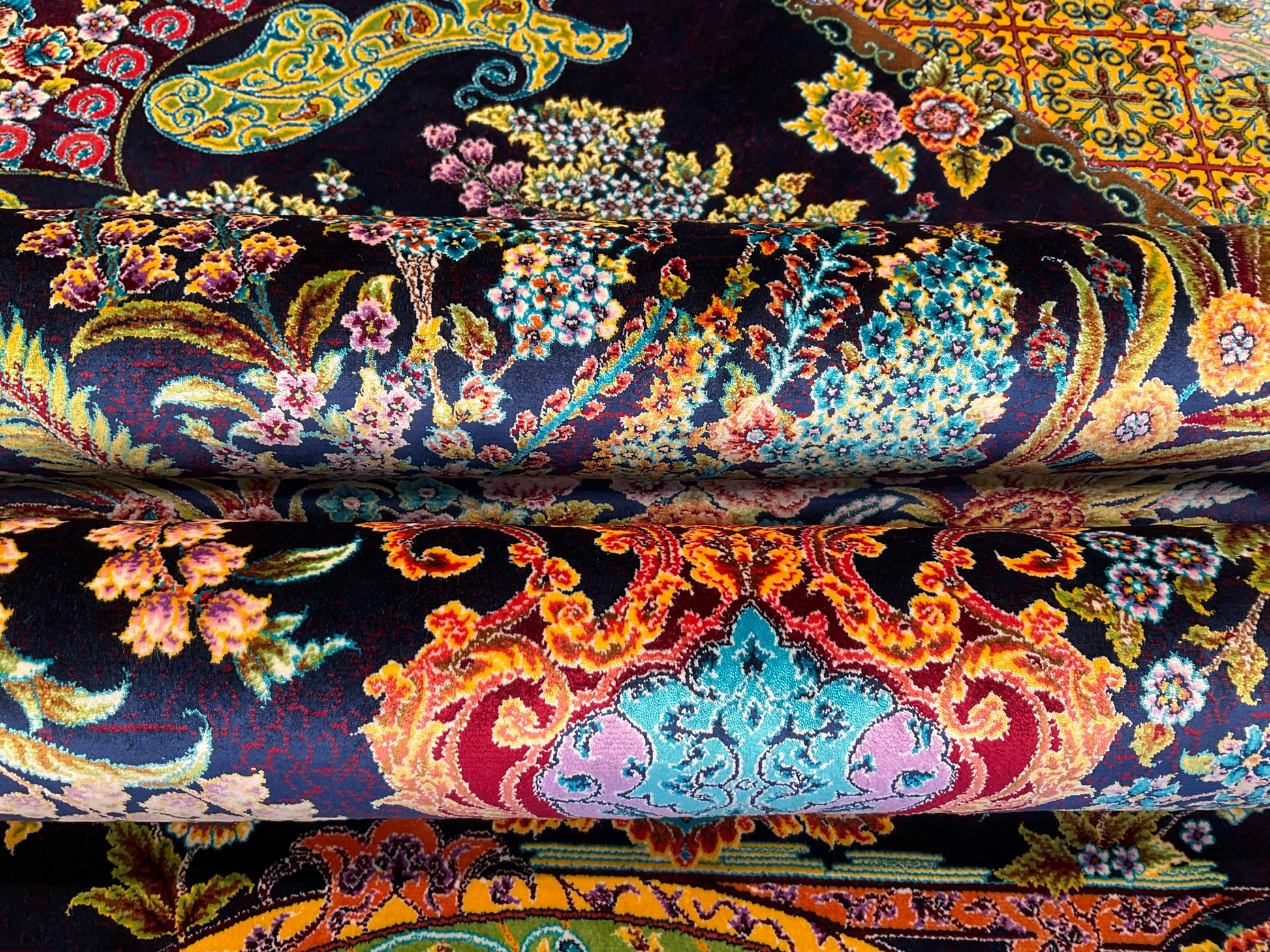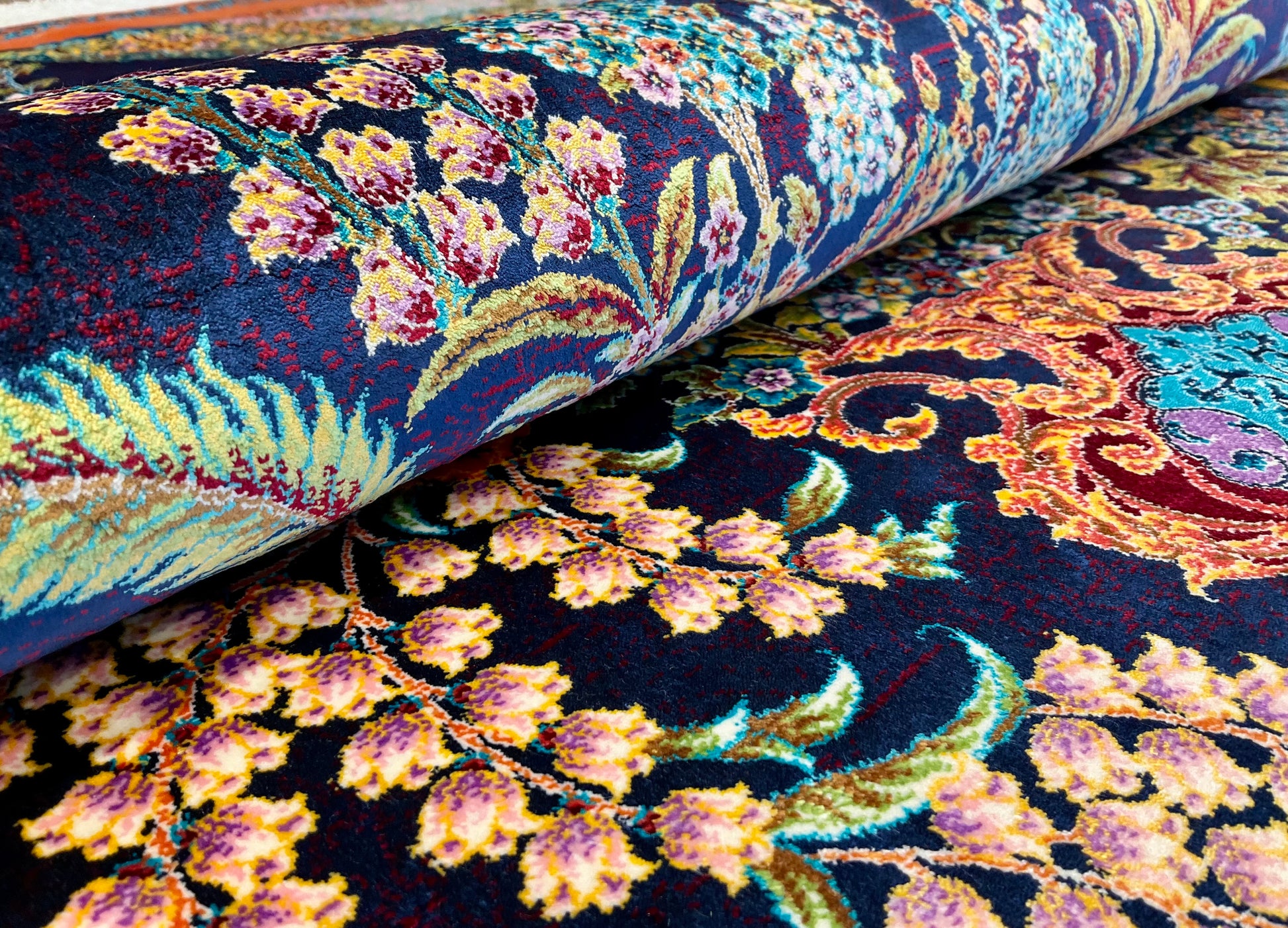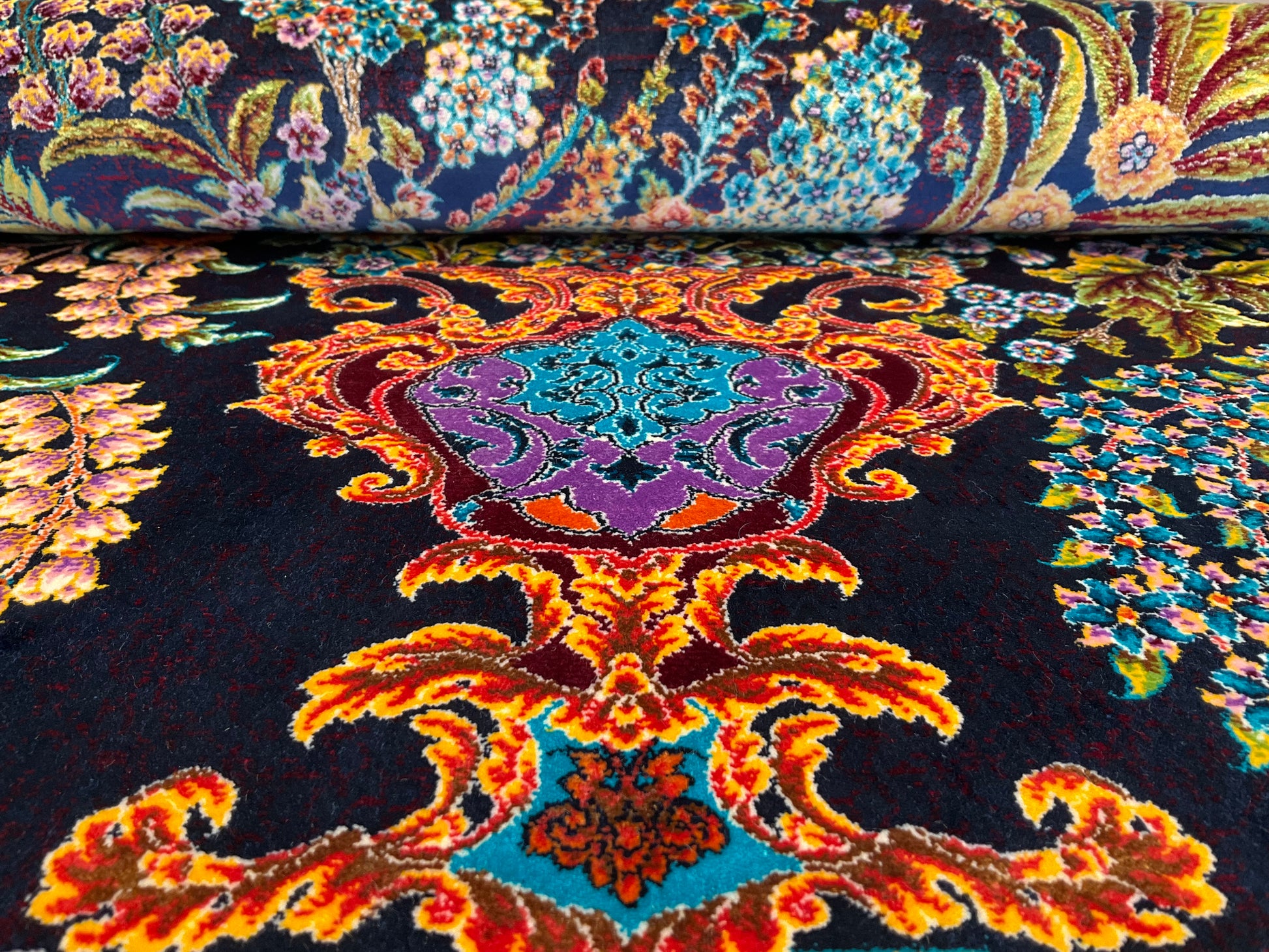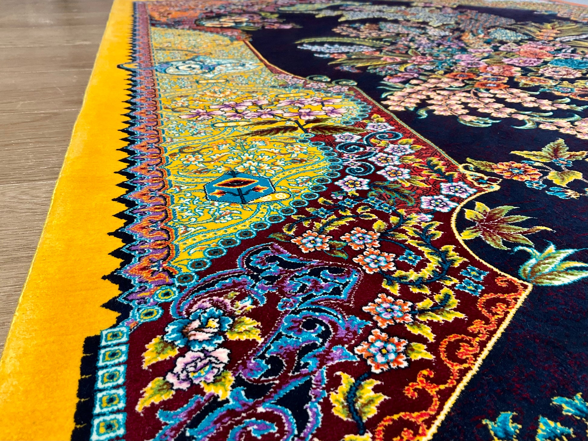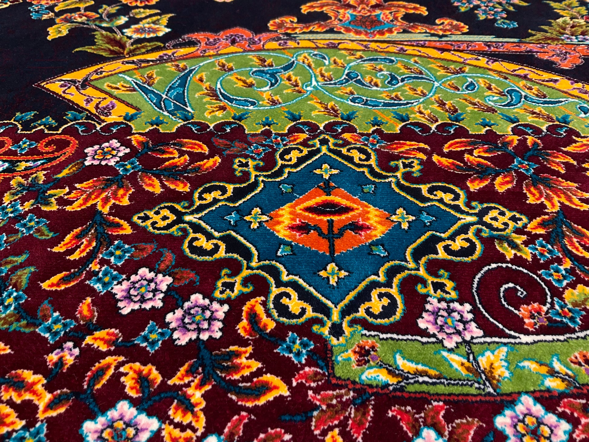 ペルシャンシルクは、ペルシャ絨毯の五大産地のひとつであるカシャーンで制作された機械織りの絨毯です。カシャーンの絨毯職人によってデザイン・プロデュースされています。