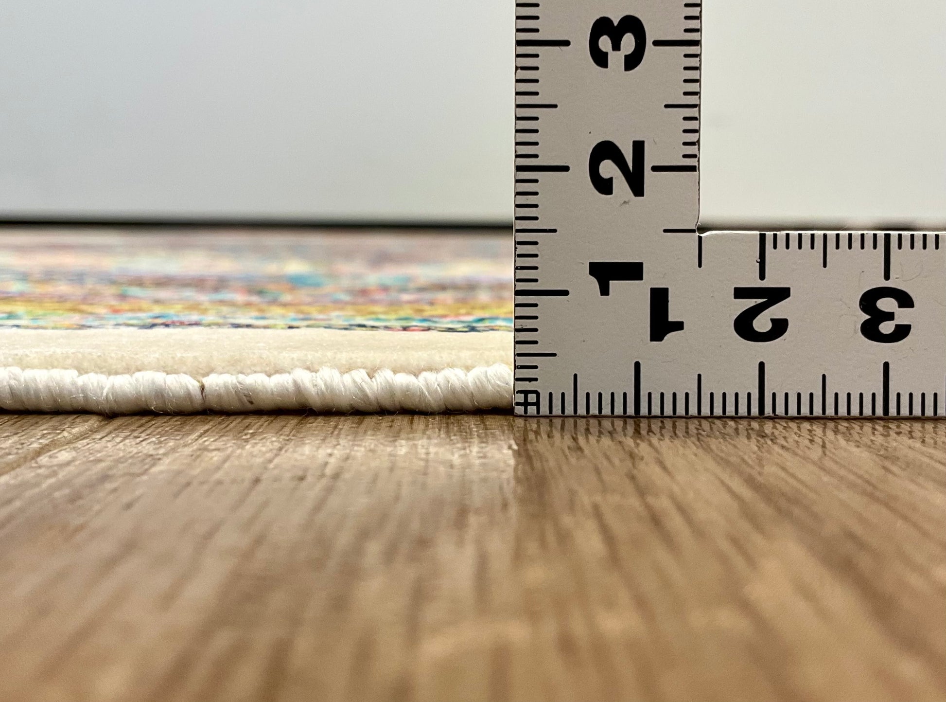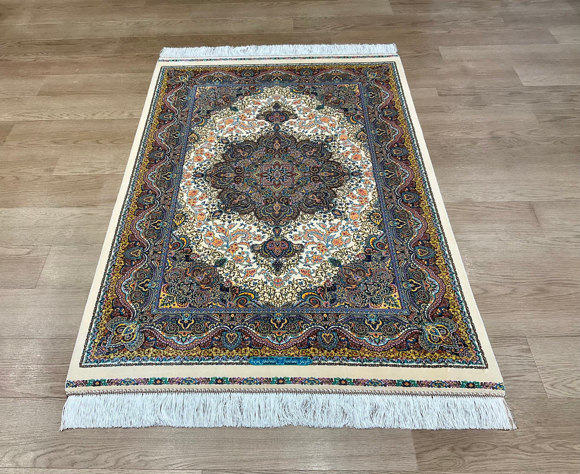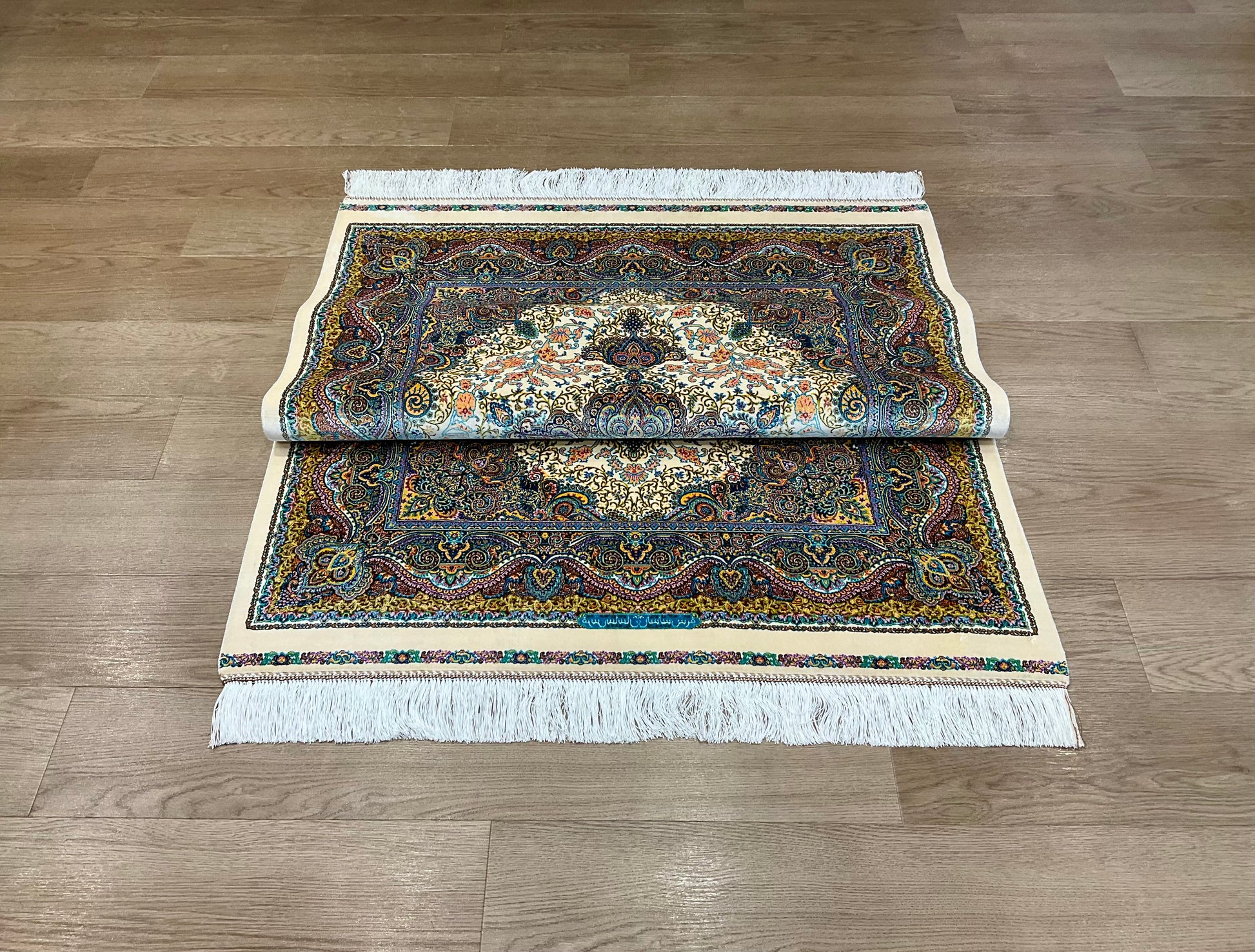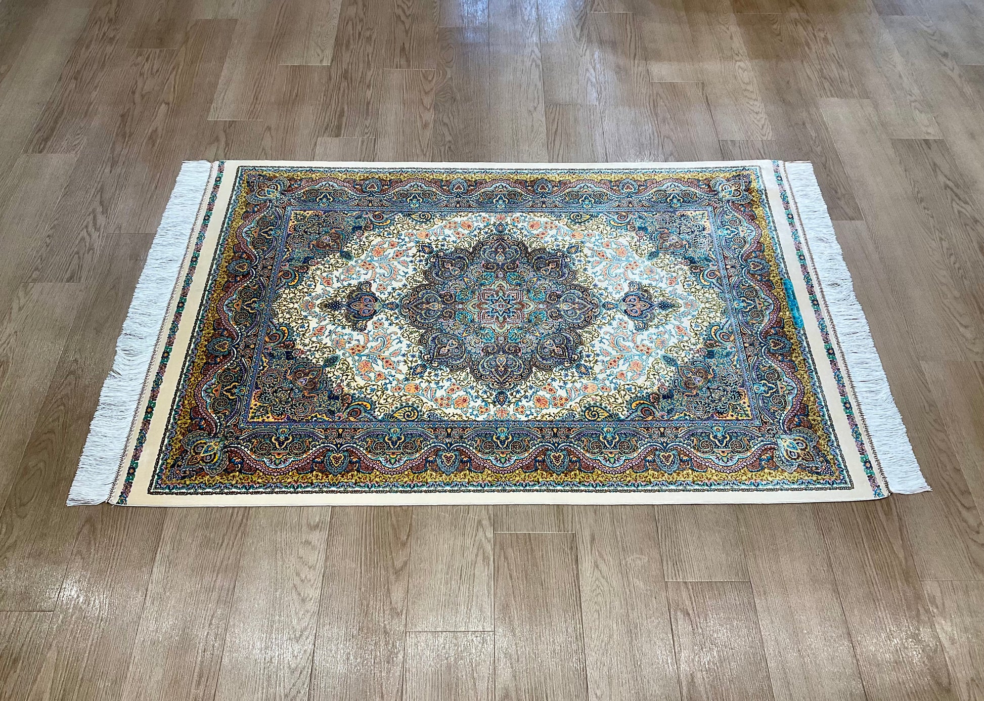 機械織り絨毯の特長として、サイズやノットが均一で精度が高く仕上がる点が挙げられます(フリンジ部分は手作業で仕上げられます)。また、ペルシャ絨毯ならではの美しいデザインや質感は、五大産地のひとつカシャーンで制作されているため、手織り絨毯に劣らない美しさを誇ります。