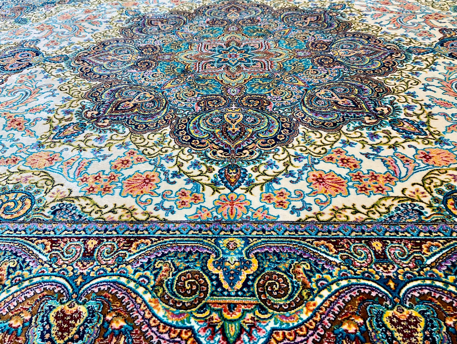 ペルシャンシルクは、ペルシャ絨毯の五大産地のひとつであるカシャーンで制作された機械織りの絨毯です。カシャーンの絨毯職人によってデザイン・プロデュースされています。