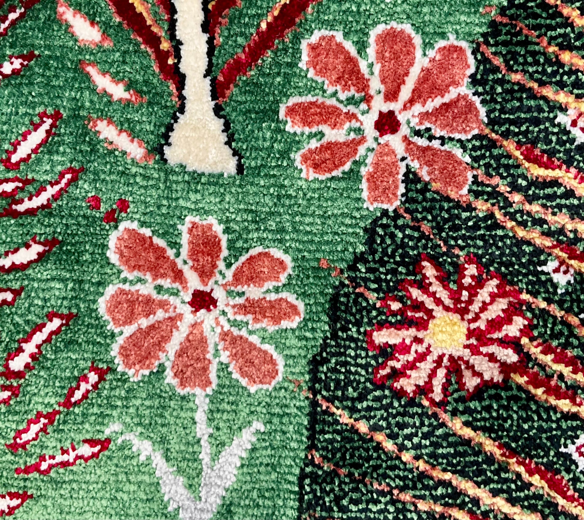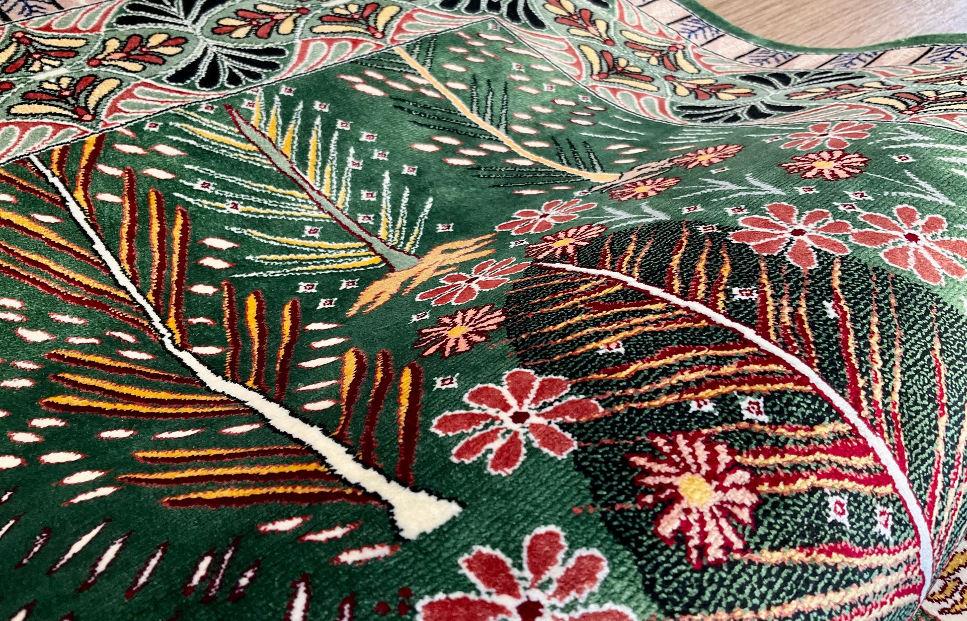 手織りの絨毯に比べて制作時間が短縮されるため、コストを抑えることができ、よりリーズナブルな価格でご提供できる点が特徴です。