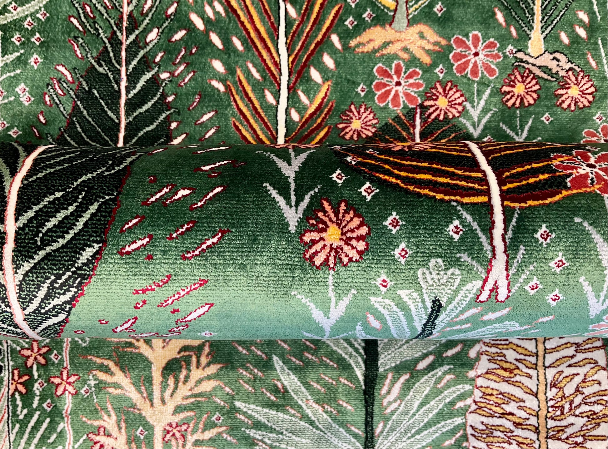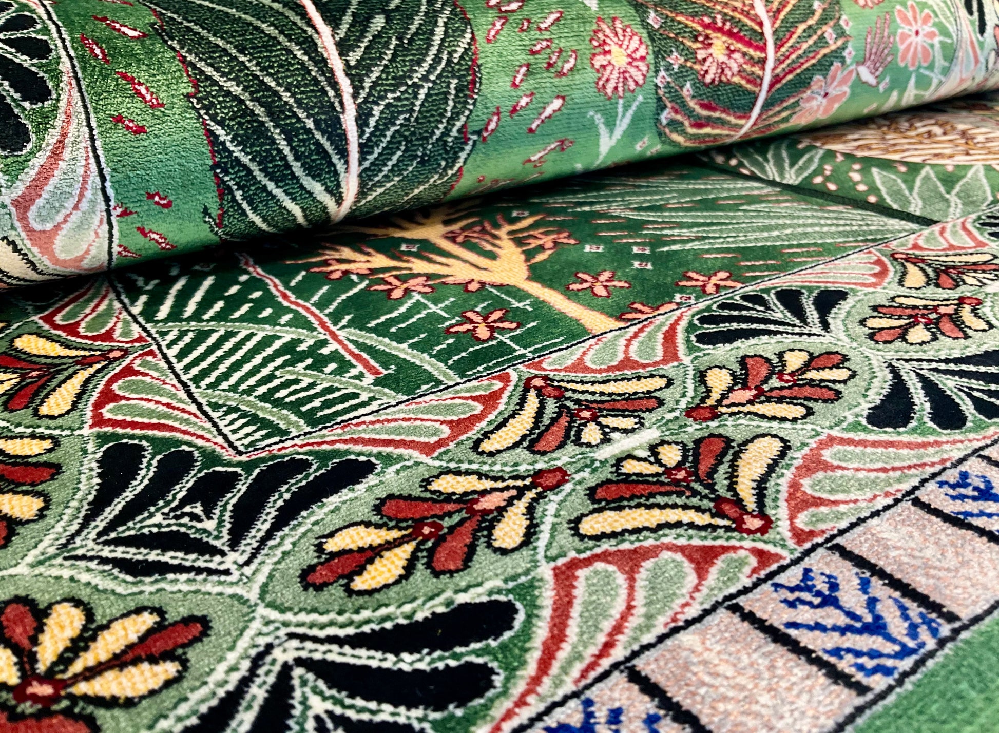ペルシャンシルクは、ペルシャ絨毯の五大産地のひとつであるカシャーンで制作された機械織りの絨毯です。カシャーンの絨毯職人によってデザイン・プロデュースされています。