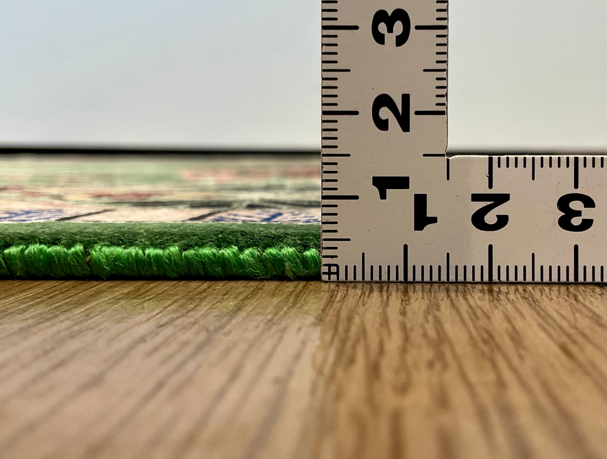 機械織り絨毯の特長として、サイズやノットが均一で精度が高く仕上がる点が挙げられます(フリンジ部分は手作業で仕上げられます)。また、ペルシャ絨毯ならではの美しいデザインや質感は、五大産地のひとつカシャーンで制作されているため、手織り絨毯に劣らない美しさを誇ります。