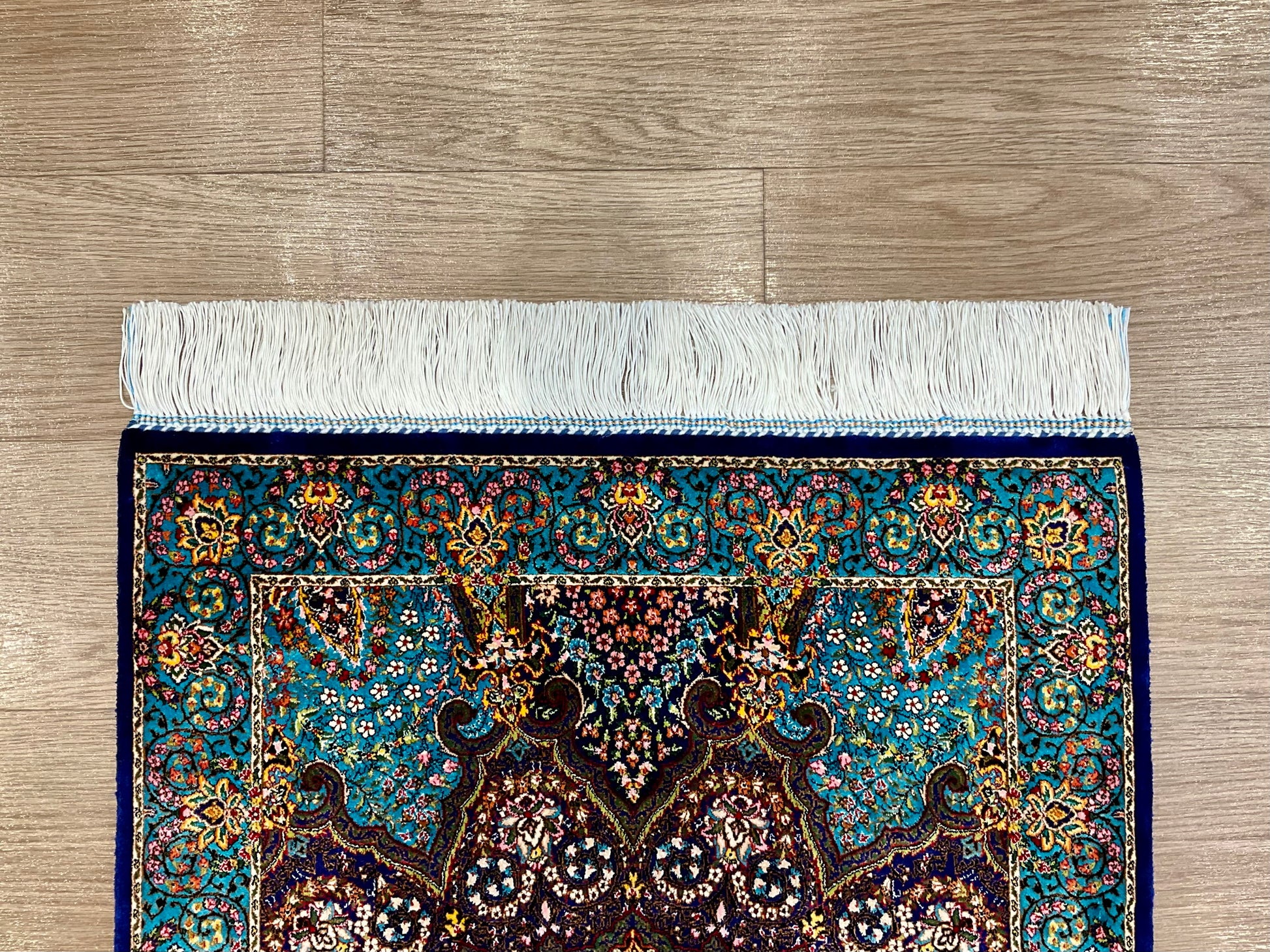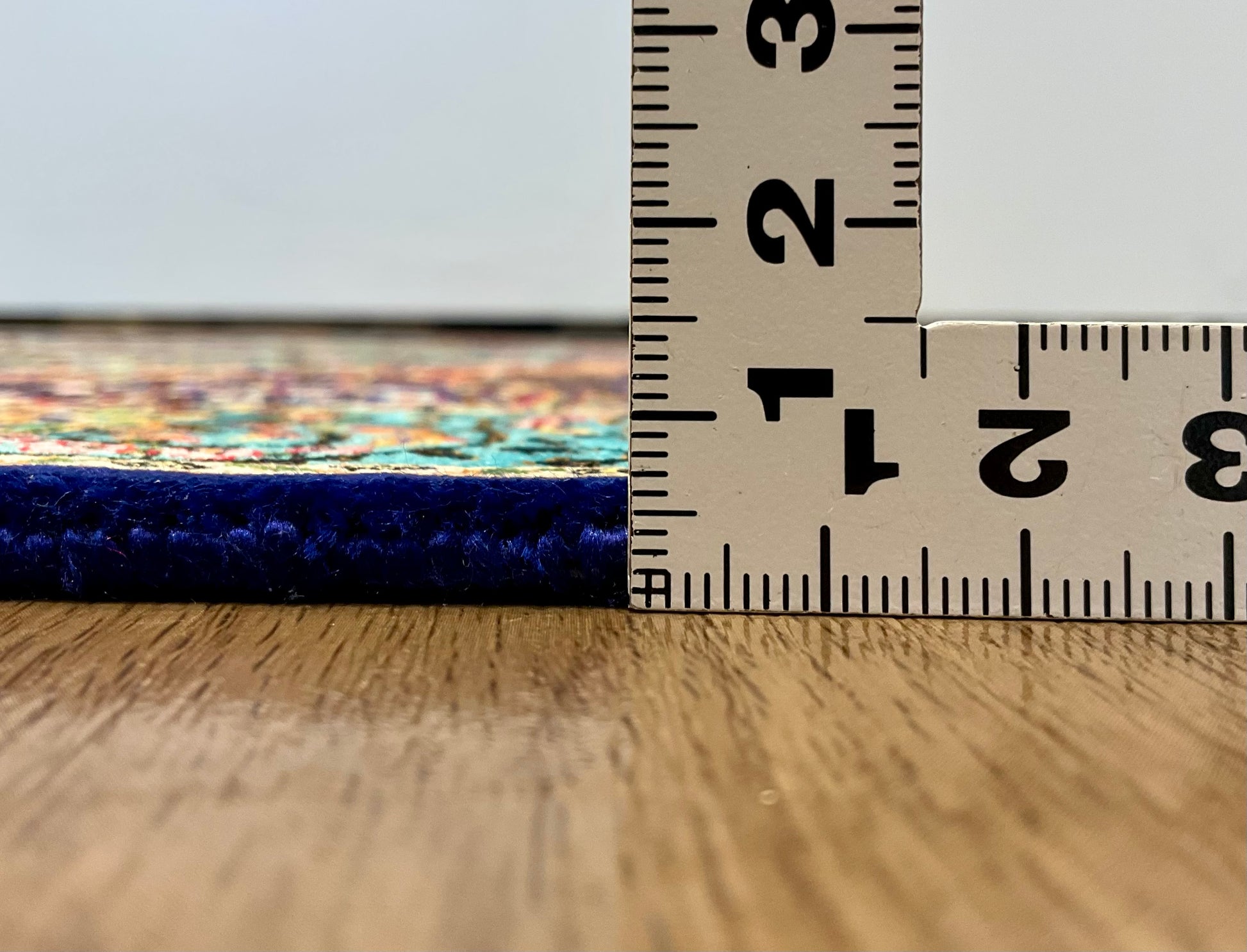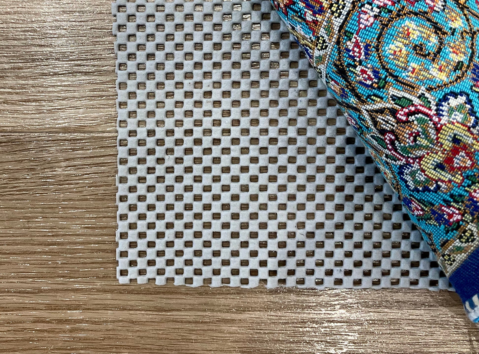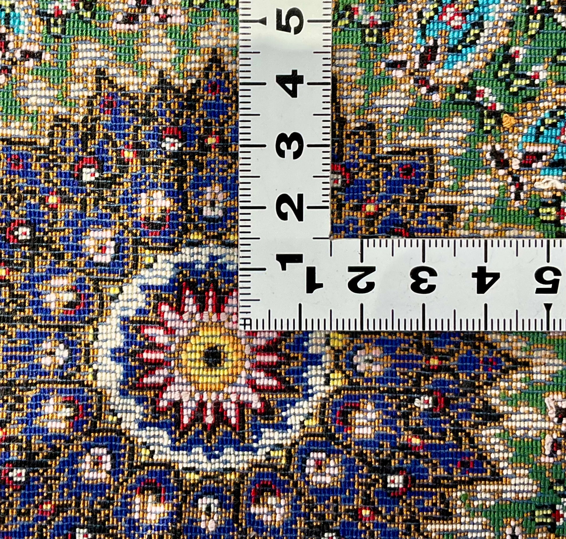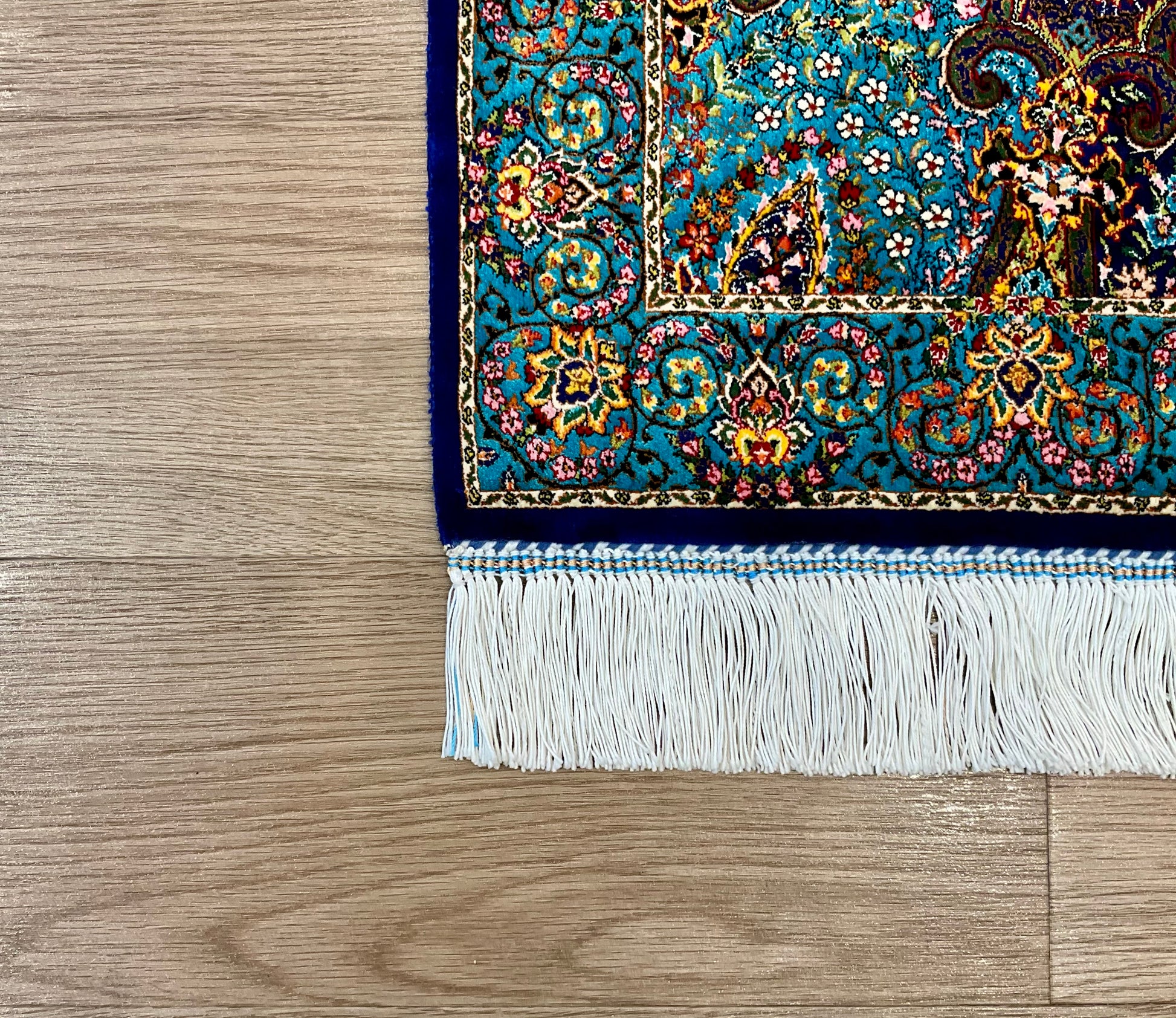機械織り絨毯の特長として、サイズやノットが均一で精度が高く仕上がる点が挙げられます(フリンジ部分は手作業で仕上げられます)。また、ペルシャ絨毯ならではの美しいデザインや質感は、五大産地のひとつカシャーンで制作されているため、手織り絨毯に劣らない美しさを誇ります。
