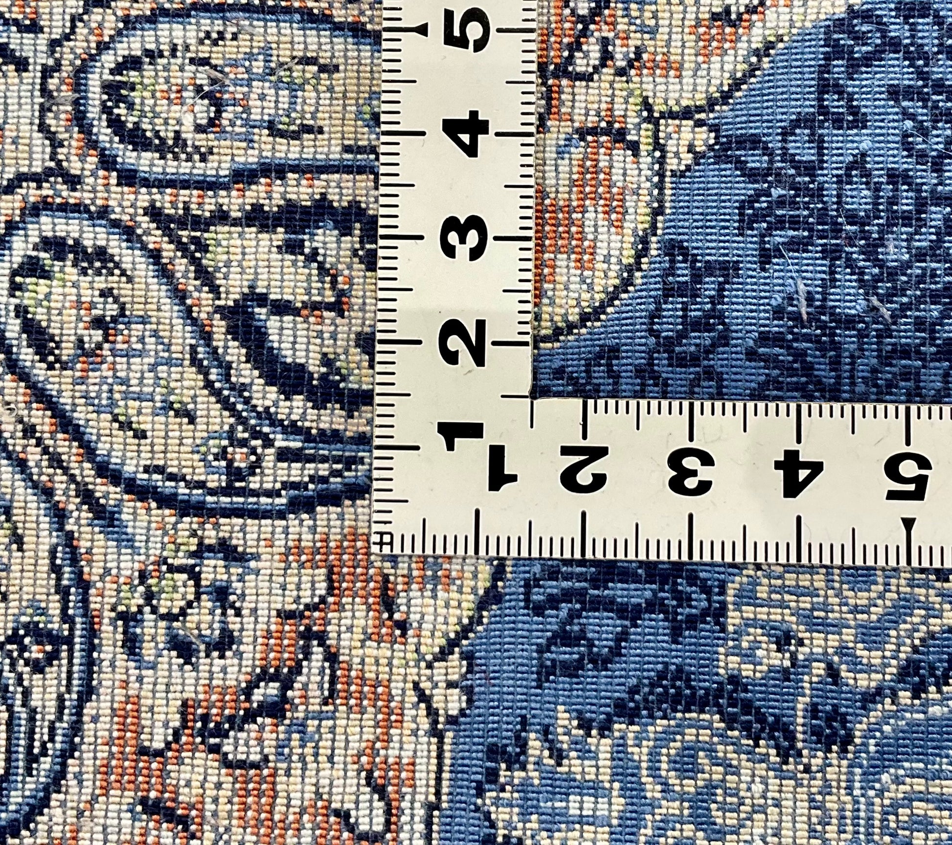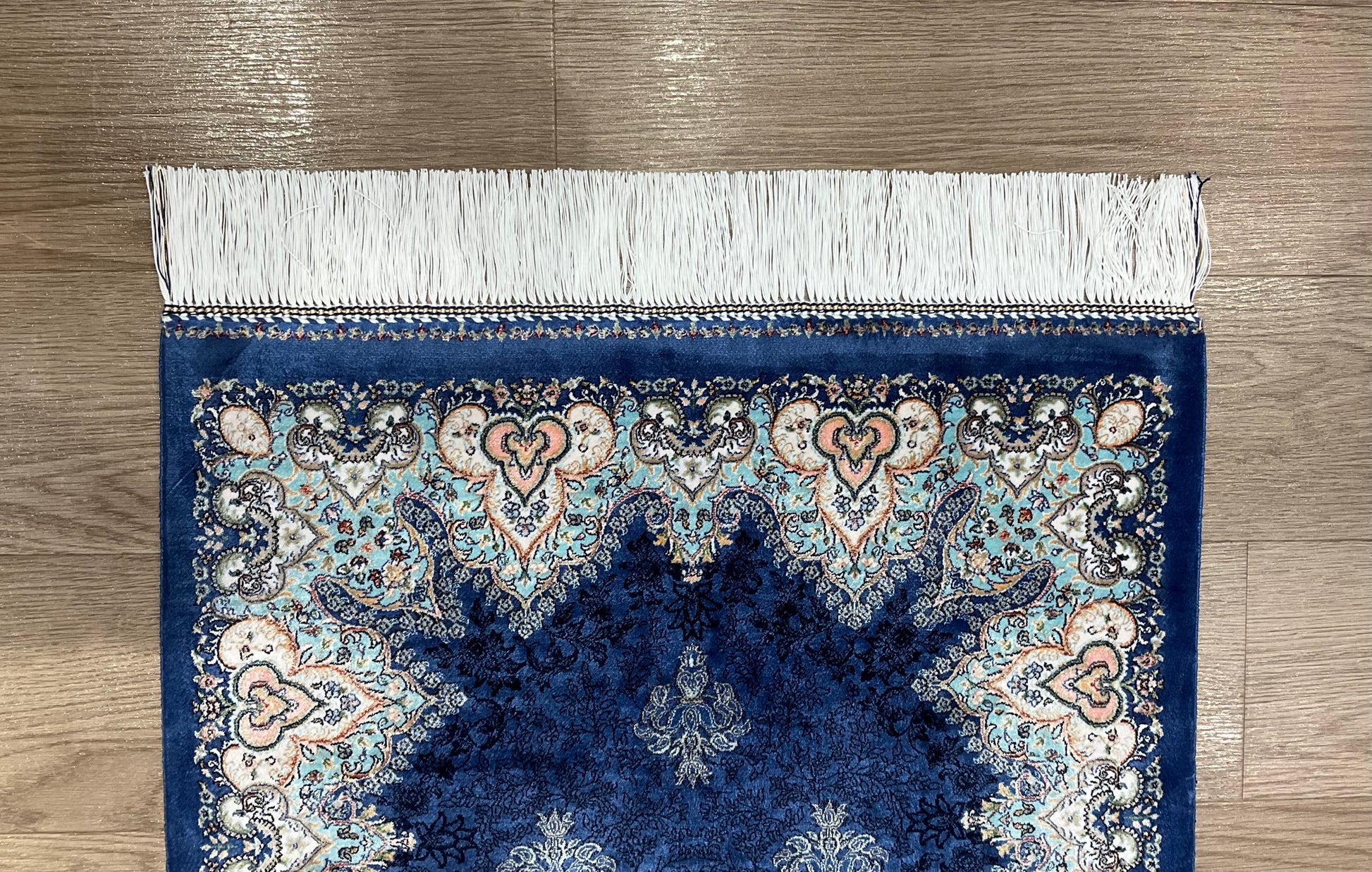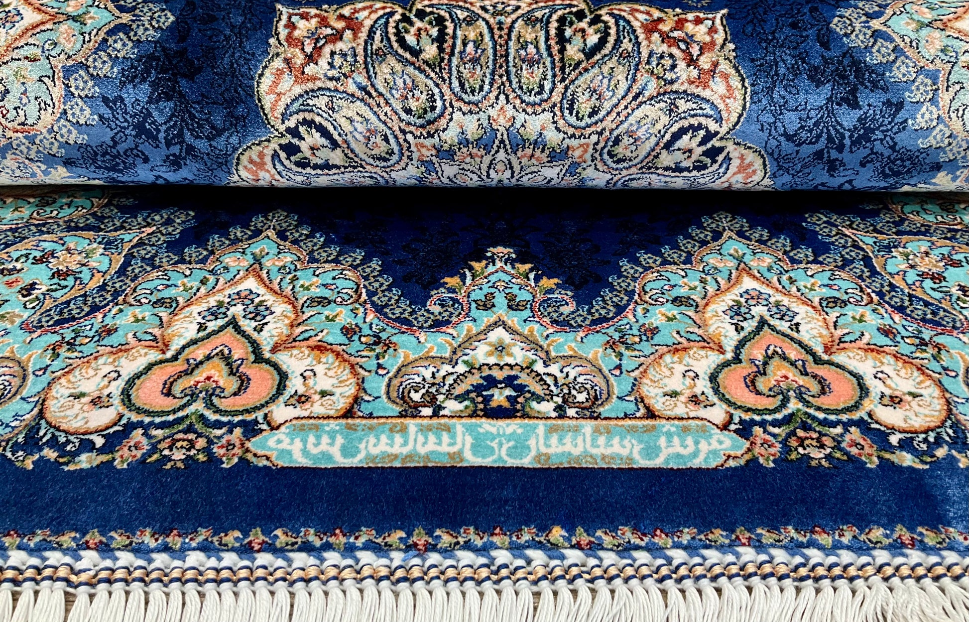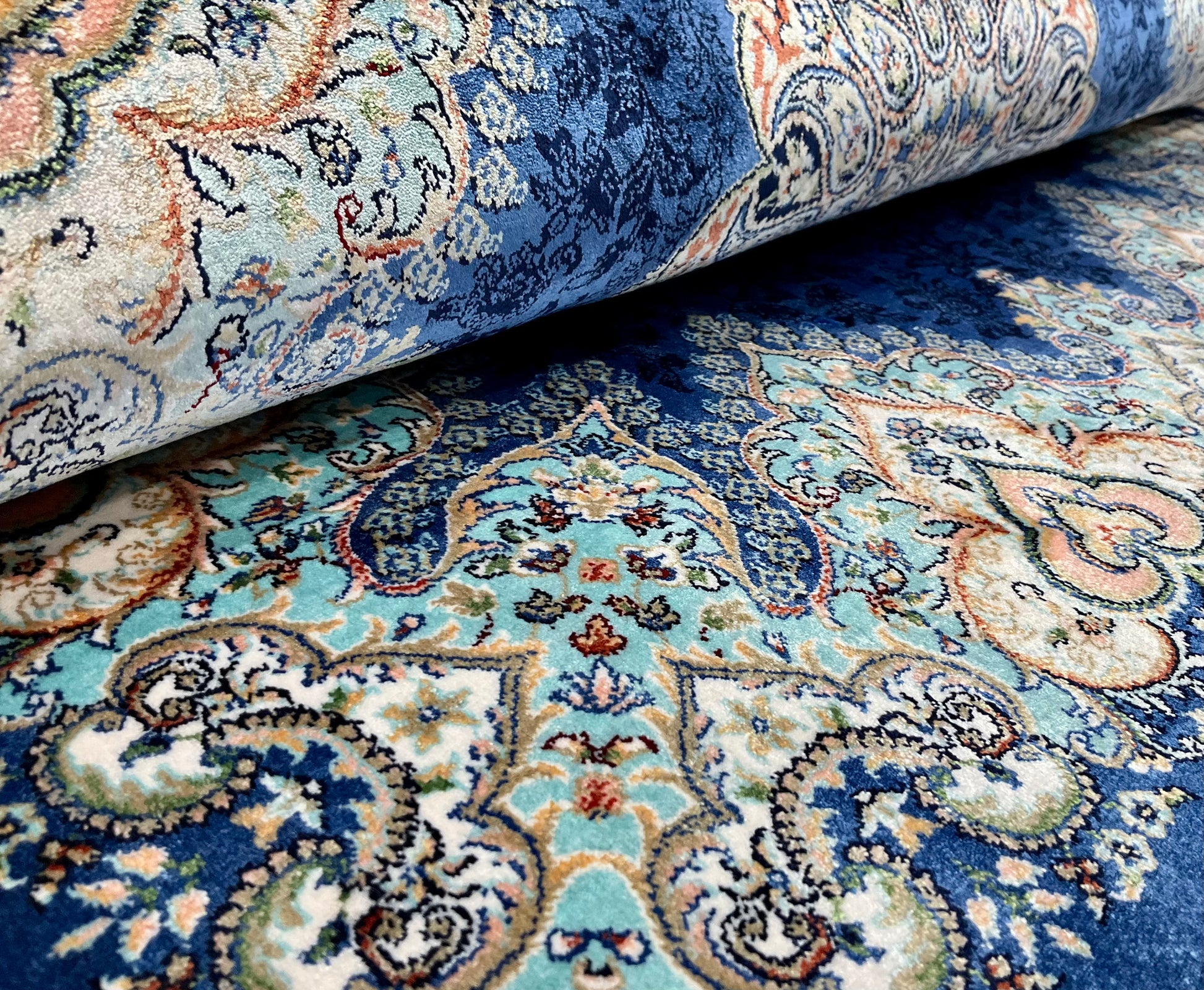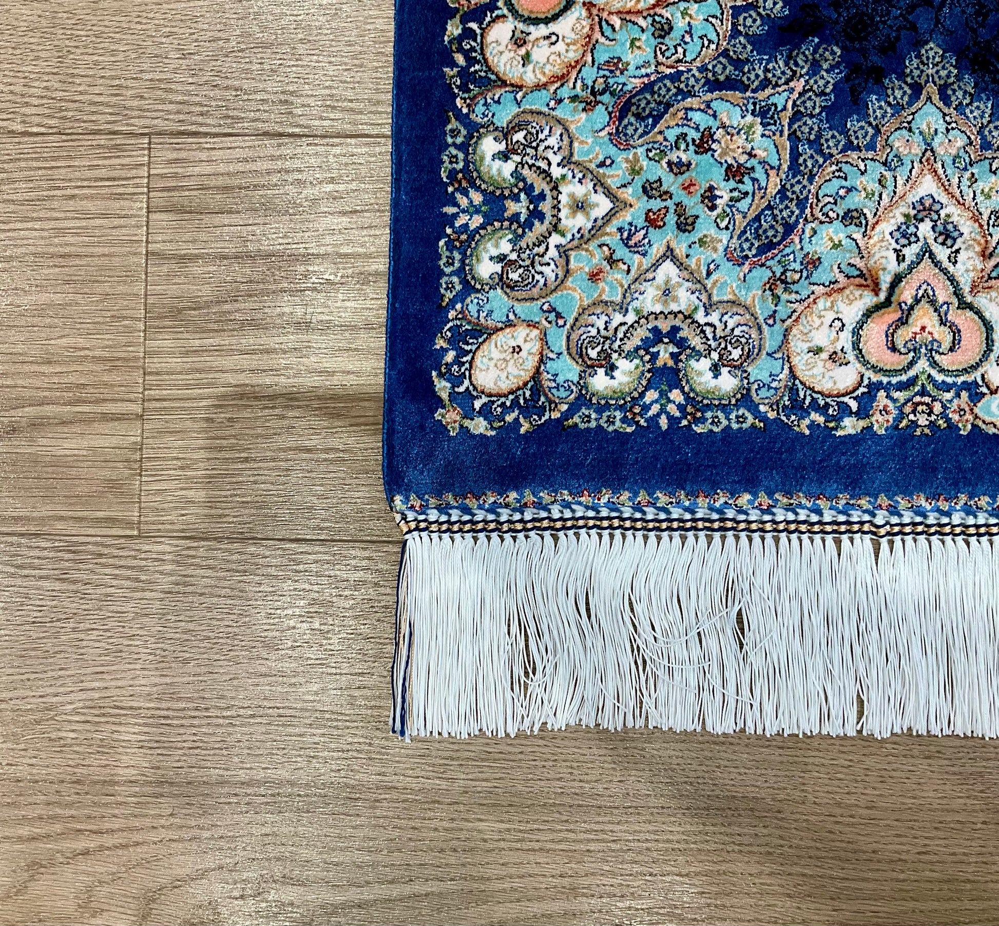 機械織り絨毯の特長として、サイズやノットが均一で精度が高く仕上がる点が挙げられます(フリンジ部分は手作業で仕上げられます)。また、ペルシャ絨毯ならではの美しいデザインや質感は、五大産地のひとつカシャーンで制作されているため、手織り絨毯に劣らない美しさを誇ります。