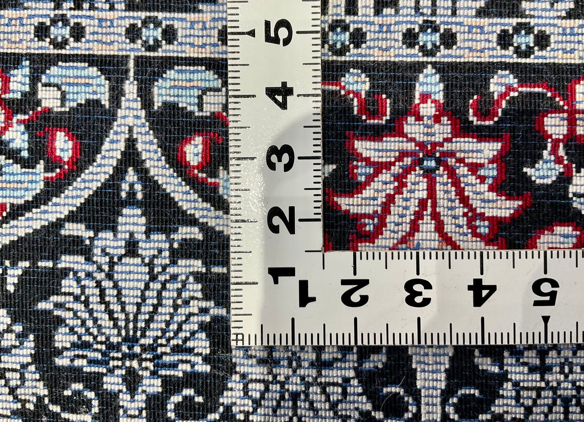機械織り絨毯の特長として、サイズやノットが均一で精度が高く仕上がる点が挙げられます(フリンジ部分は手作業で仕上げられます)。また、ペルシャ絨毯ならではの美しいデザインや質感は、五大産地のひとつカシャーンで制作されているため、手織り絨毯に劣らない美しさを誇ります。