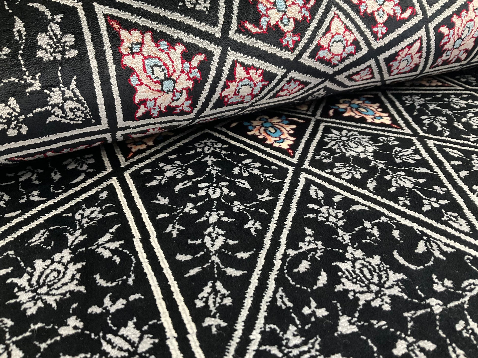 ペルシャンシルクは、ペルシャ絨毯の五大産地のひとつであるカシャーンで制作された機械織りの絨毯です。カシャーンの絨毯職人によってデザイン・プロデュースされています。