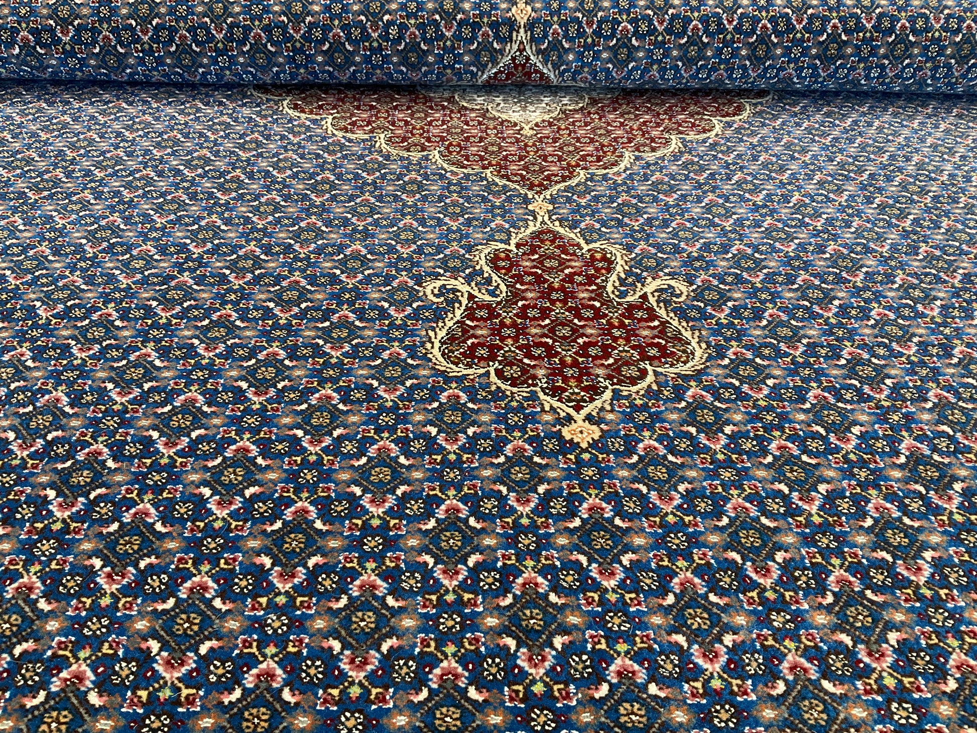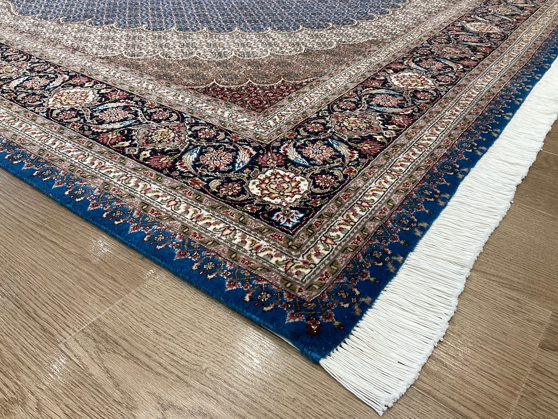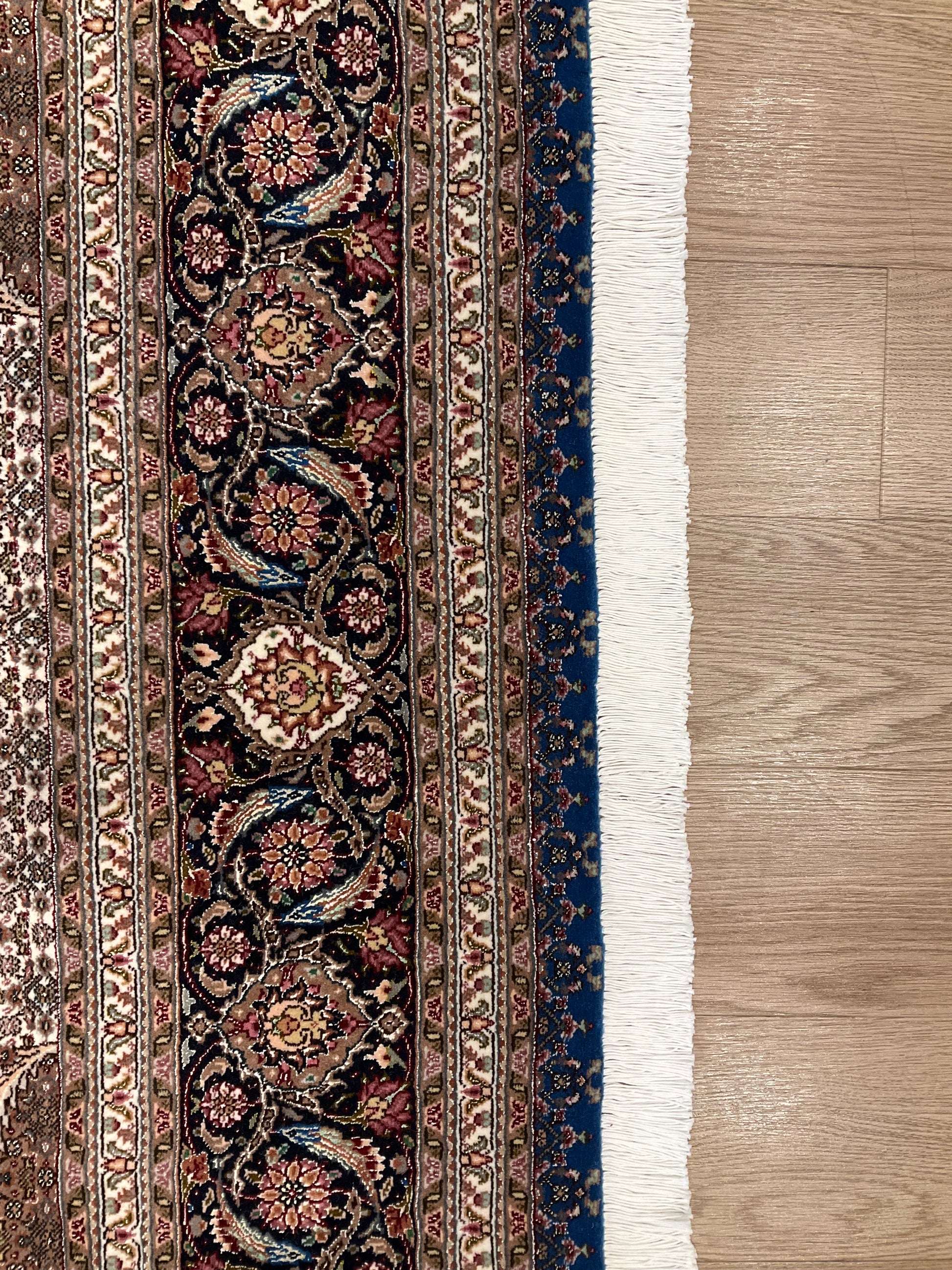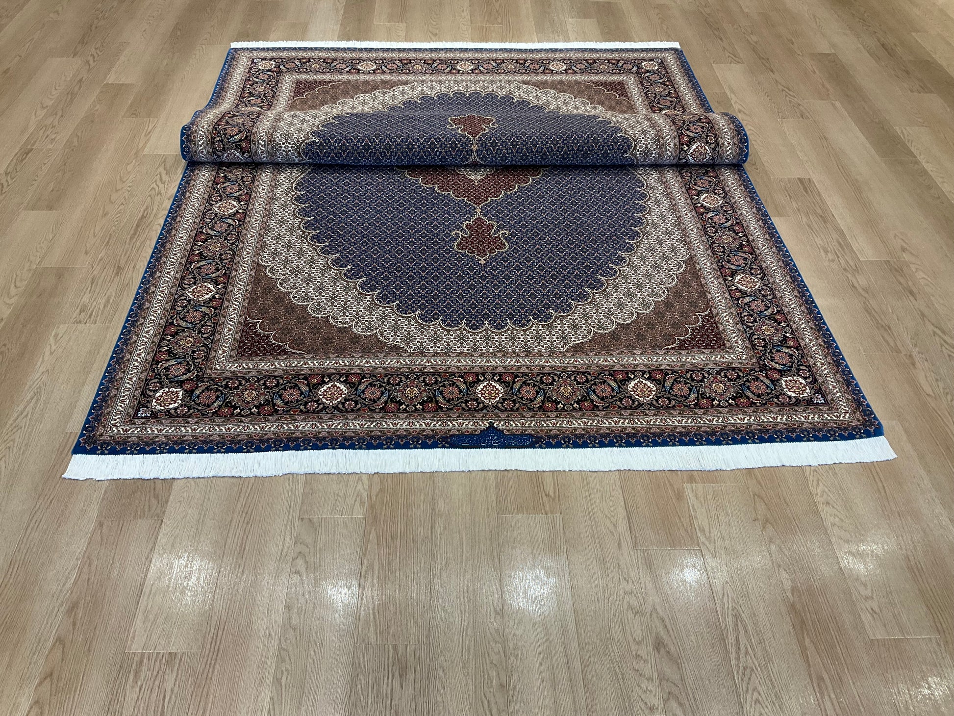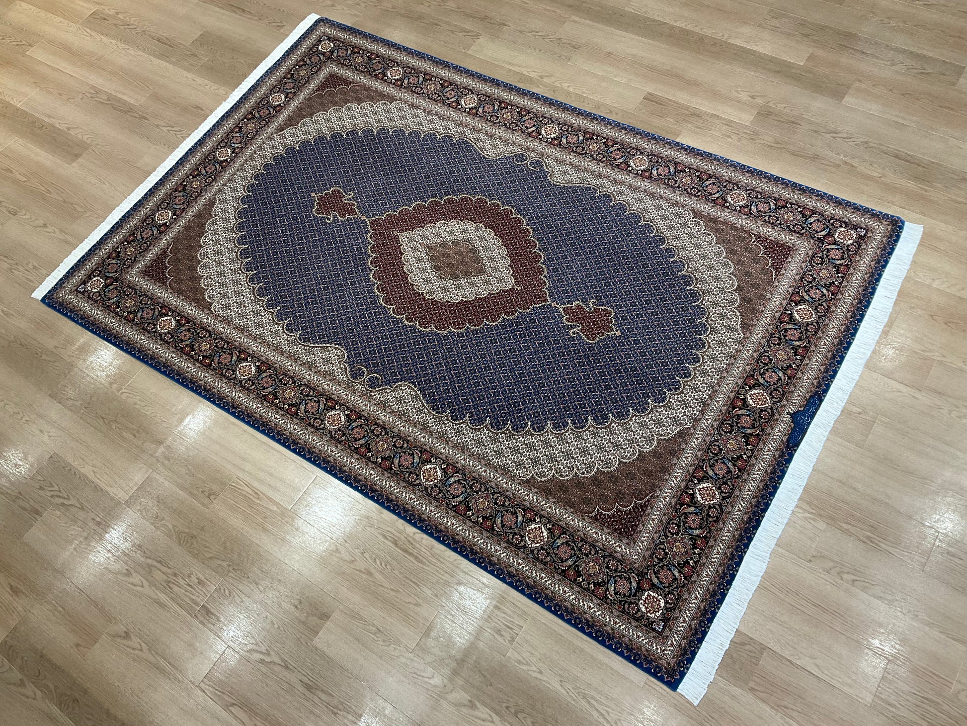 ペルシャ絨毯五大産地のひとつで、緻密な織り、荘厳なメダリオンデザイン、落ち着いた色合いが特徴の、格式高い伝統的なペルシャ絨毯です。タブリーズのデザインはベナム柄(王朝風)やマヒ柄(小魚文様)が代表的です。織密度が緻密で耐久性にとても優れています。