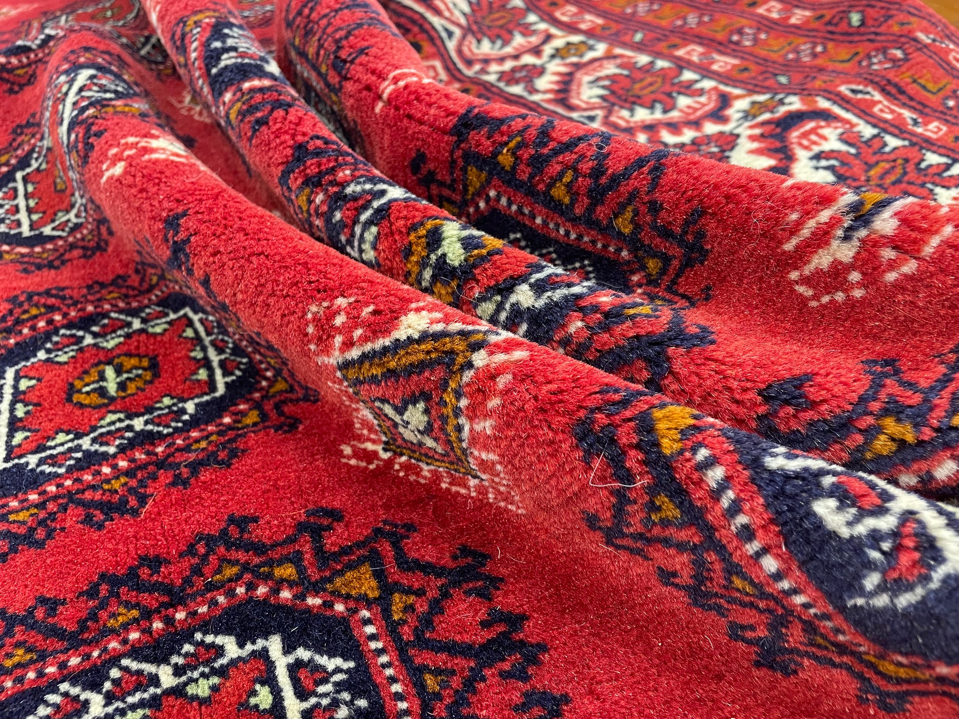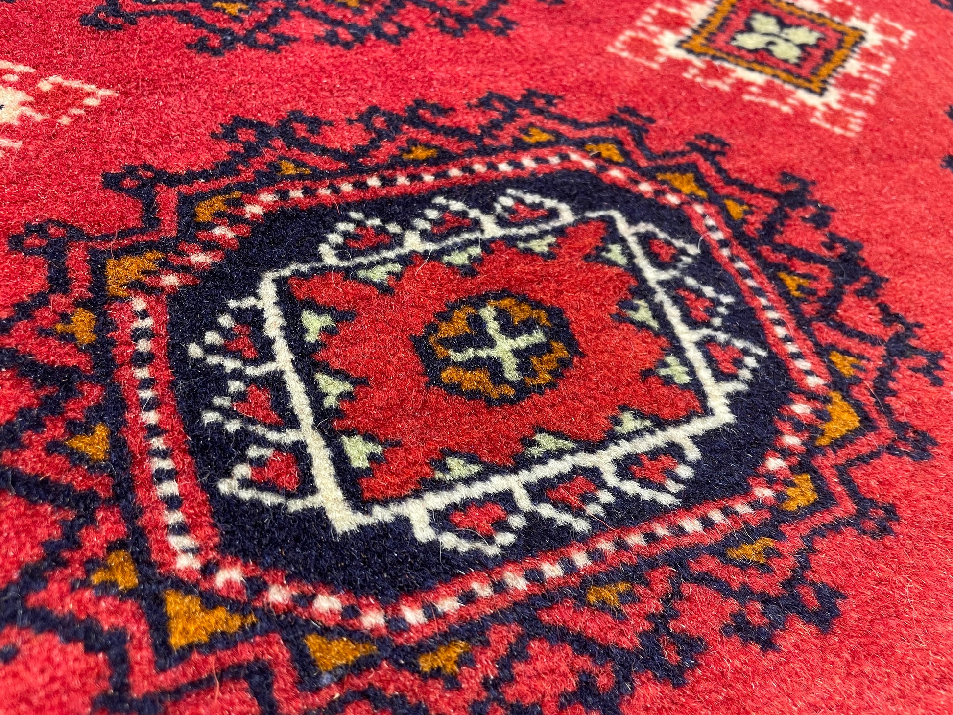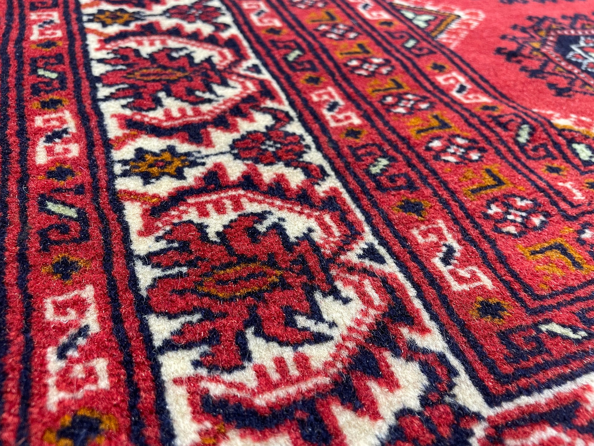トルクメン(Turkmen)は、イラン北東部に住むトルクメン族によって織られる絨毯で、その「赤」には非常に深いこだわりと象徴的な意味があります。