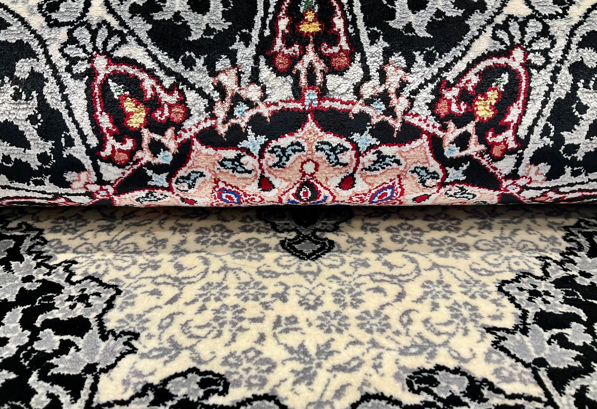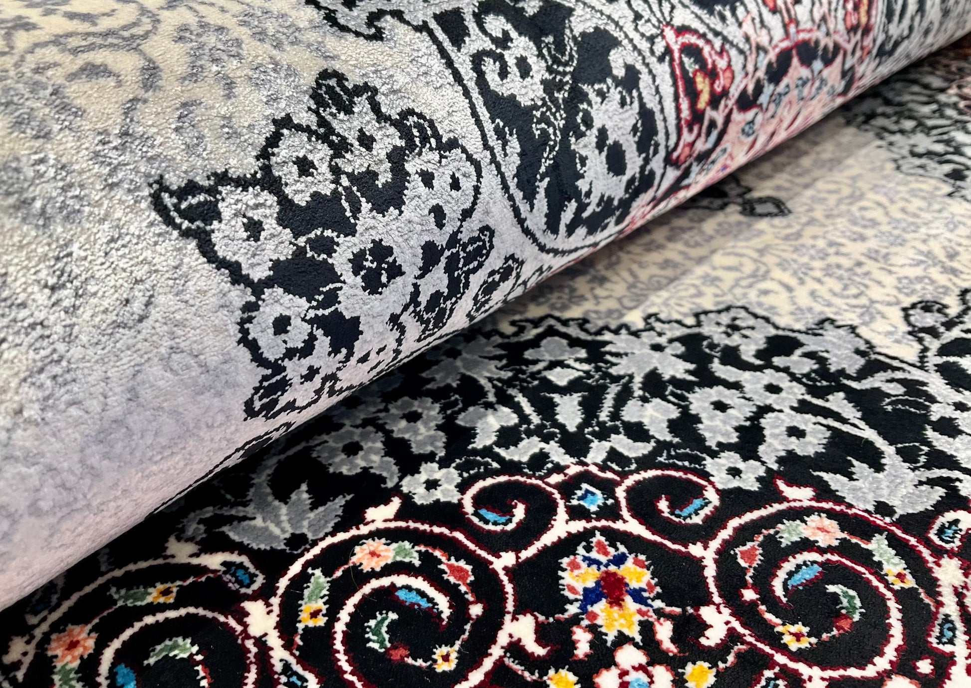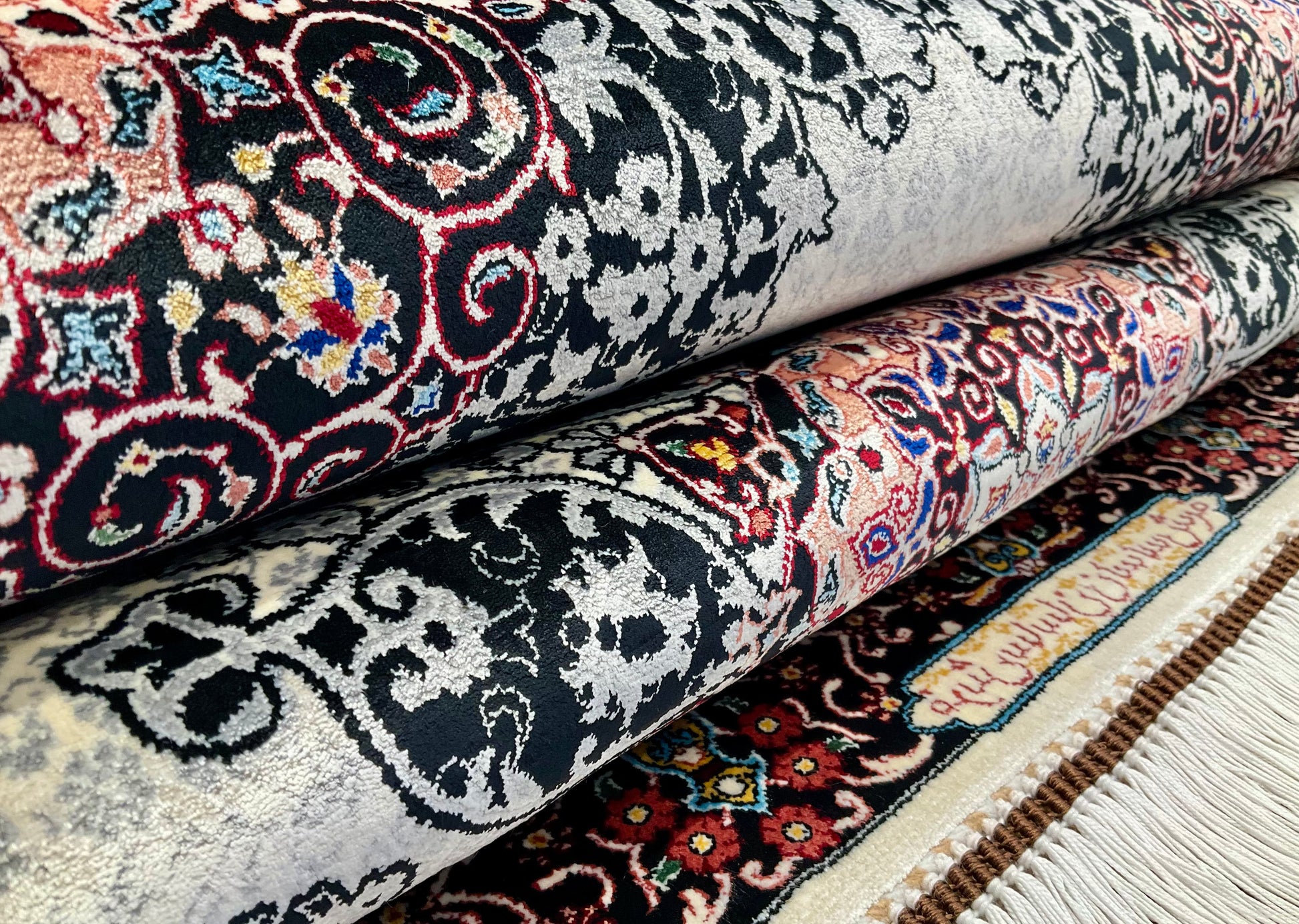 ペルシャンシルクは、ペルシャ絨毯の五大産地のひとつであるカシャーンで制作された機械織りの絨毯です。カシャーンの絨毯職人によってデザイン・プロデュースされています。