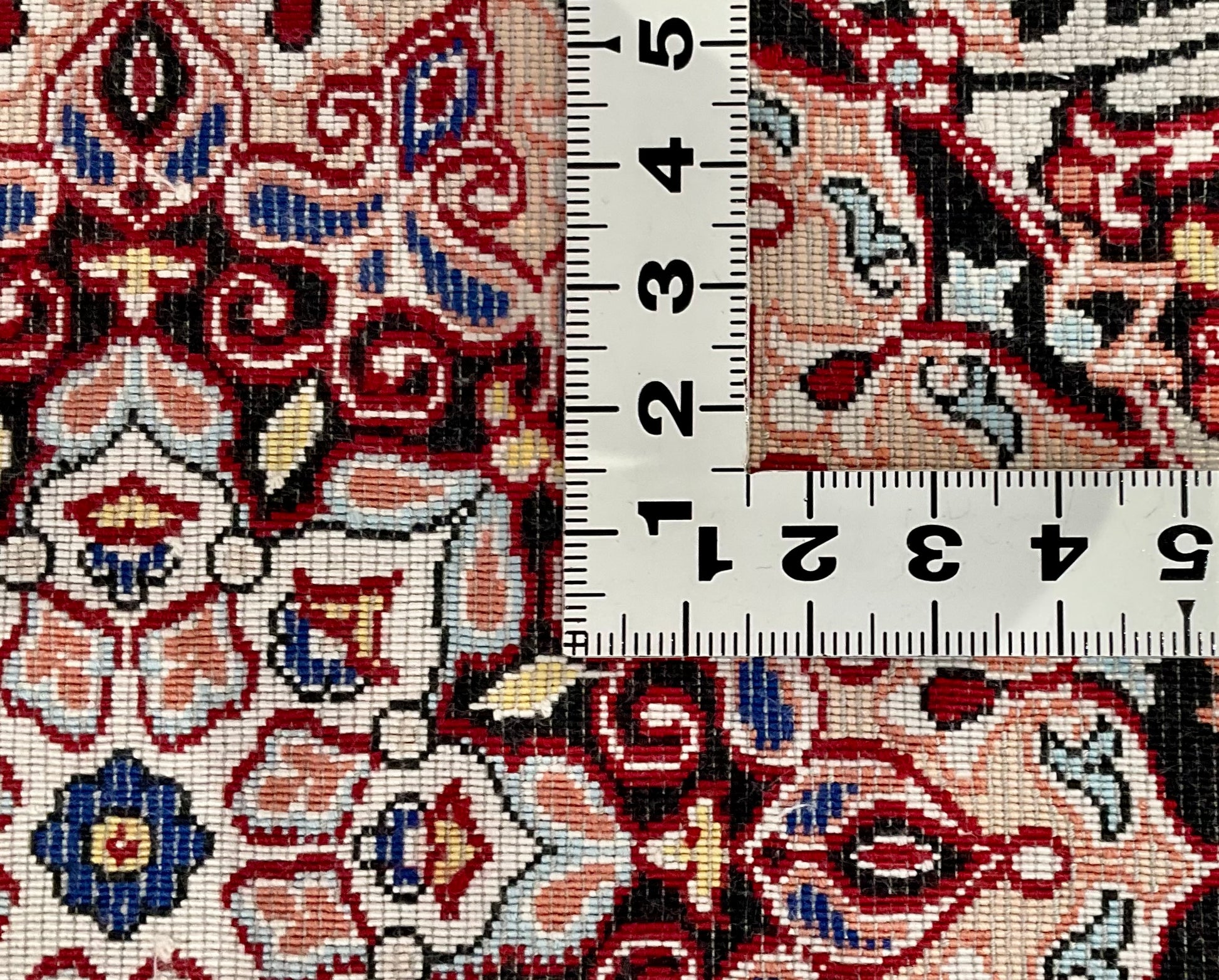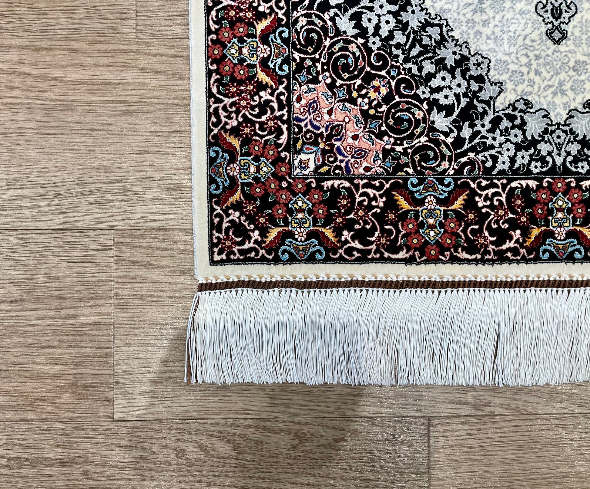 機械織り絨毯の特長として、サイズやノットが均一で精度が高く仕上がる点が挙げられます(フリンジ部分は手作業で仕上げられます)。また、ペルシャ絨毯ならではの美しいデザインや質感は、五大産地のひとつカシャーンで制作されているため、手織り絨毯に劣らない美しさを誇ります。