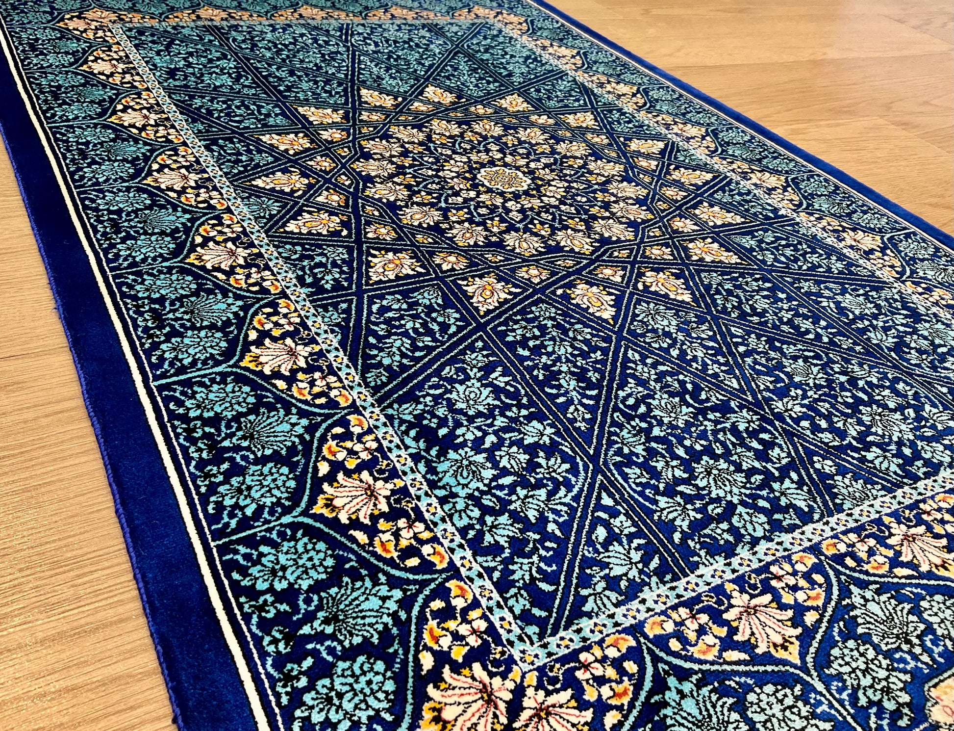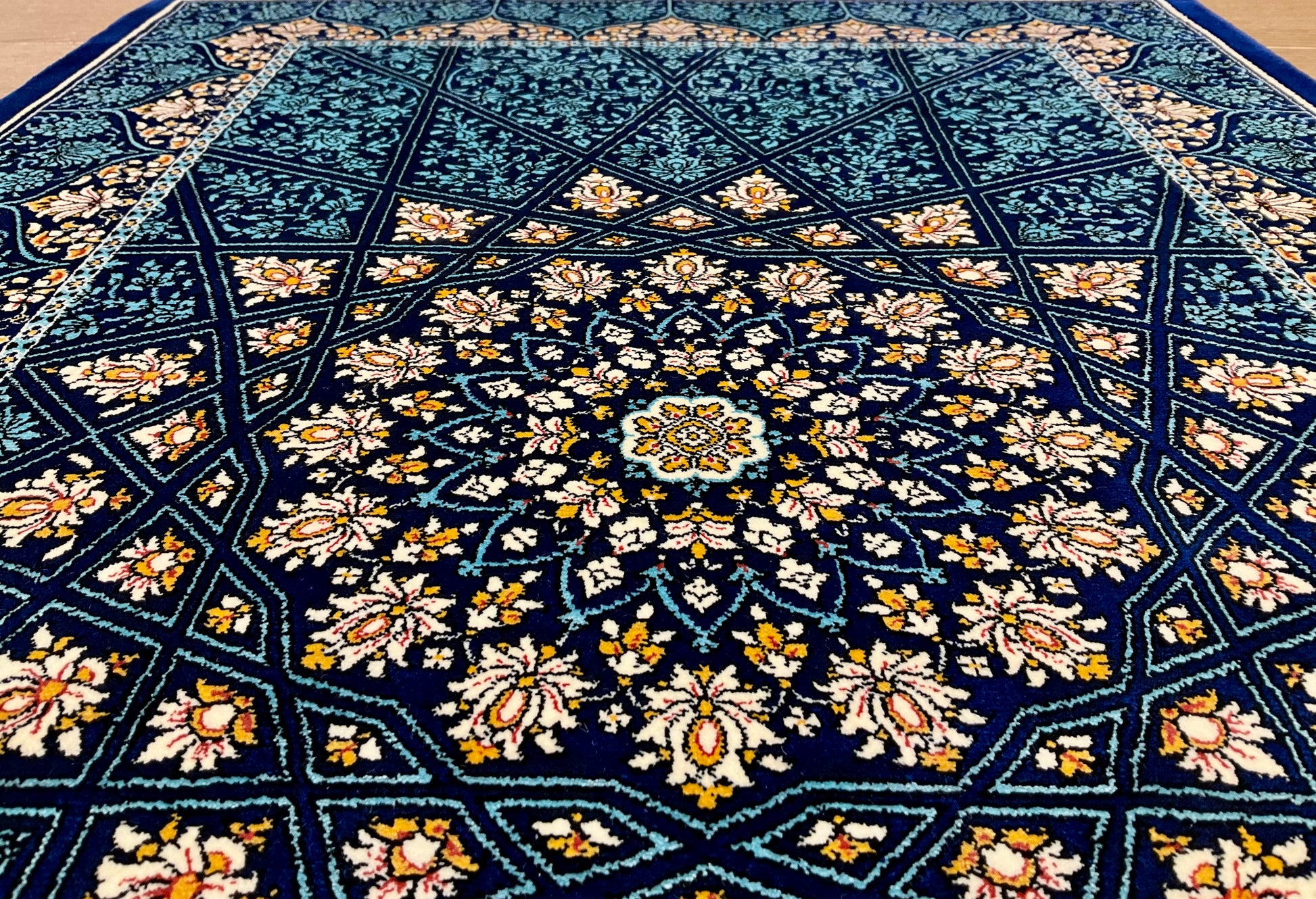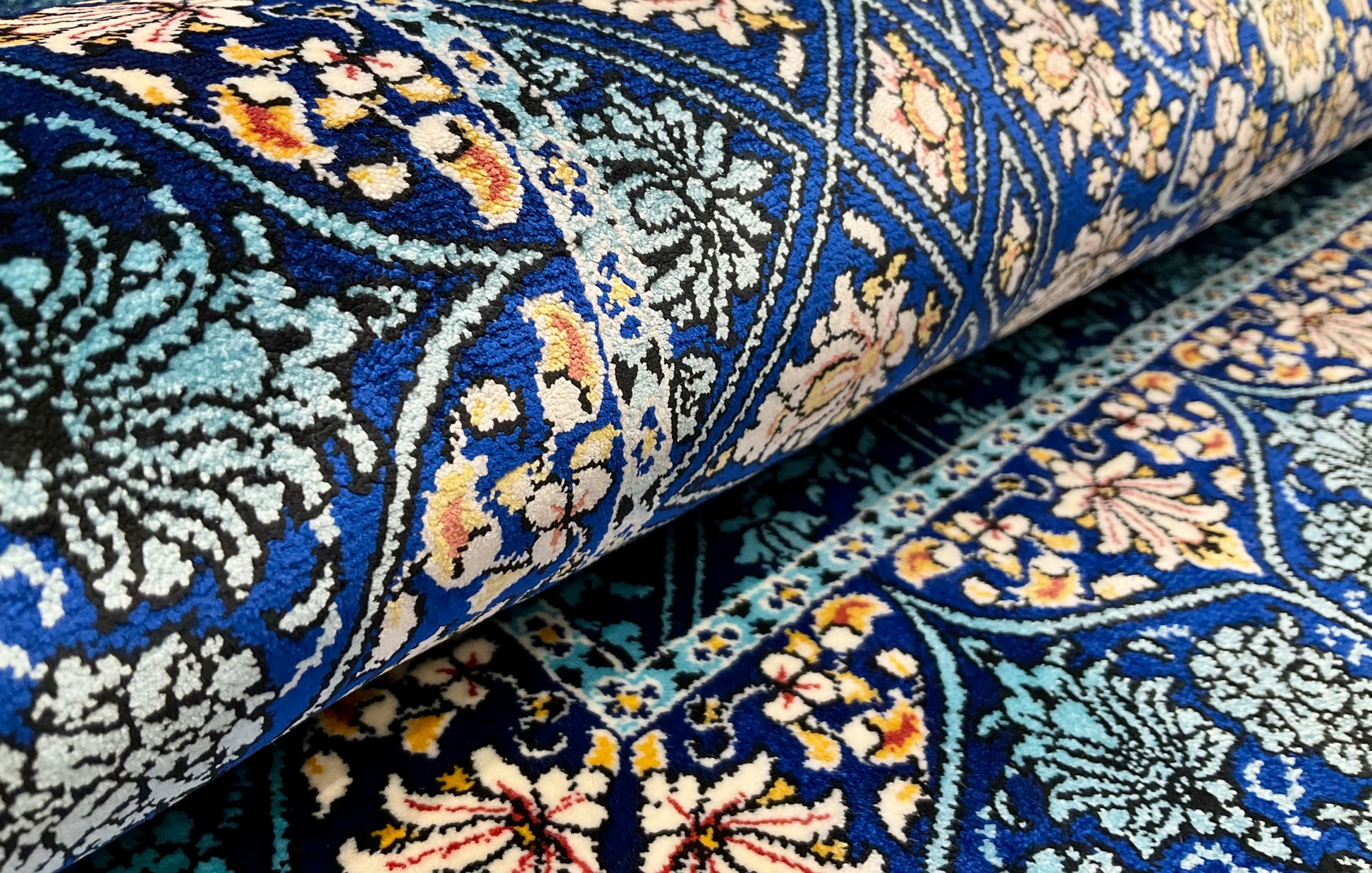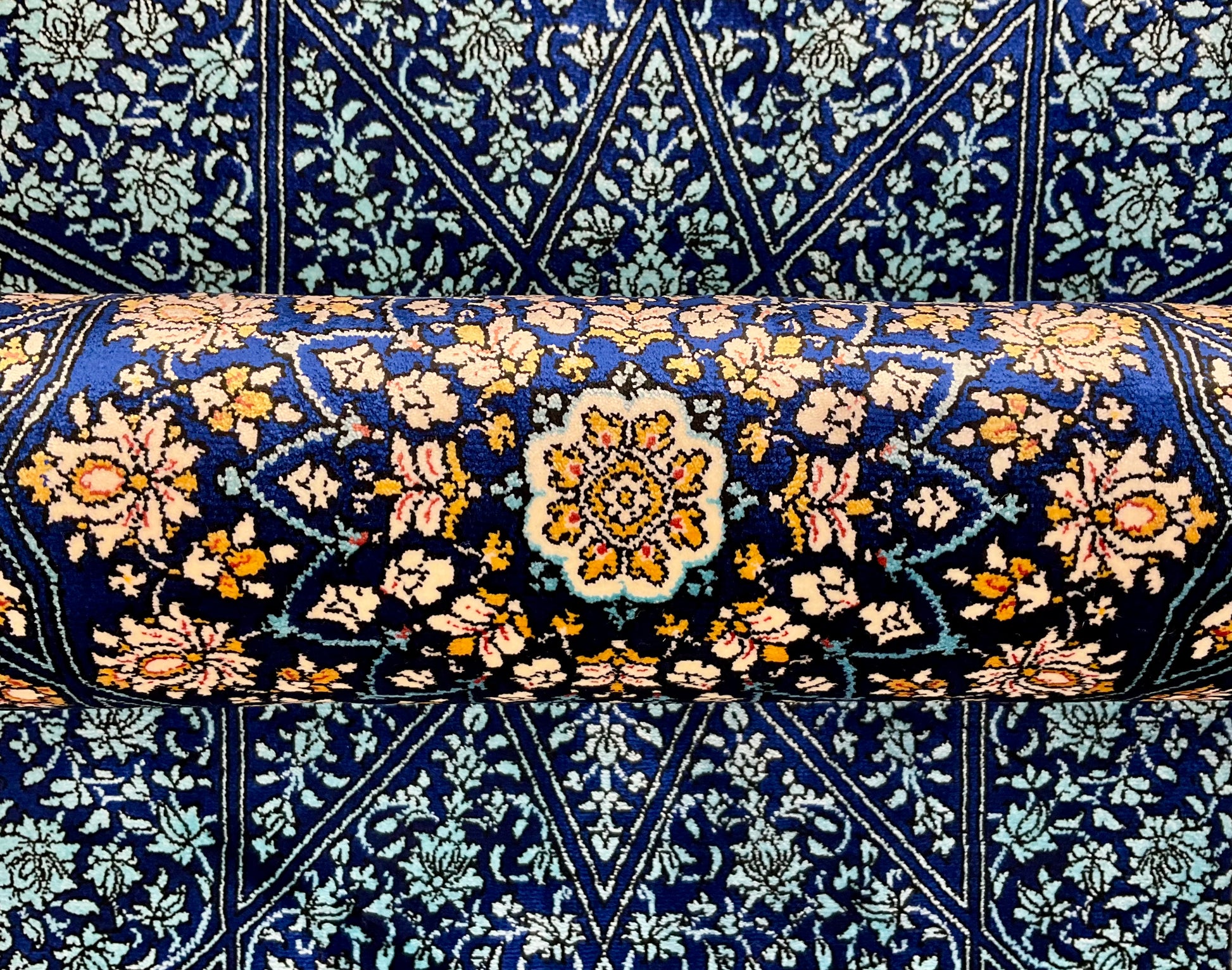 ペルシャンシルクは、ペルシャ絨毯の五大産地のひとつであるカシャーンで制作された機械織りの絨毯です。カシャーンの絨毯職人によってデザイン・プロデュースされています。