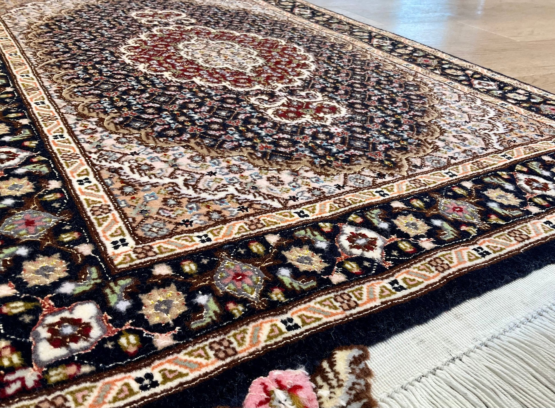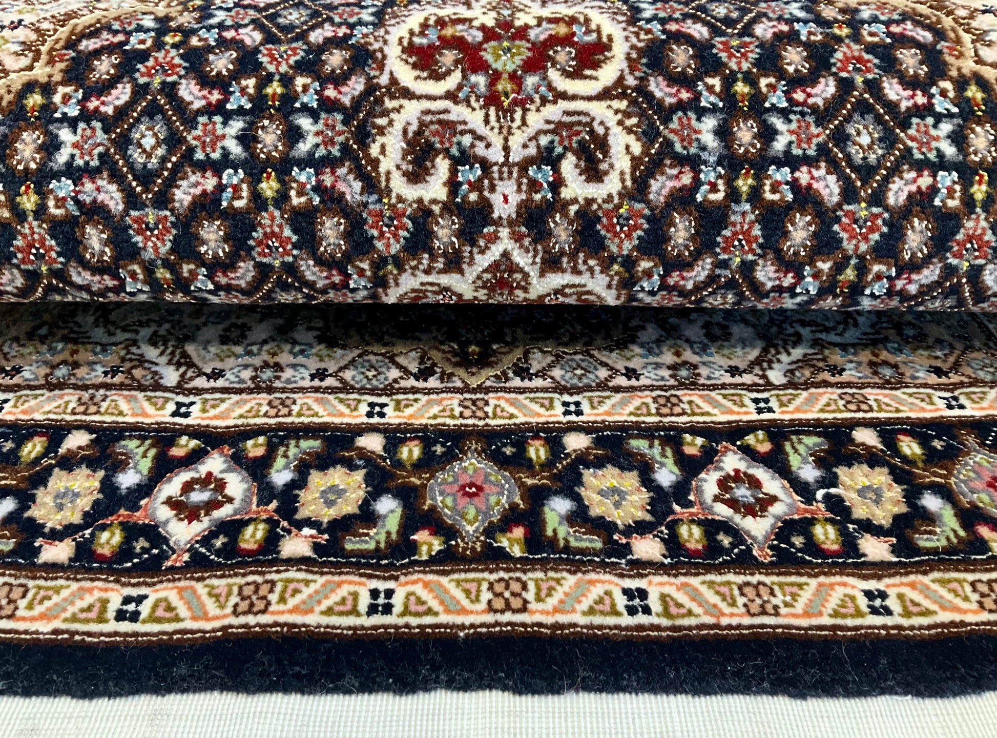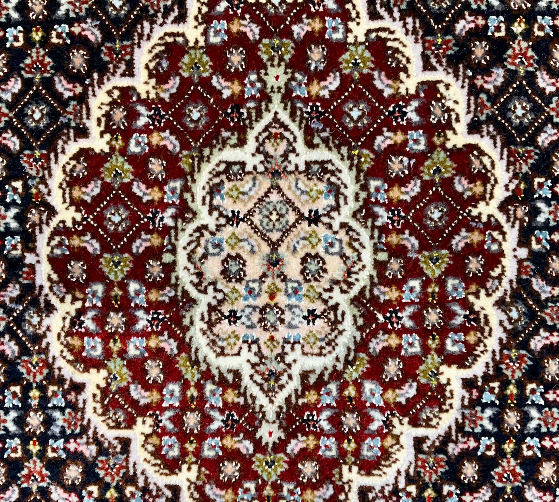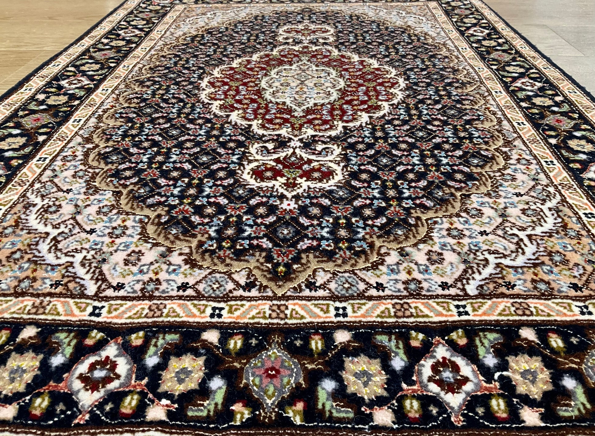ペルシャ絨毯五大産地のひとつで、緻密な織り、荘厳なメダリオンデザイン、落ち着いた色合いが特徴の、格式高い伝統的なペルシャ絨毯です。タブリーズのデザインはベナム柄(王朝風)やマヒ柄(小魚文様)が代表的です。織密度が緻密で耐久性にとても優れています。