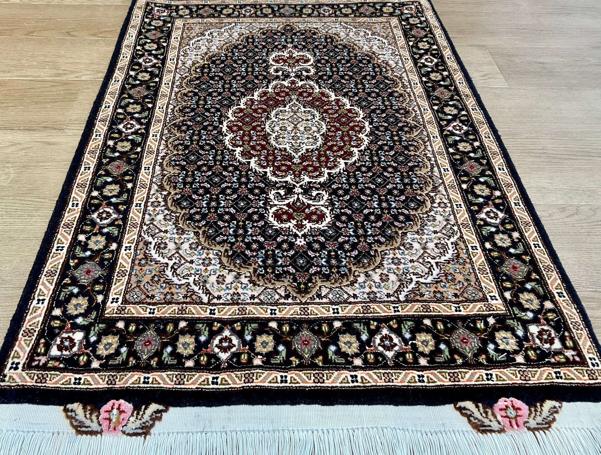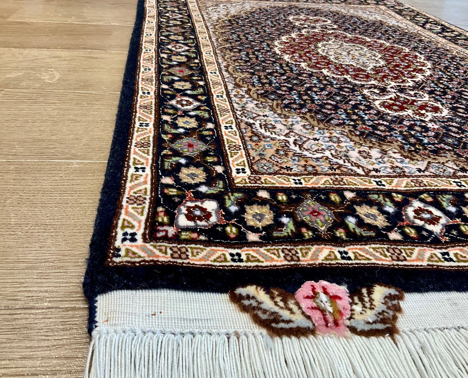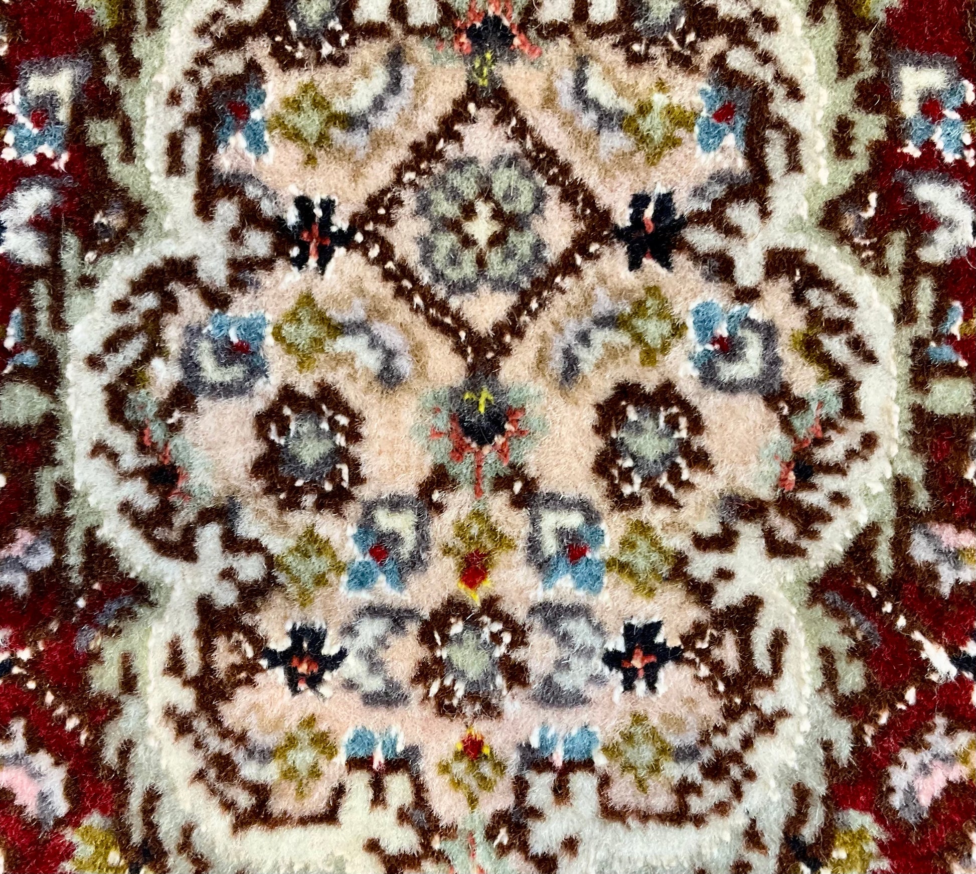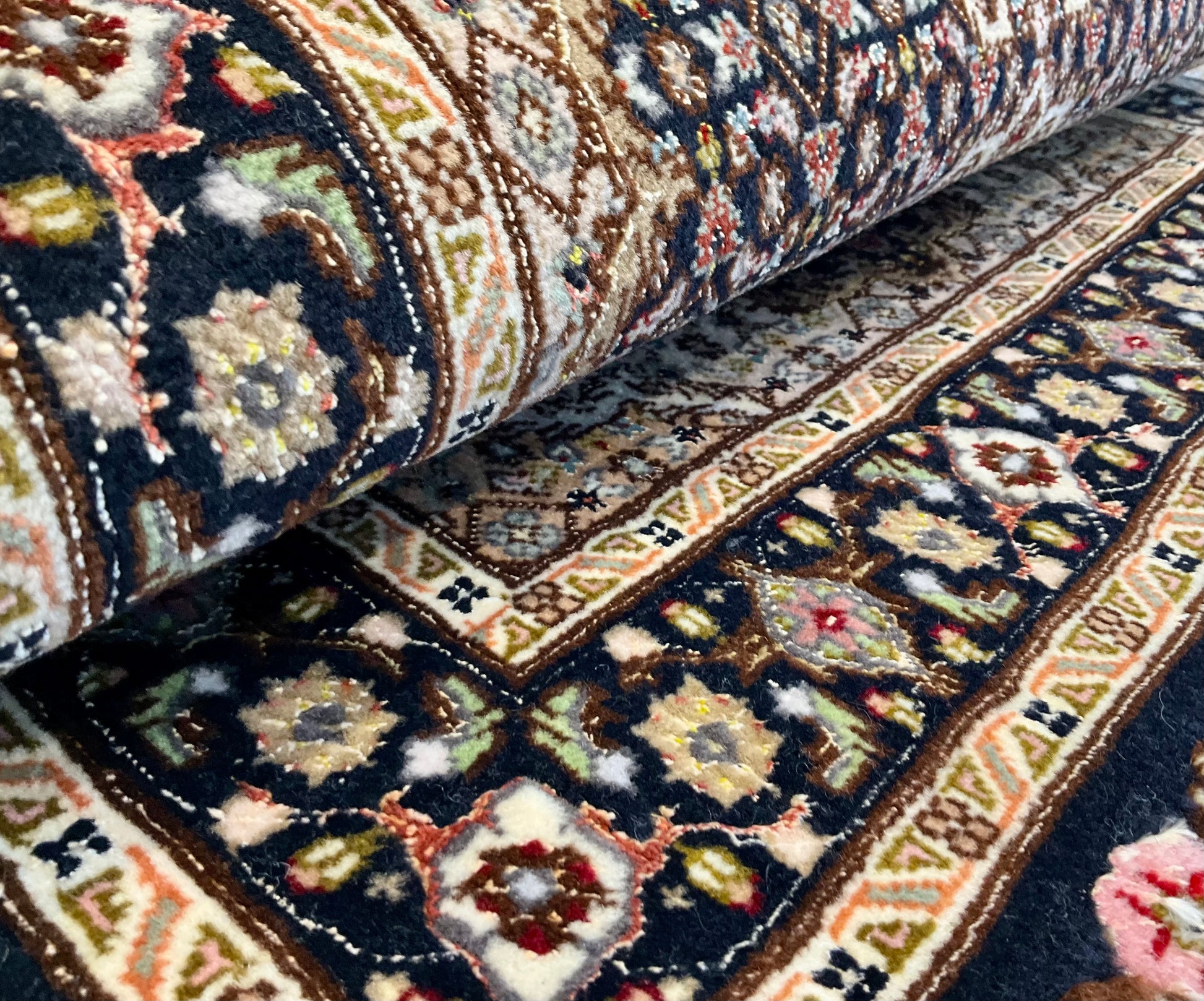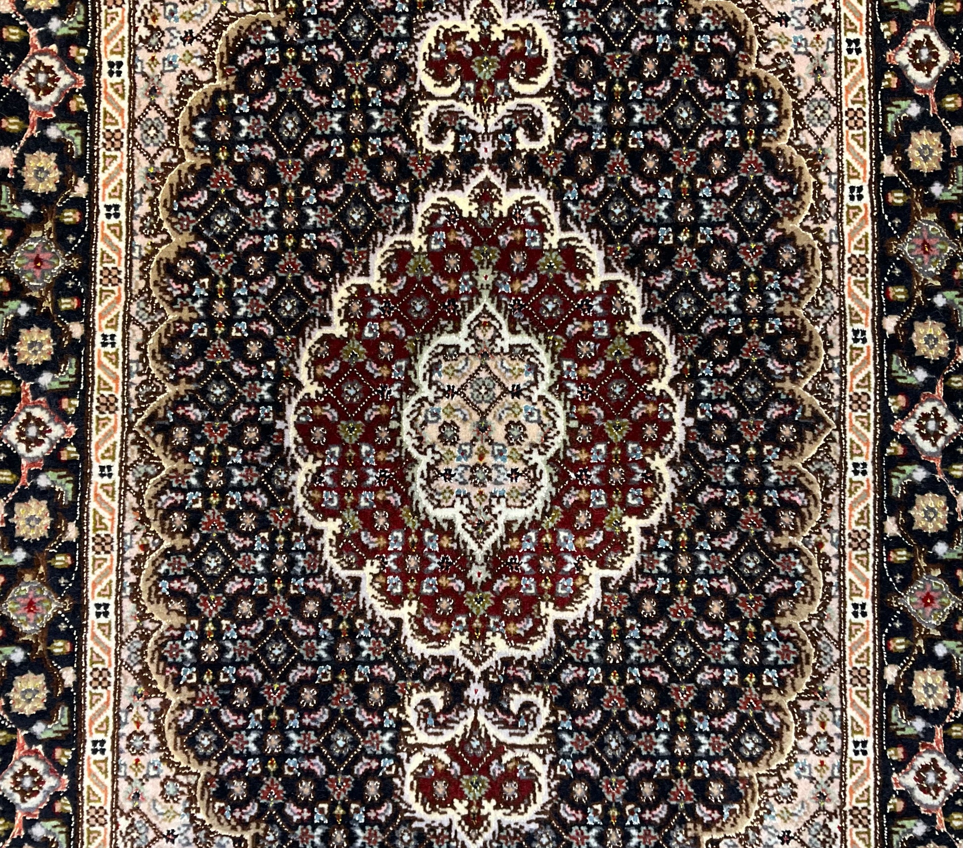 ペルシャ絨毯五大産地のひとつで、緻密な織り、荘厳なメダリオンデザイン、落ち着いた色合いが特徴の、格式高い伝統的なペルシャ絨毯です。タブリーズのデザインはベナム柄(王朝風)やマヒ柄(小魚文様)が代表的です。織密度が緻密で耐久性にとても優れています。