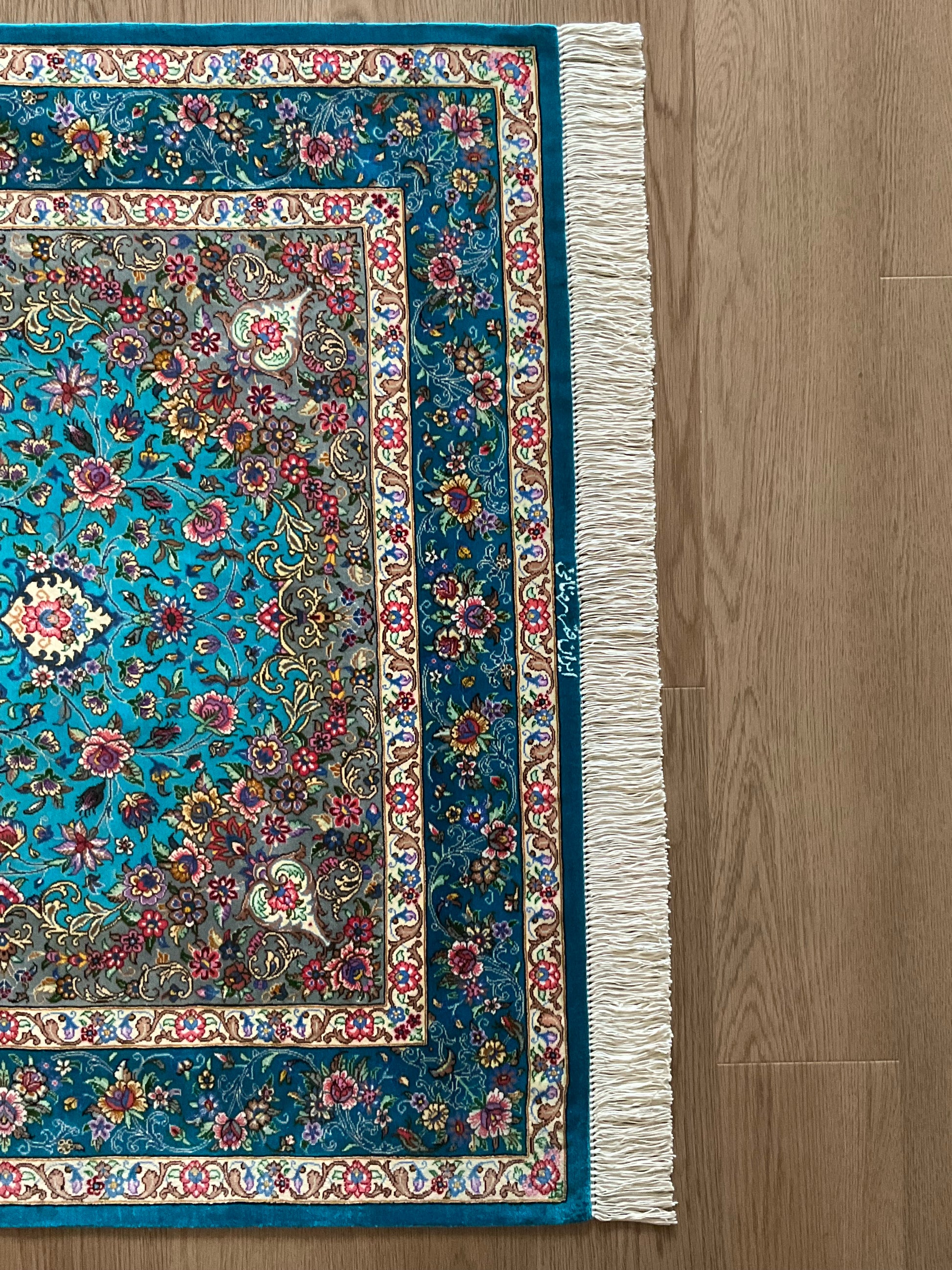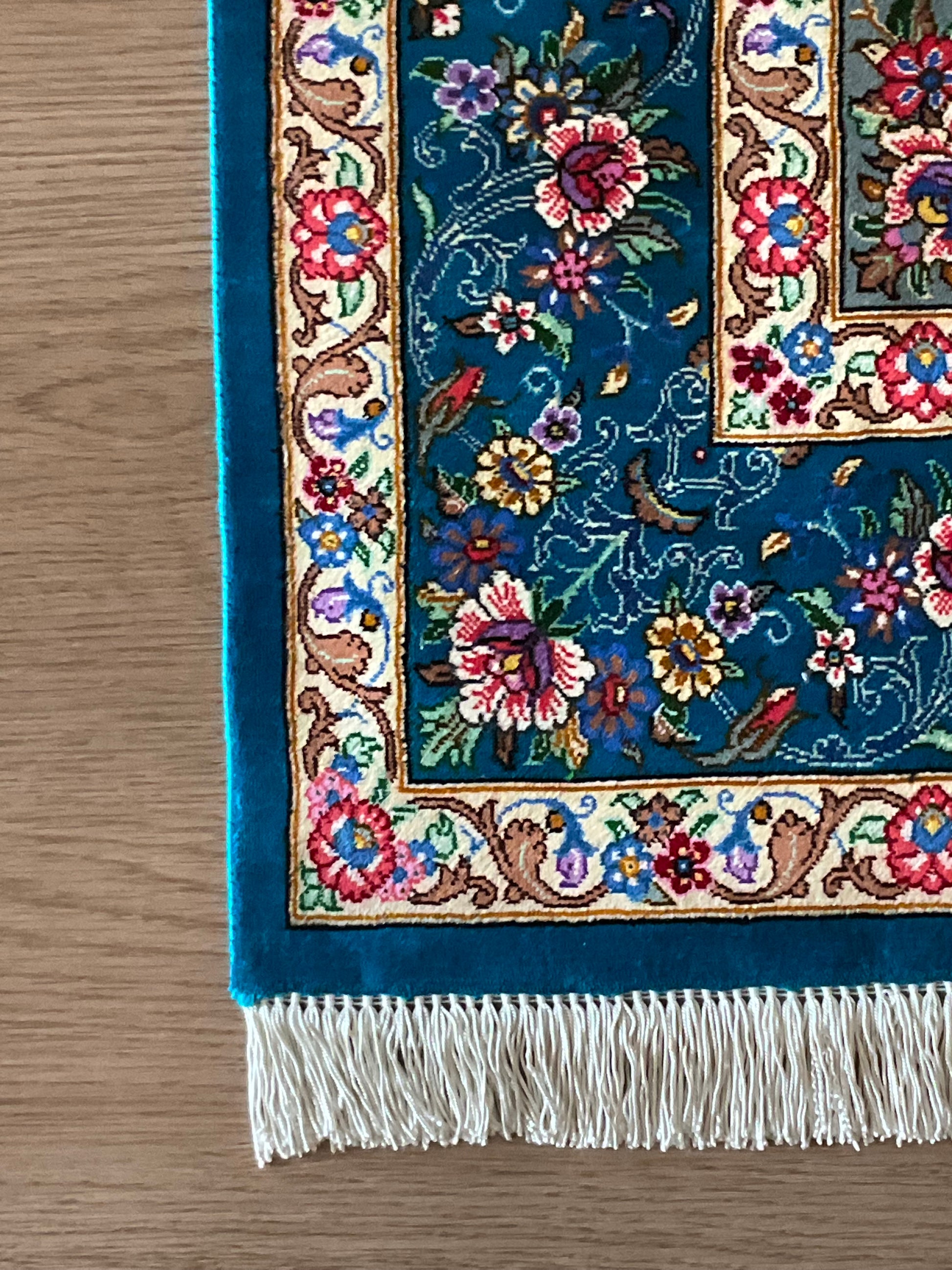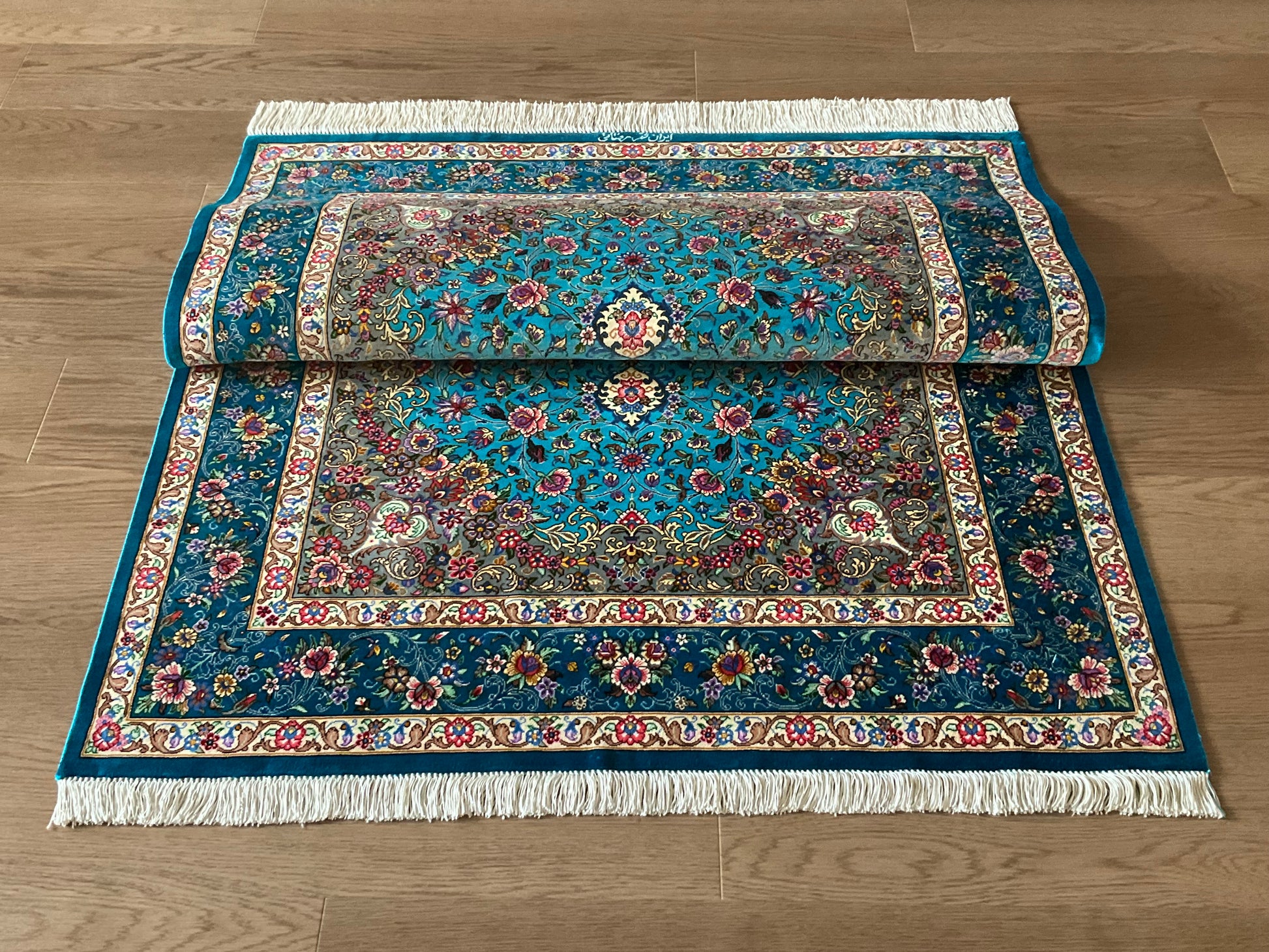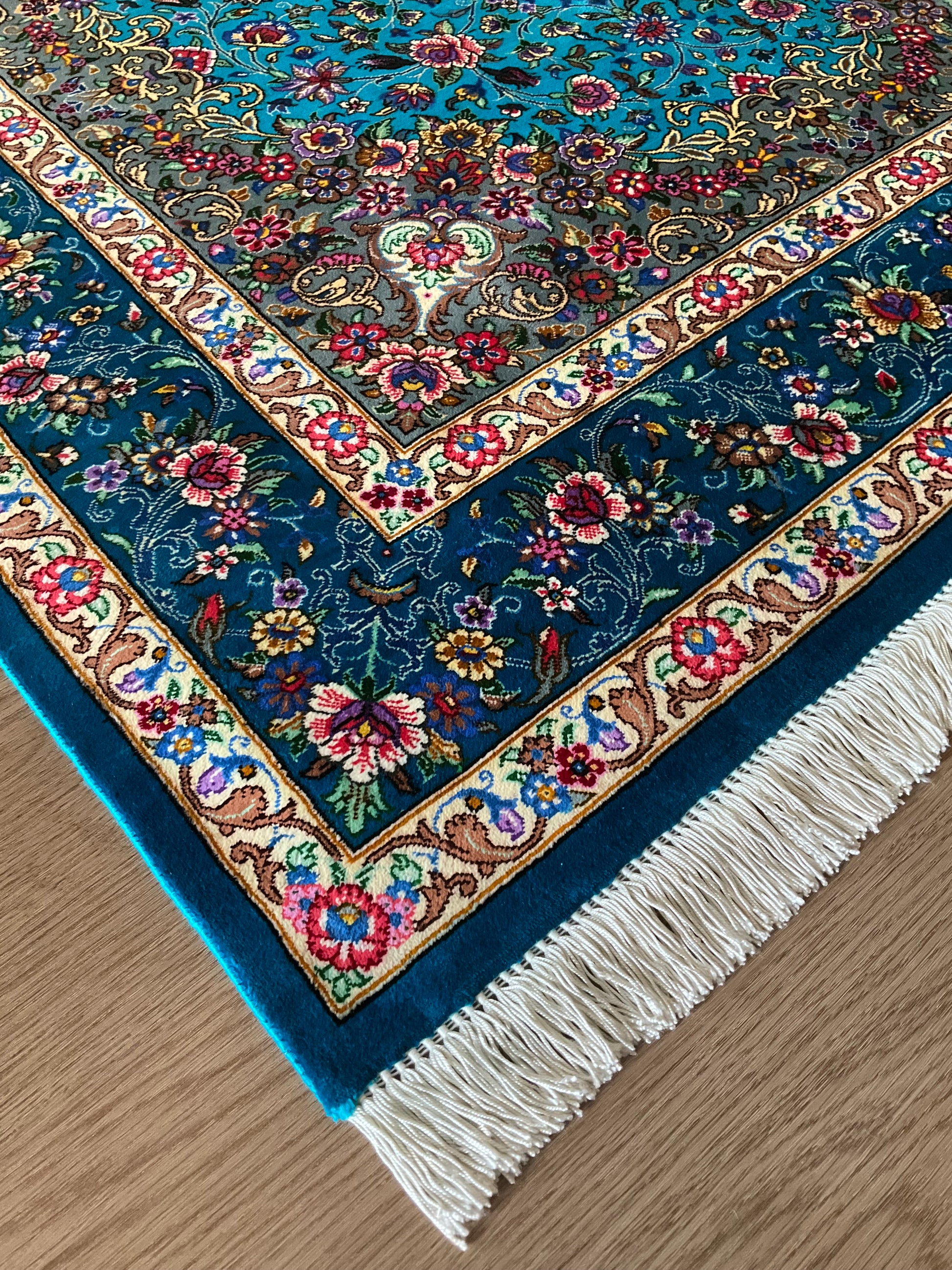 ペルシャ絨毯の五大産地のひとつであり、特に「シルク絨毯」の産地として世界的に知られています。クム産の絨毯のほとんどはシルク製で、伝統にとらわれない斬新なデザインや豊かな色彩、そしてシルクならではの滑らかで光沢のある風合いが特徴です。